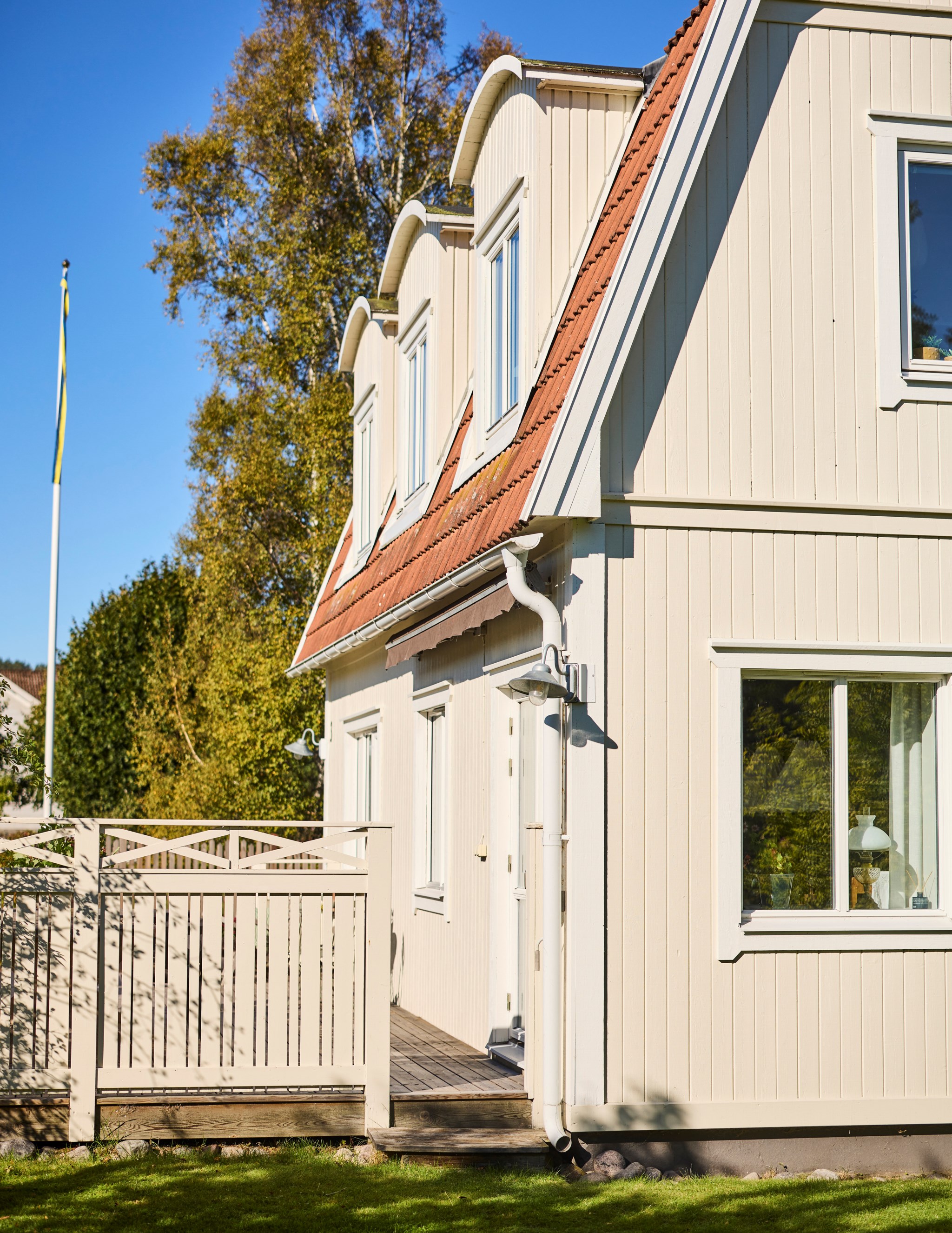 Fasadpanelen målades om och huset har nu ett fräscht yttre med flera år till nästa strykning.