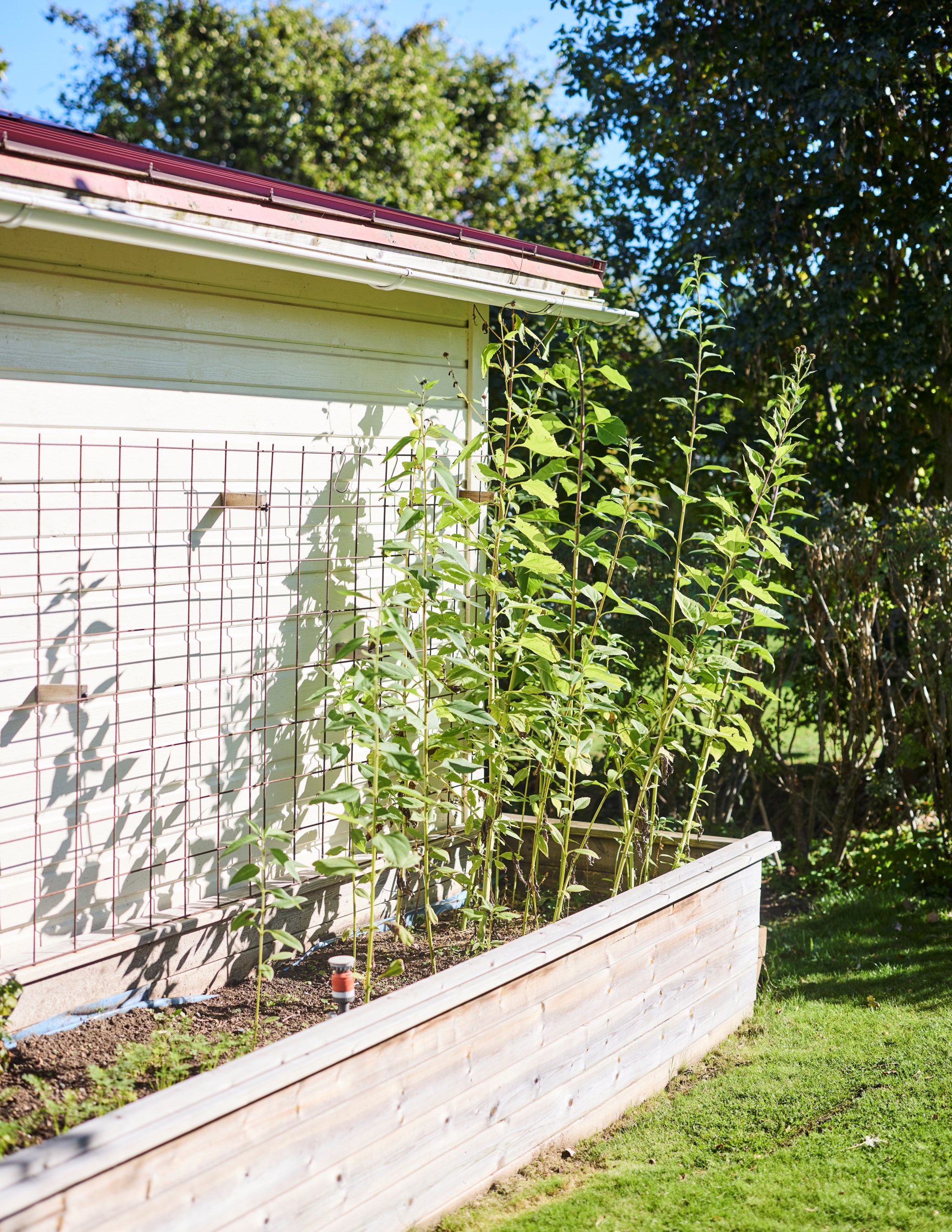 Friggeboden som tilsammans med det inglasade uterummet i trädgården restes och är idag en klar favoritplats i trädgården.