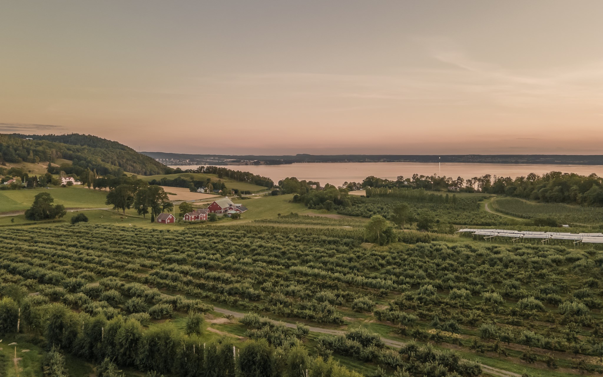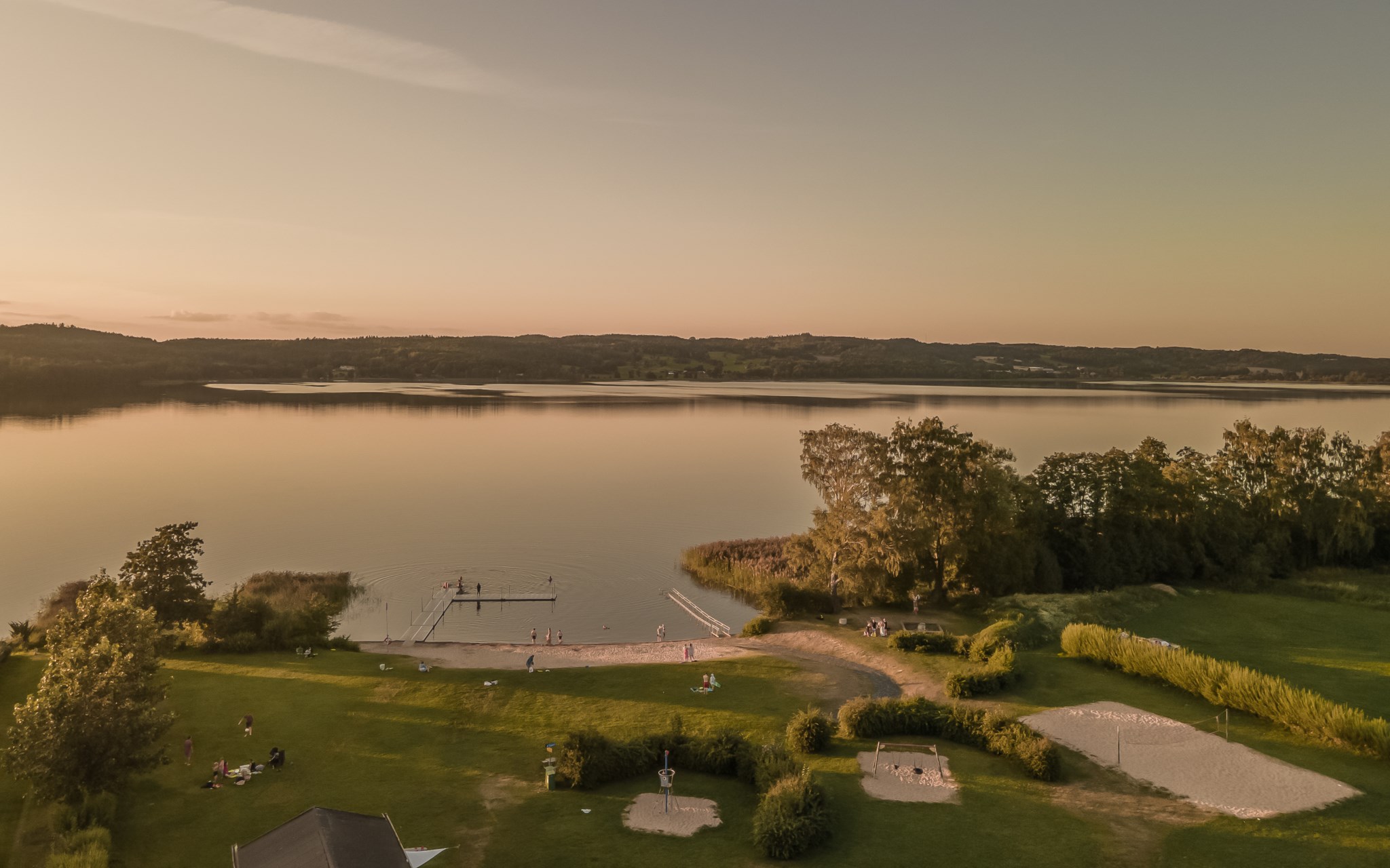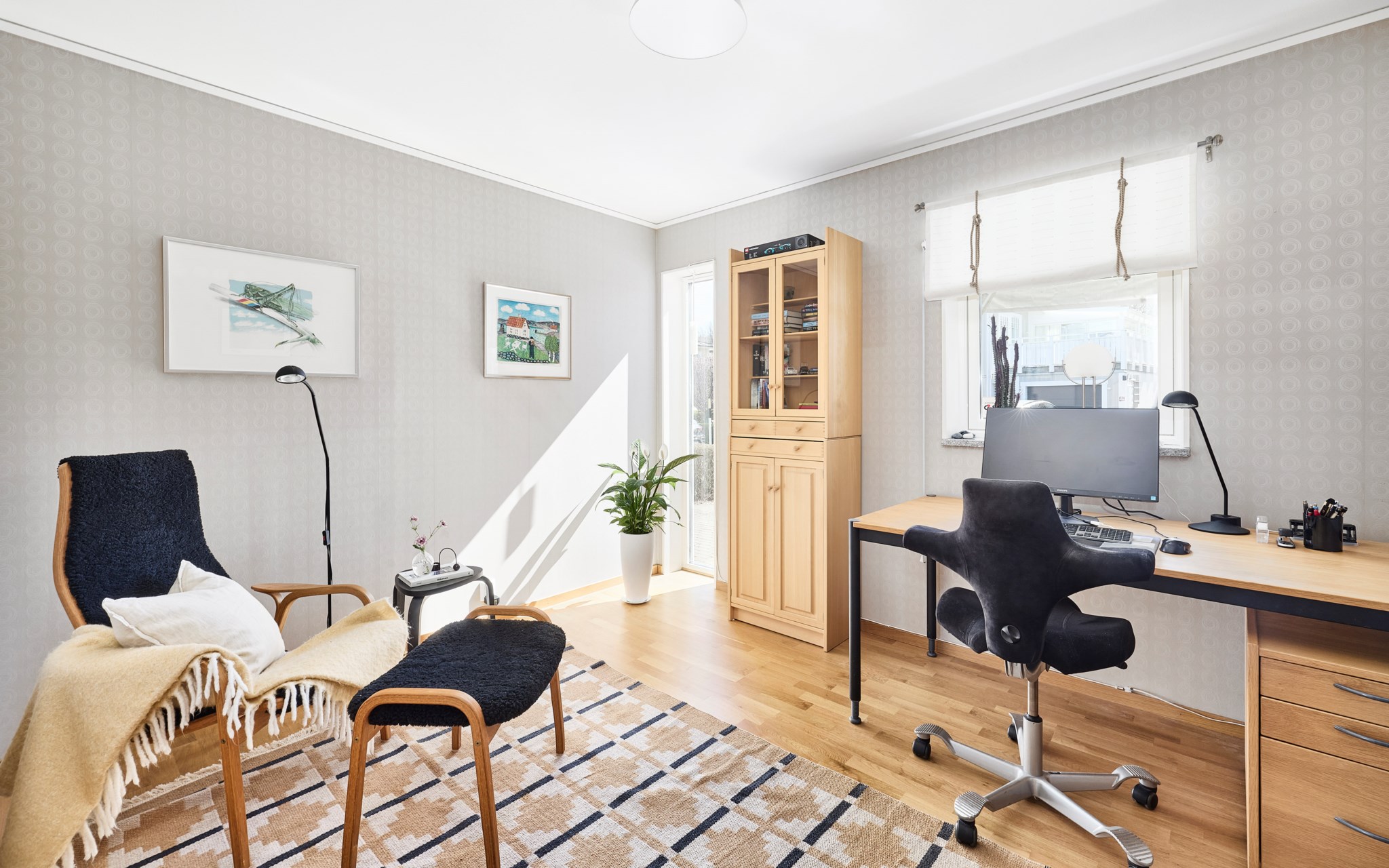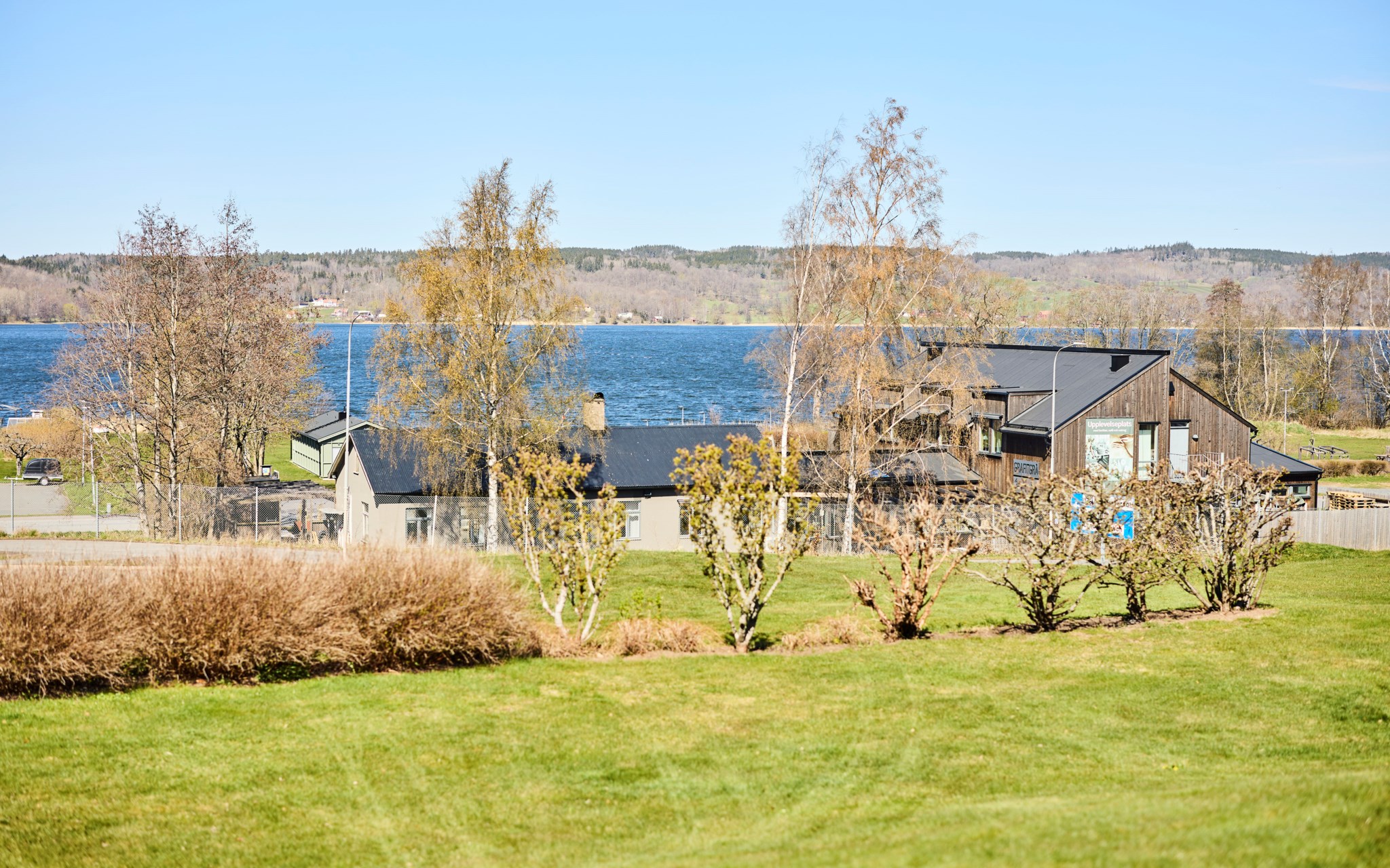 Himmelskt vackert själva rummet i sig. Lägg till den raklånga utsikten över Landsjön så skapas magi alla dagar hela året. Nuvarande ägare var väldigt bestämda med att de ville ha trä i taket, och tack vare det skapas den varma ombonade känslan trots avståndet upp. Rummet får en varm och naturlig inramning, som ett gipstak aldrig hade skapat. Golvet också i trä men lite mer förväntad ekparkett som är i perfekt skick över hela ytan. En tänkbar förfining vore trots det att slipa golvet innan inflyttning, för lite solblekt har det såklart blivit av alla fönster.
