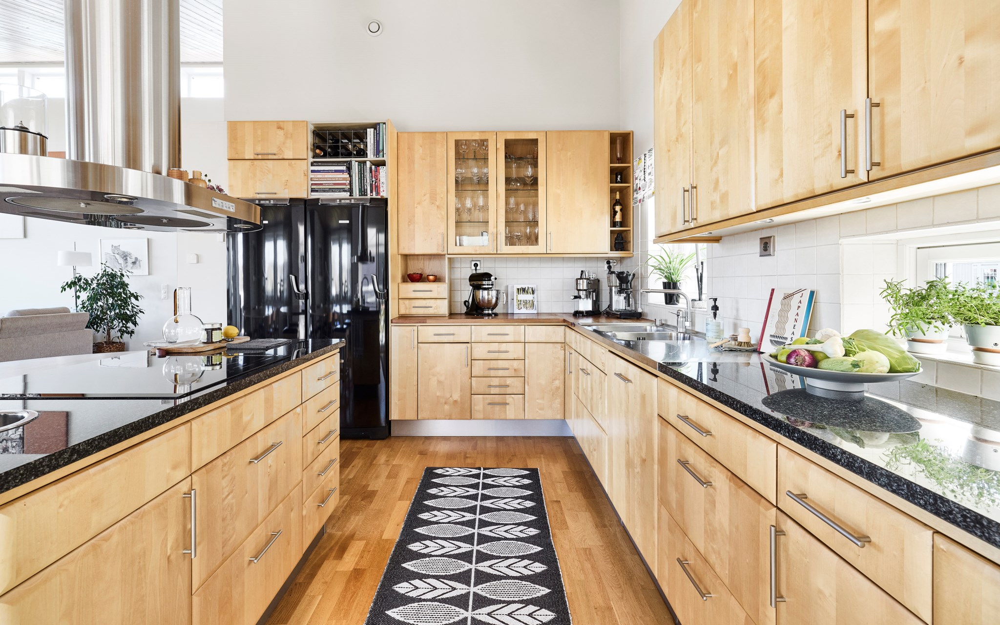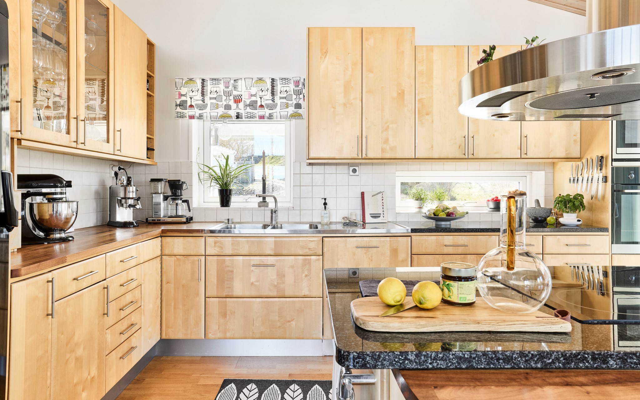 Köket kommer från Ballingslöv och installerades när huset byggdes 2003. Vitvaror har bytts löpande under åren; 2010 byttes induktionshällen, kylskåpet och frysen, 2012 byttes microvågsugnen, 2018 byttes varmluftsugnen och 2023 byttes diskmaskinen.