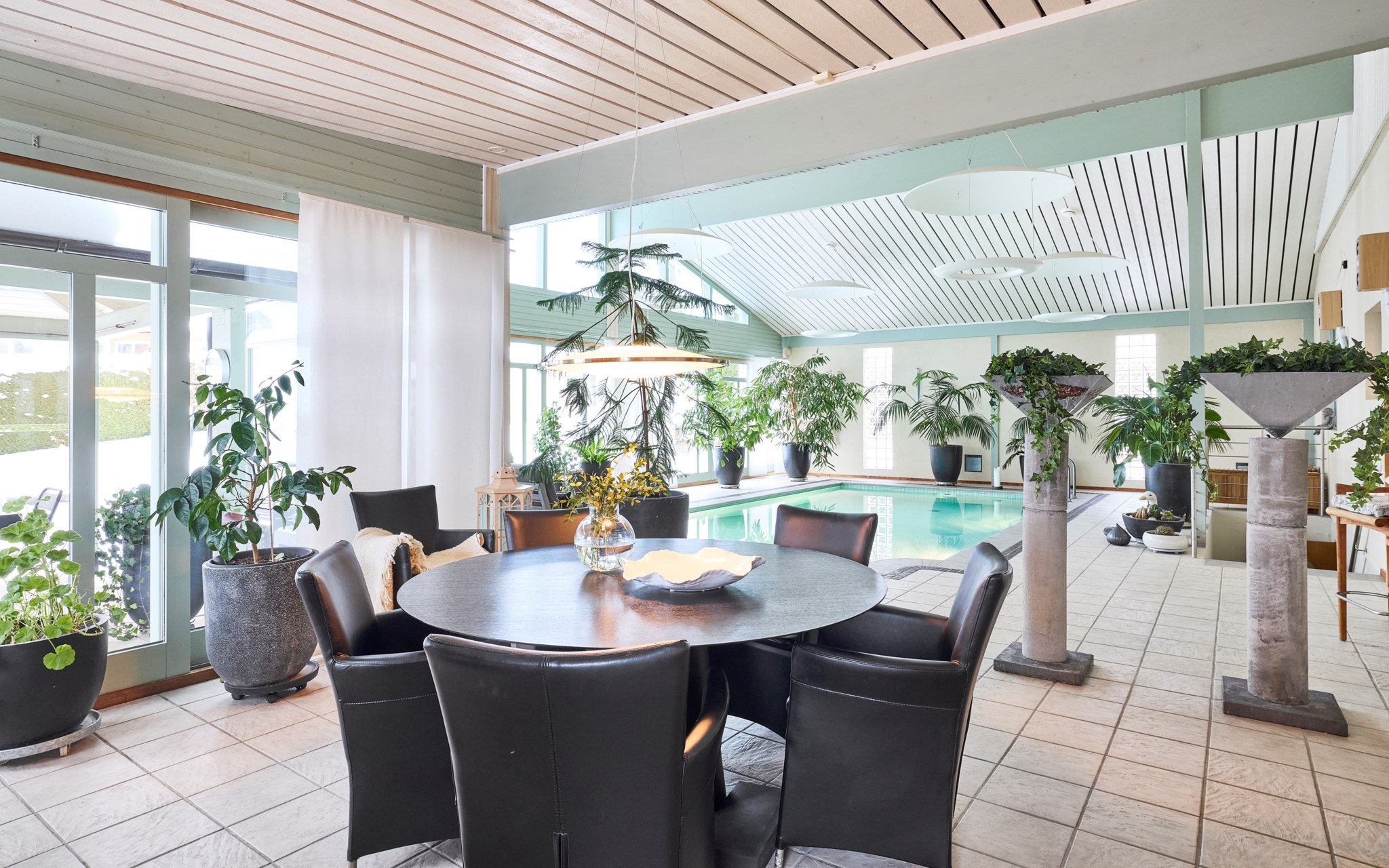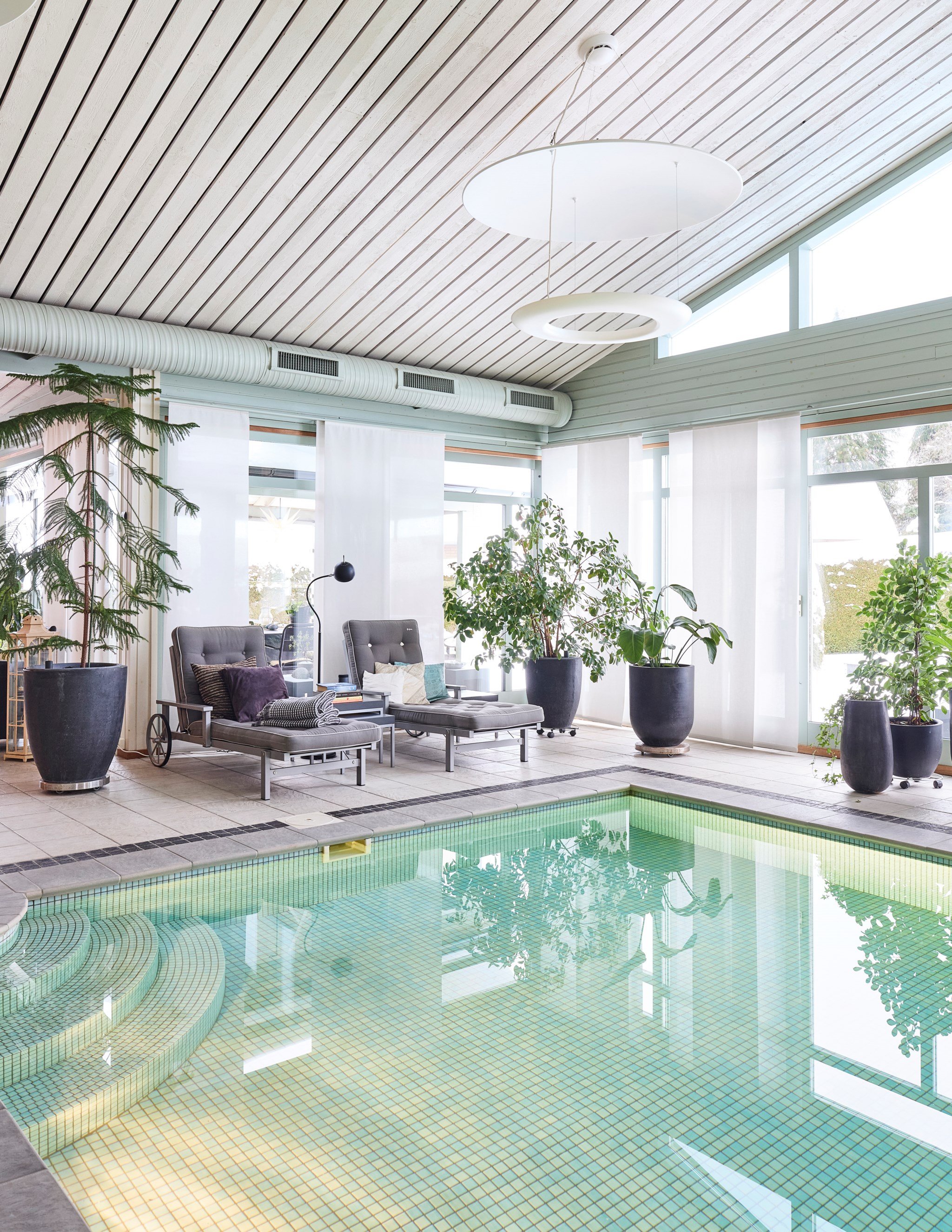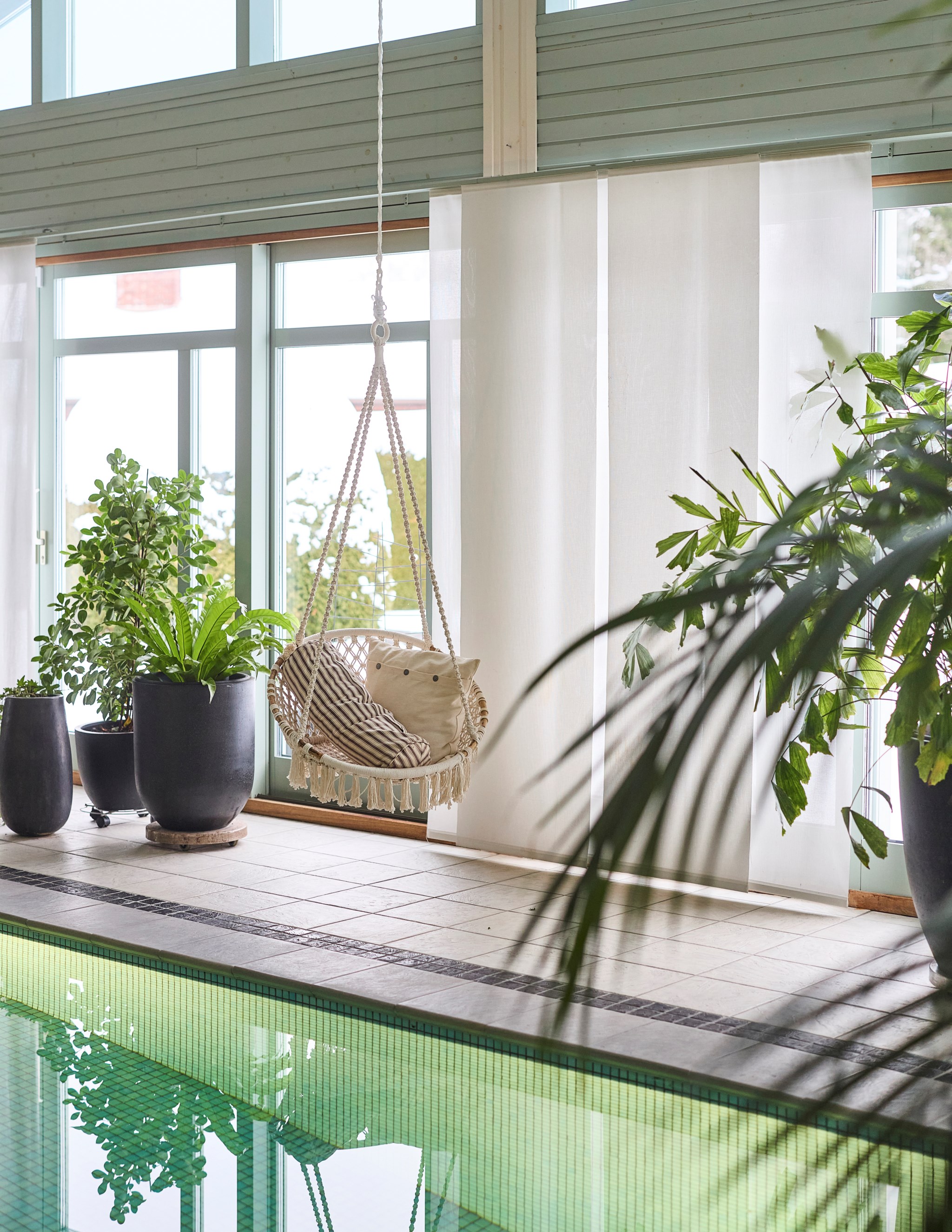 "Poolrummet har golvvärme över hela ytan, känns solvarmt året runt när du går barfota efter en simtur."