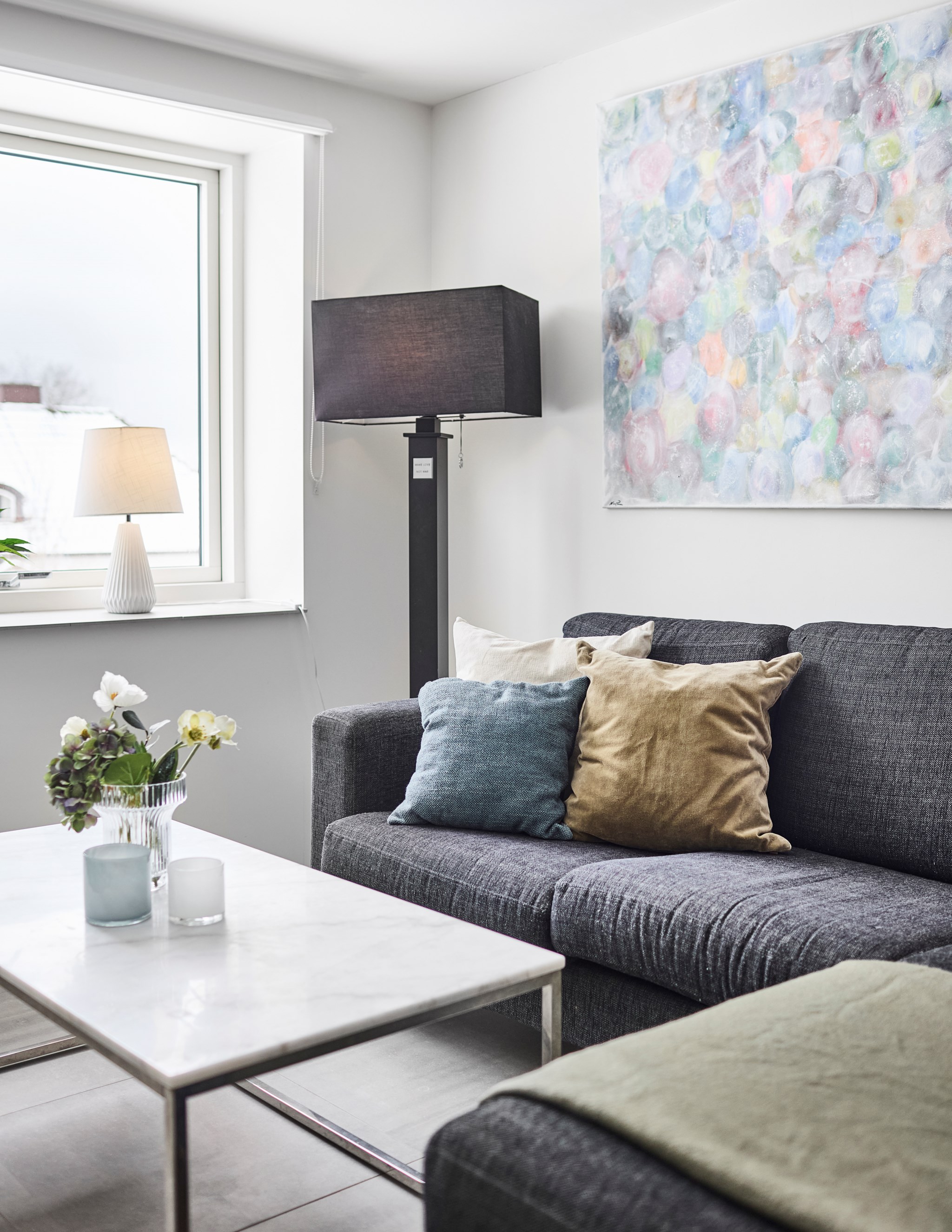 "Sommartid kan man låta det stora skjutpartiet vid vardagsrummet stå öppet, så balkongen blir liksom en förlängning av rummet."
