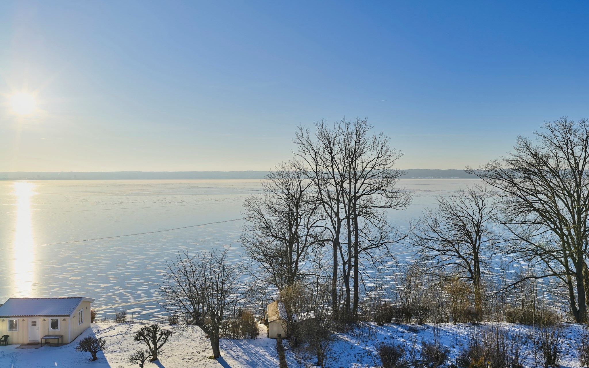 Under sommarhalvåret går solen ned på andra sidan sjön, och den sista kvällssolen under juni-juli har man in på balkongen och altanen vid lusthuset fram till klockan 23 på kvällen.