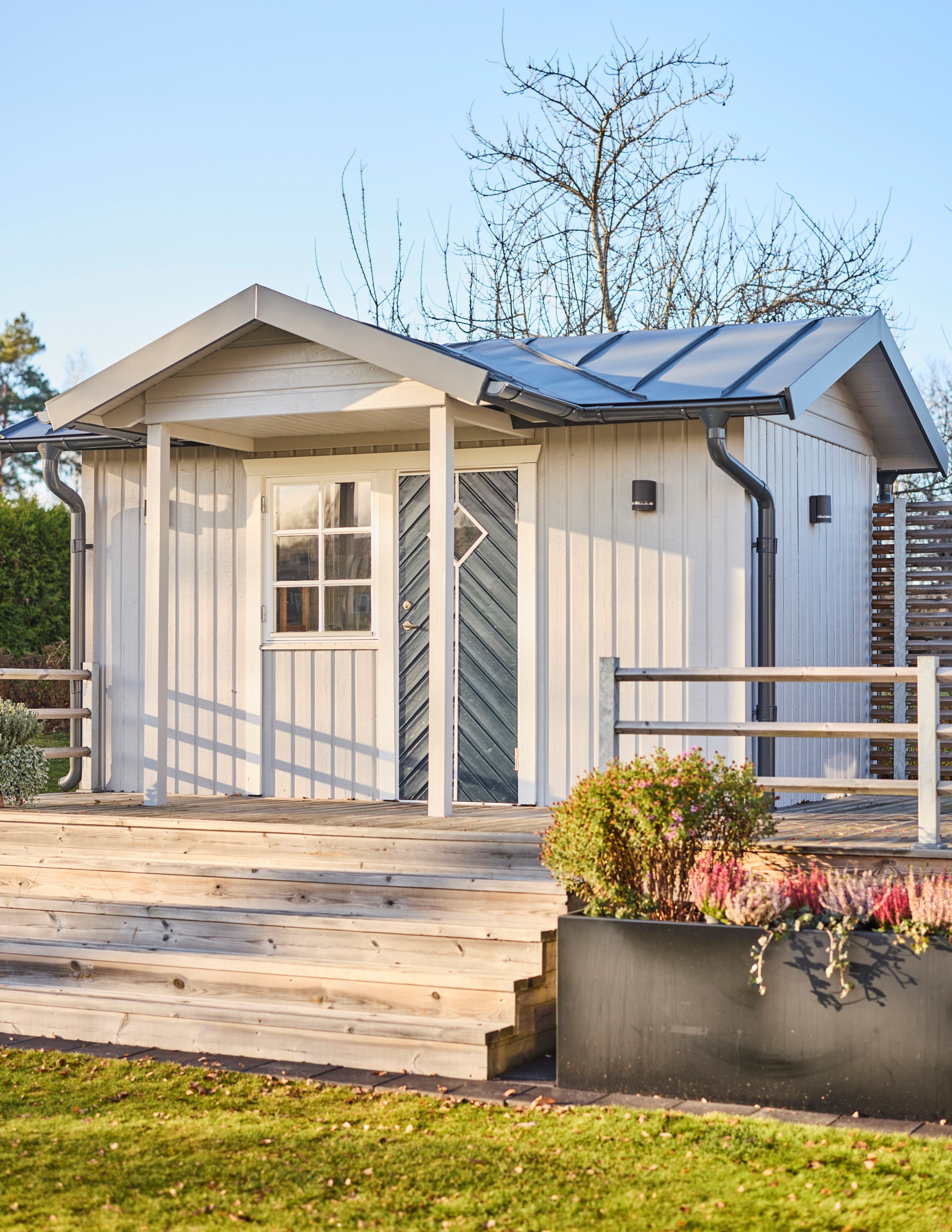 "Baksidan har många sittplatser att välja på beroende på årstid och tid på dagen; min favorit är den upphöjda intill friggeboden."