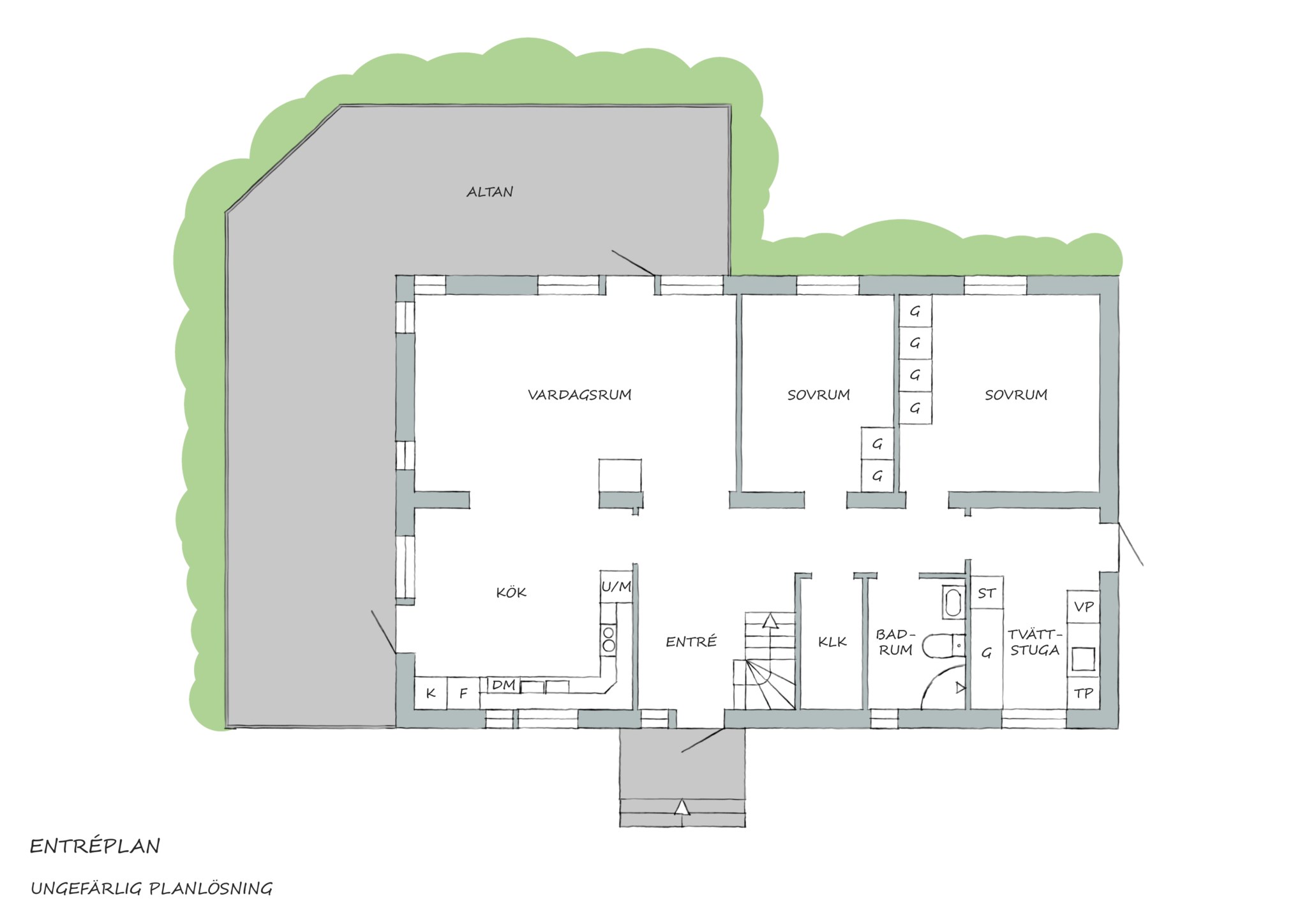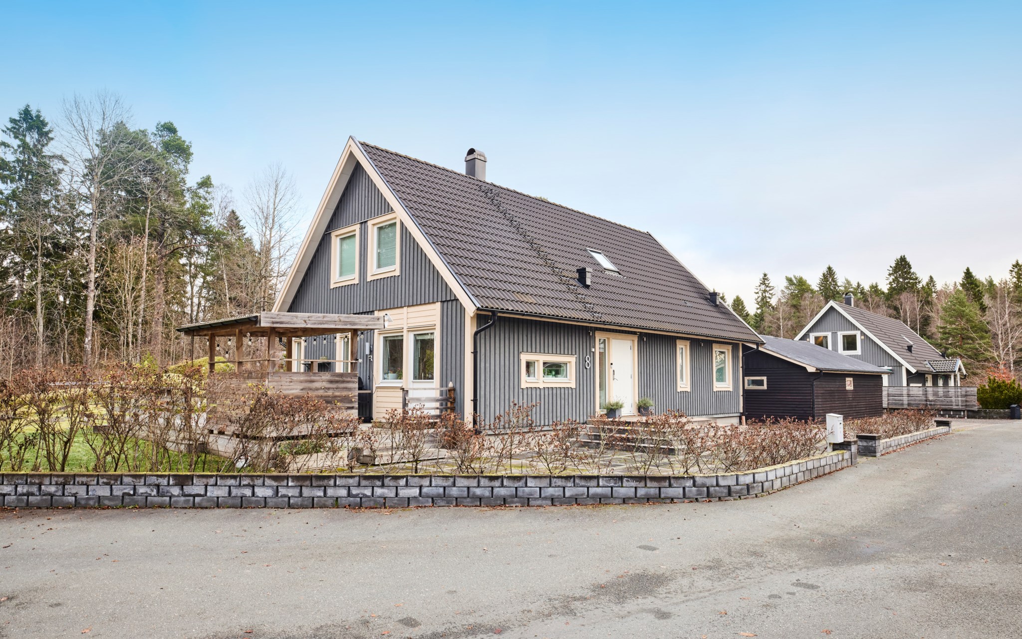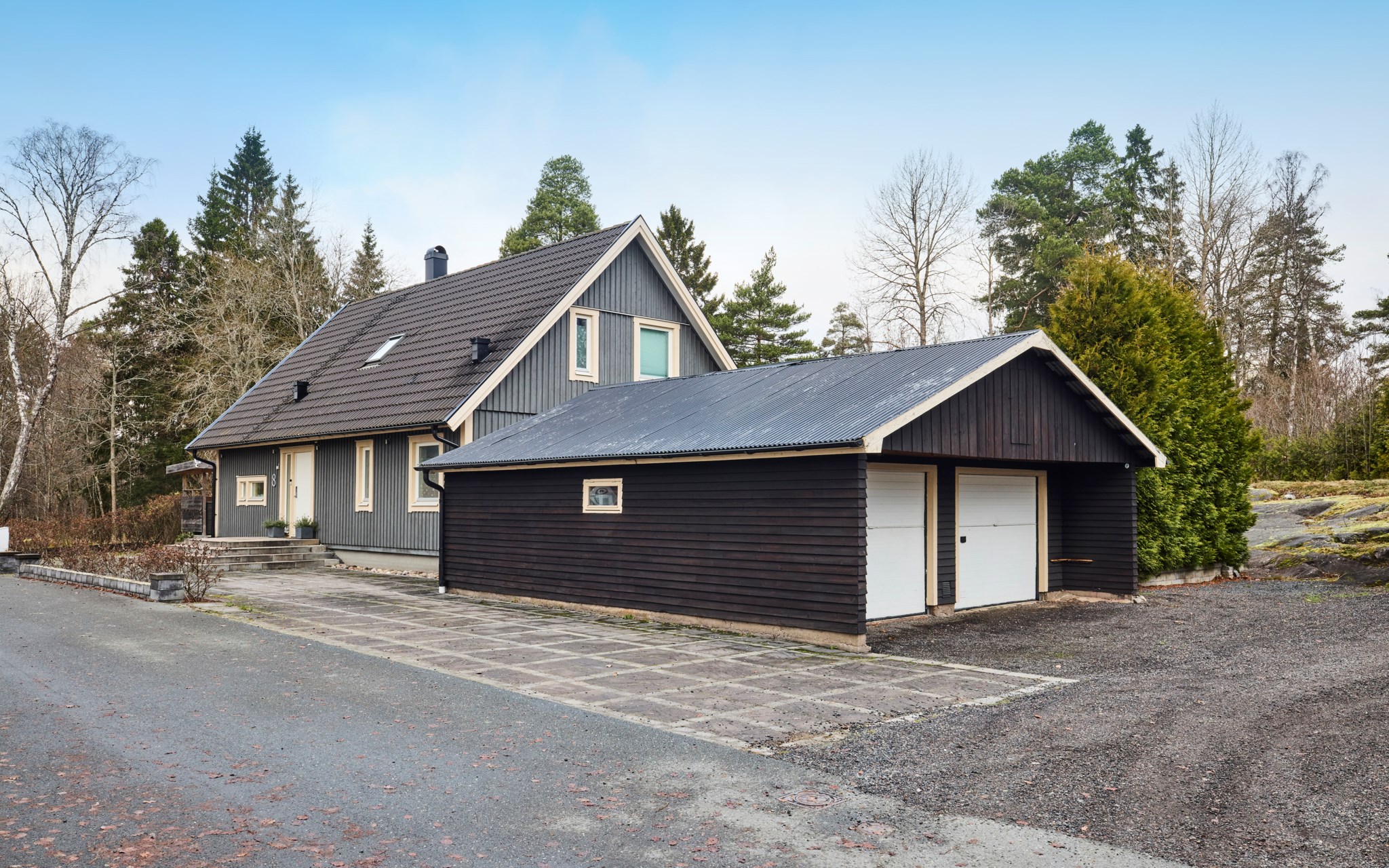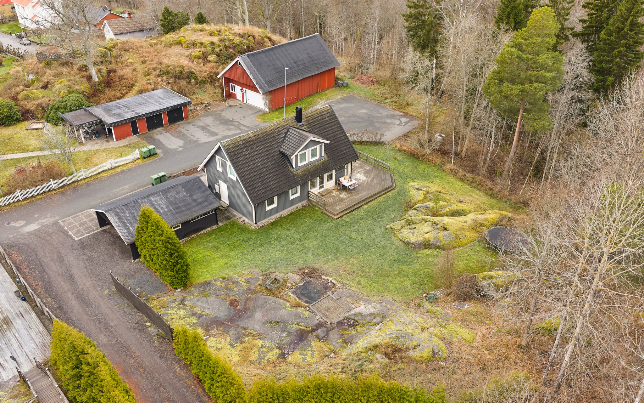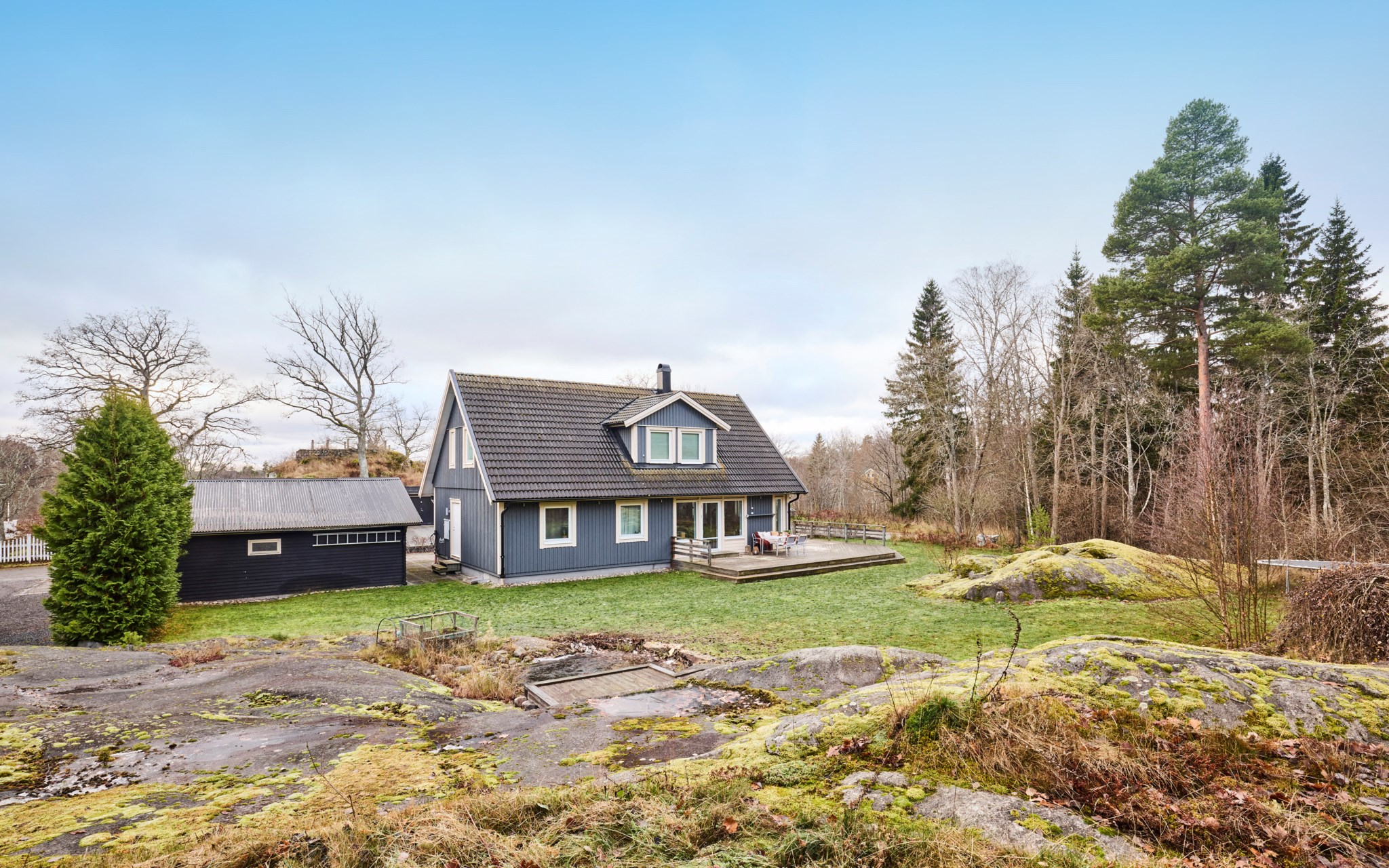 En Smålandsvilla byggd 2008 med ett fristående dubbelgarage på tomten. Mjuka klippor sticker upp i trädgården, men det finns plats för både rabatter och odlingslådor om dina gröna fingrar söker inspiration. En naturlig liten damm blänker också i trädgården. Om kompassen stämmer så bör du kunna ligga och sola på klipporna i bra uv-vinkel på eftermiddagen precis som om det vore i Bohuslän. Ut på husets gavel och uteplats kommer du både från vardagsrum och köket och här sitter du i soligt läge från lunch till kvällen, och låter grillröken stiga till väders utan att det stör någon.