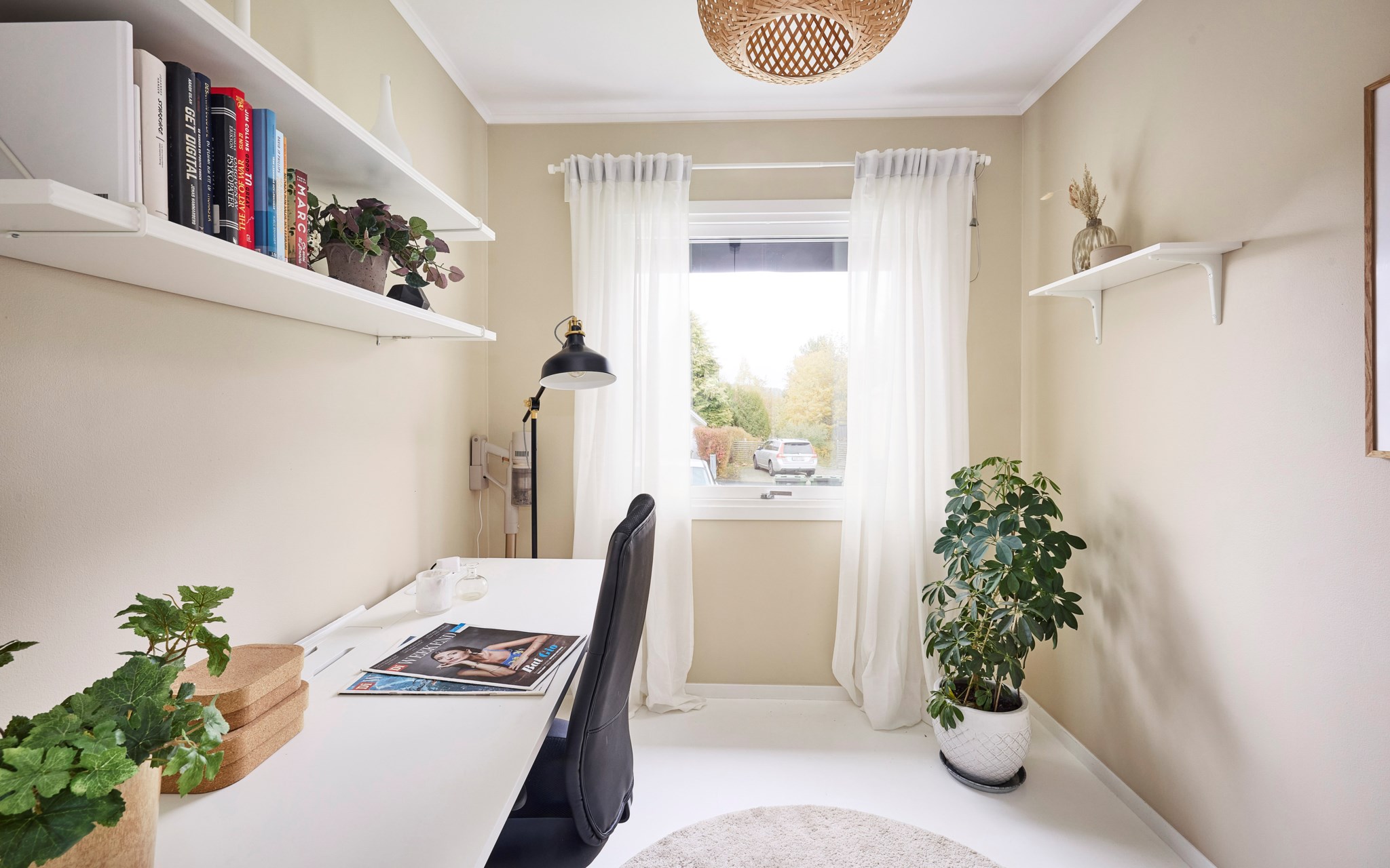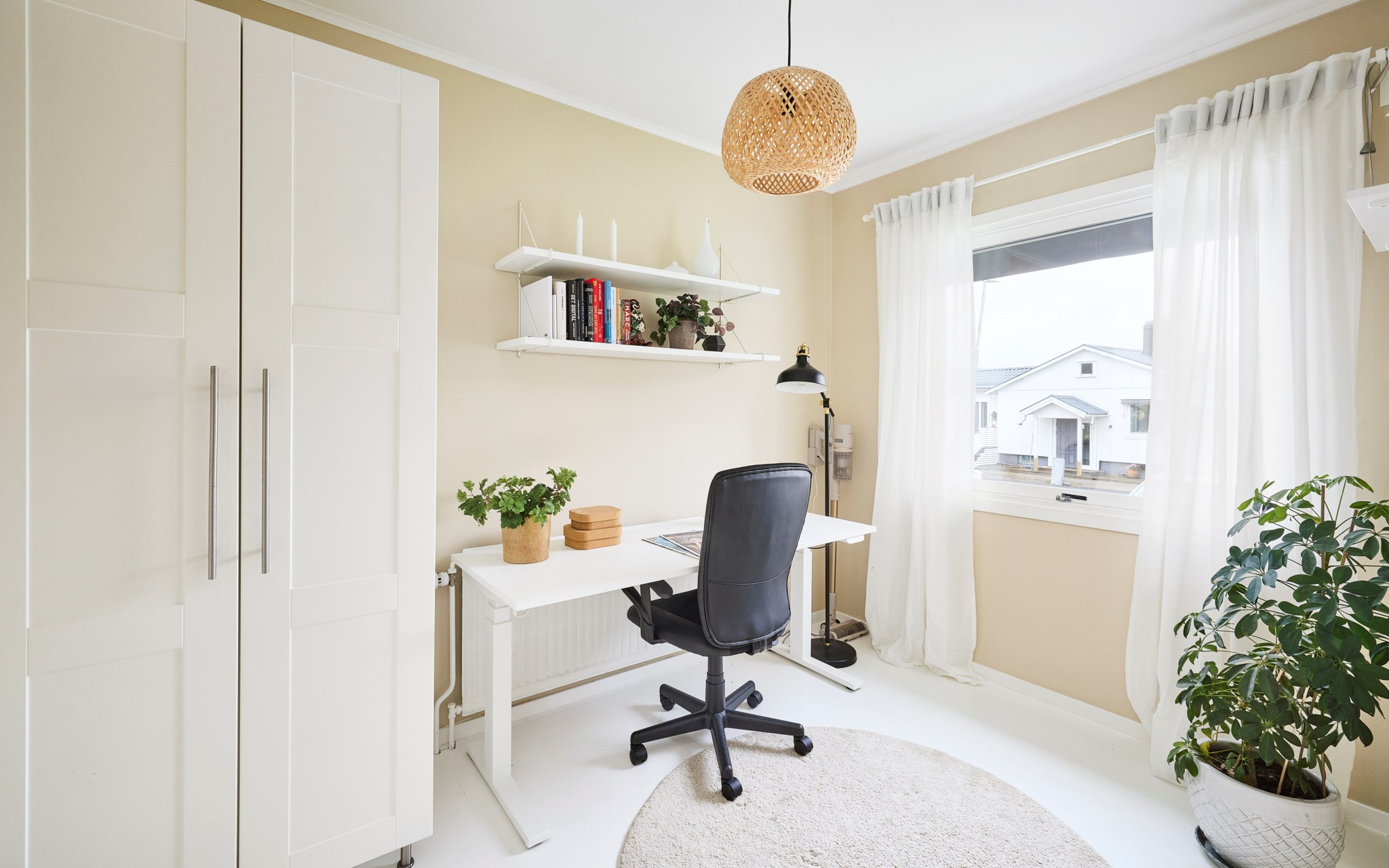 Tre mindre rum i entréplan ger valfrihet. Idag kontor, lekrum och barnrum – imorgon två barnrum och ett gästrum, eller tvärtom. De har fina ljusinsläpp från både fram- och baksidan. Det mot framsida är idag trevligt hemmakontor, men här får en säng gott plats om så behövs. Den platsbyggda loftsängen i nästa rum kanske mest lockar dem med barnasinne, men den är stor nog även för vuxna. Kort sagt: flexibla rum som följer livets skiften.
