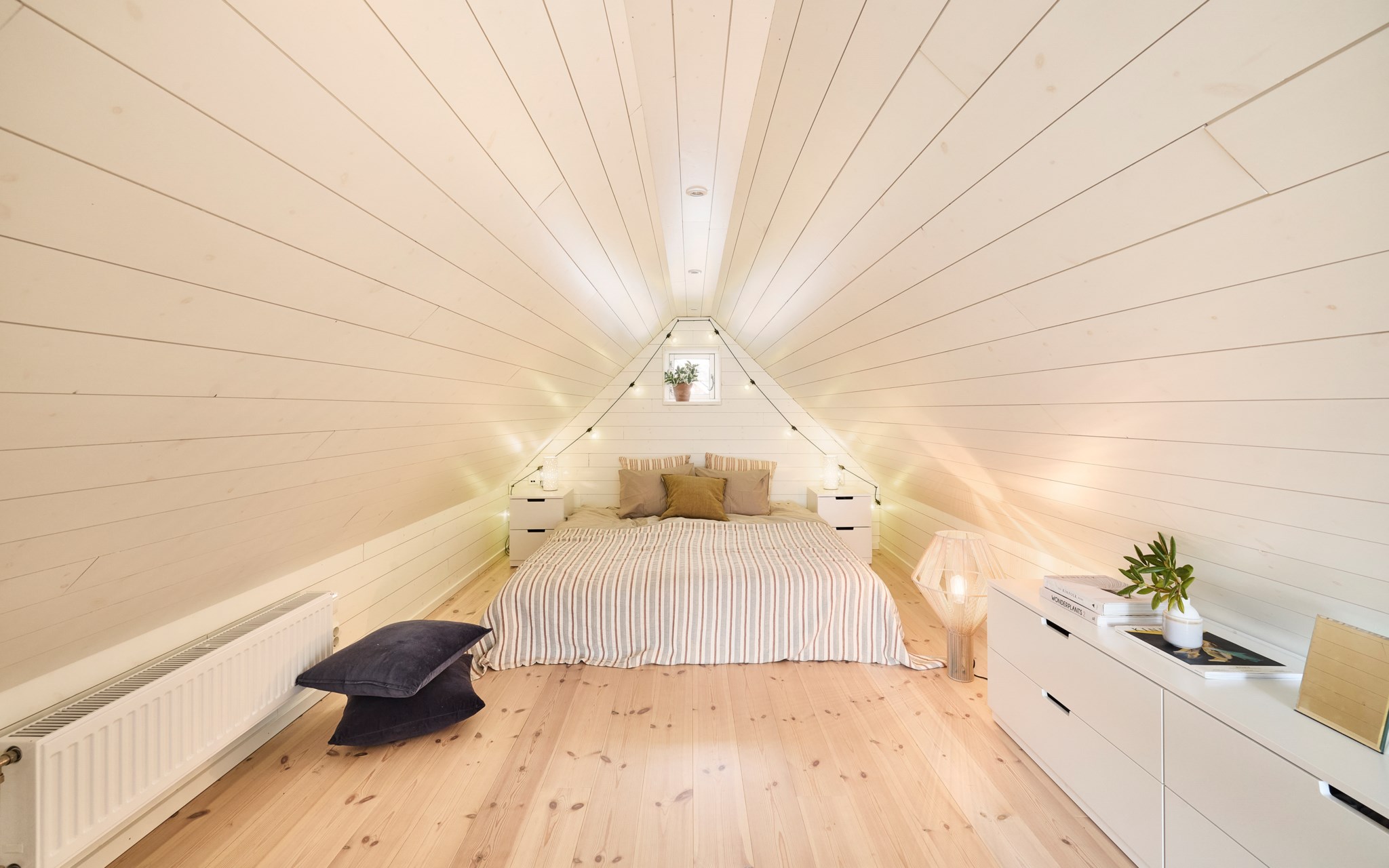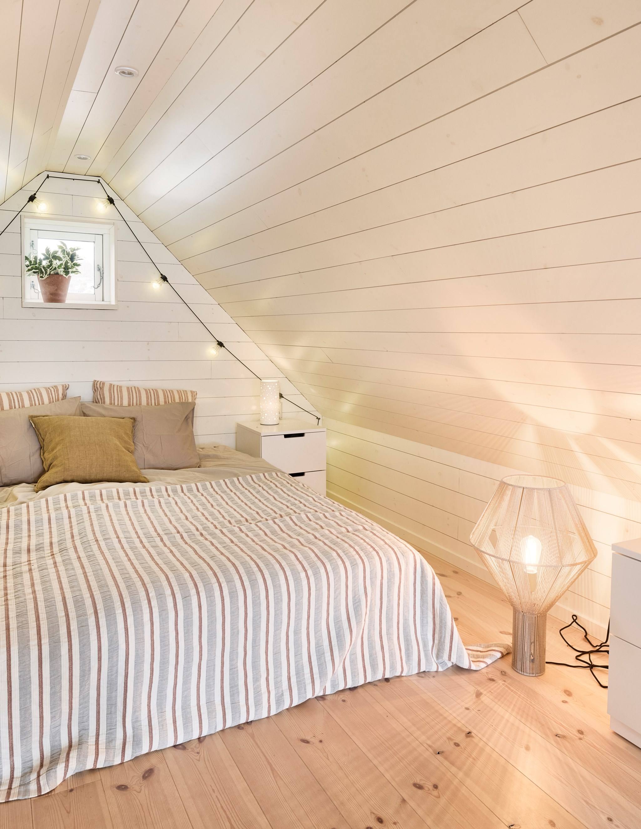 För ett antal år sen inredde vi vindsvåningen så numera kan man både sova och hänga här uppe, även om det är strax under två meter i takhöjd i mitten.