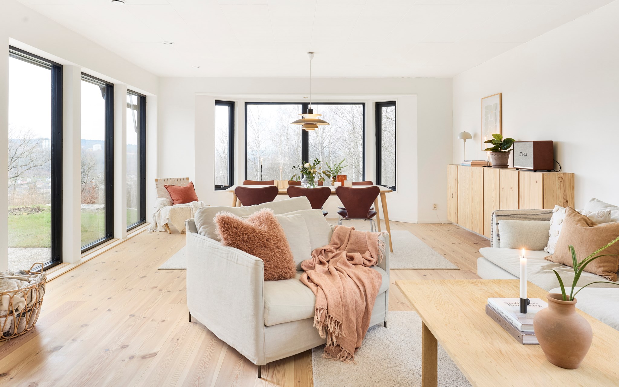 Huset ligger där återvändsgatan slutar och skogen börjar. Begåvat med väldigt mycket integritet och livskvalitet. Ett hus som förnyats intensivt på senare år. En ovanligt konsekvent och noggrann renovering visar det sig.