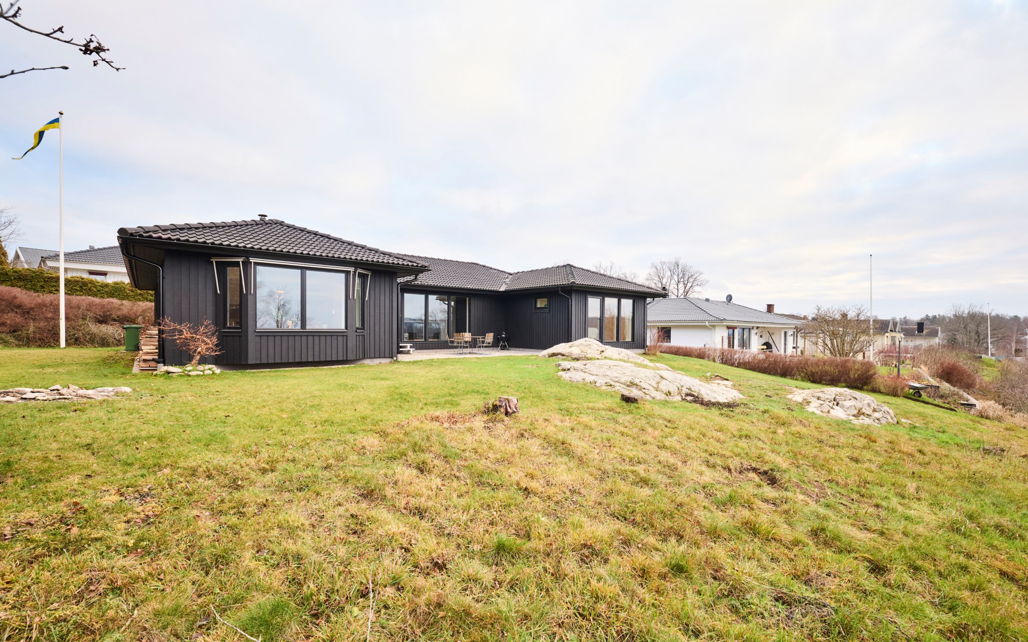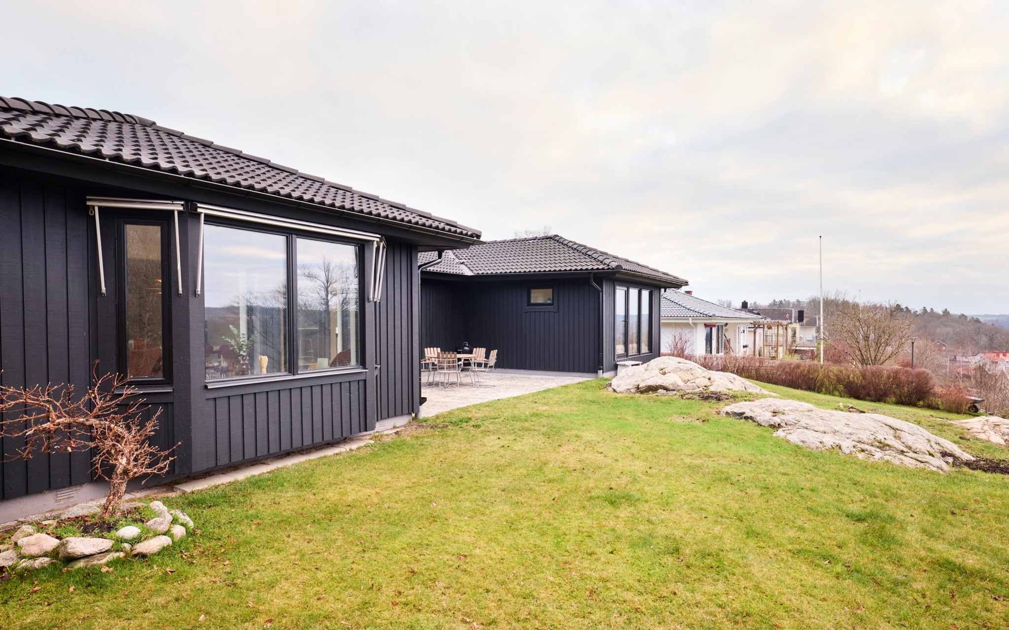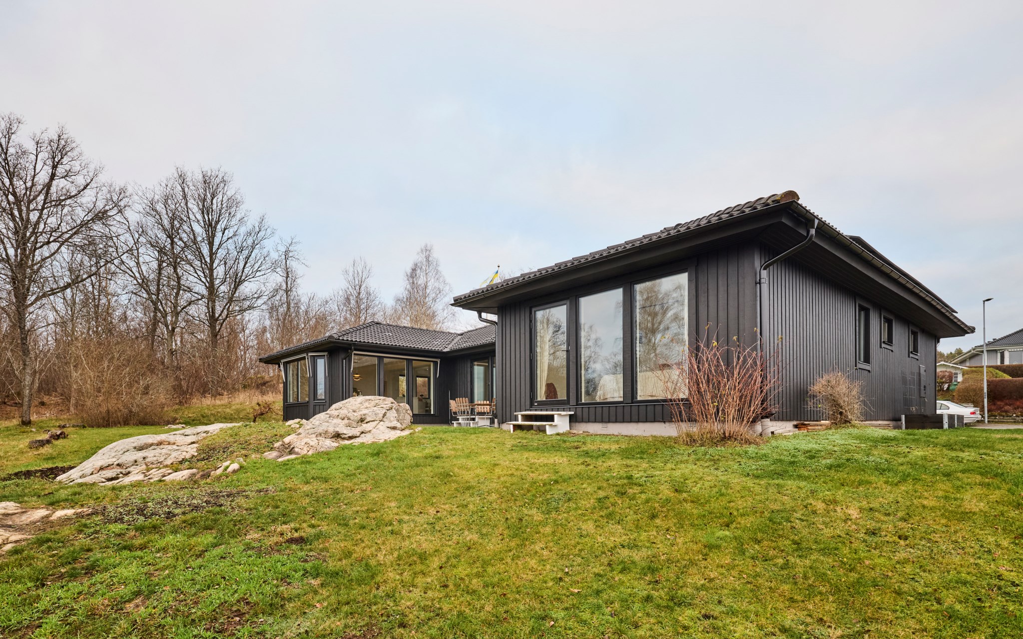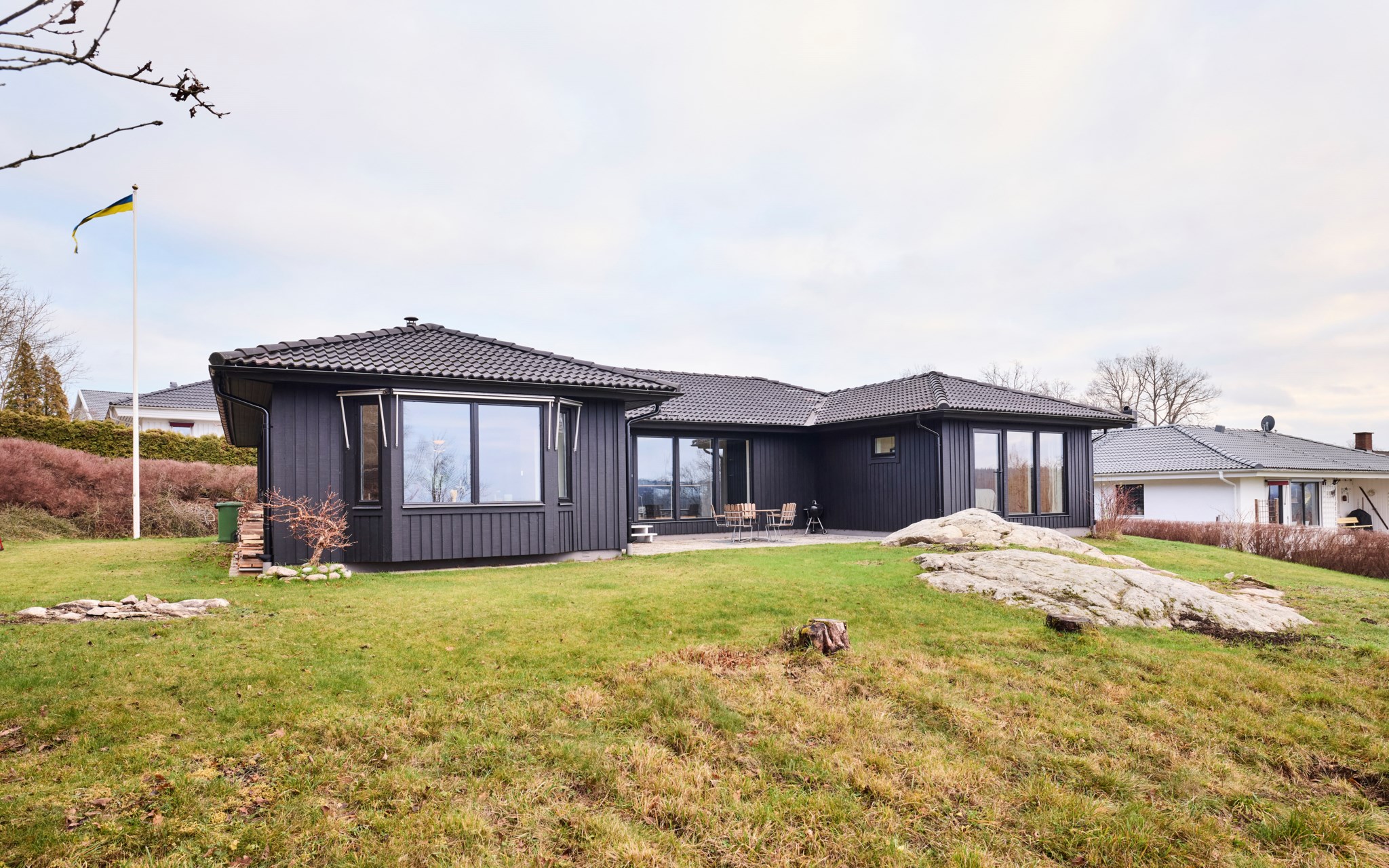 Gillar du det ostörda läget är det bara att flytta rätt in. Ett hus redo för en familj med både ett, två och tre barn. Huset är genomgripande och hyperkonsekvent renoverat under de senaste åren. Nya fönsterpartier, nytt kök, nytt badrum och ny kulör på panelen runt om huset. Allt gjort med svart som distinkt kontrastfärg till vita väggar, nya innerdörrar och nya vitsåpade furugolv. Huset dessutom uppdaterat med nyare luftvärmepump och solpaneler i två väderstreck, så att du inte blir snuvad på några soltimmar till elbilen. Huset byggt som ett stort U med hemlig baksida och noll insyn.