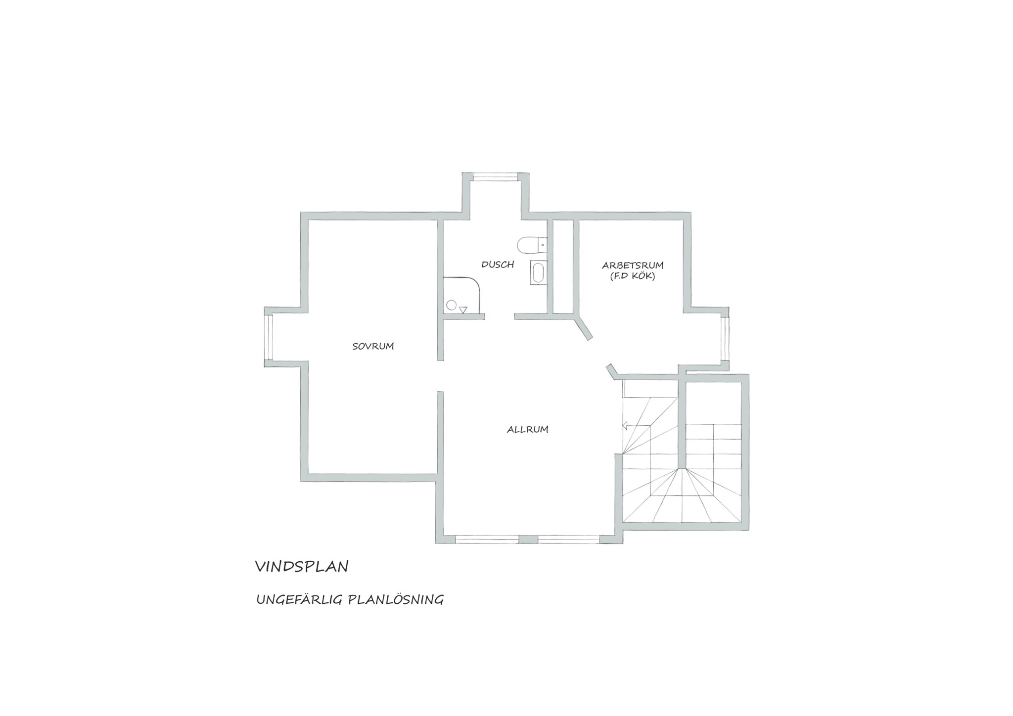2002 - Vindsvåningen inreddes till boyta och här finns både duschrum och i dagsläget ett kök som inte används. Detta var tidigare en separat lägenhet men är sedan många år sammanslagen med ytan på andra plan.