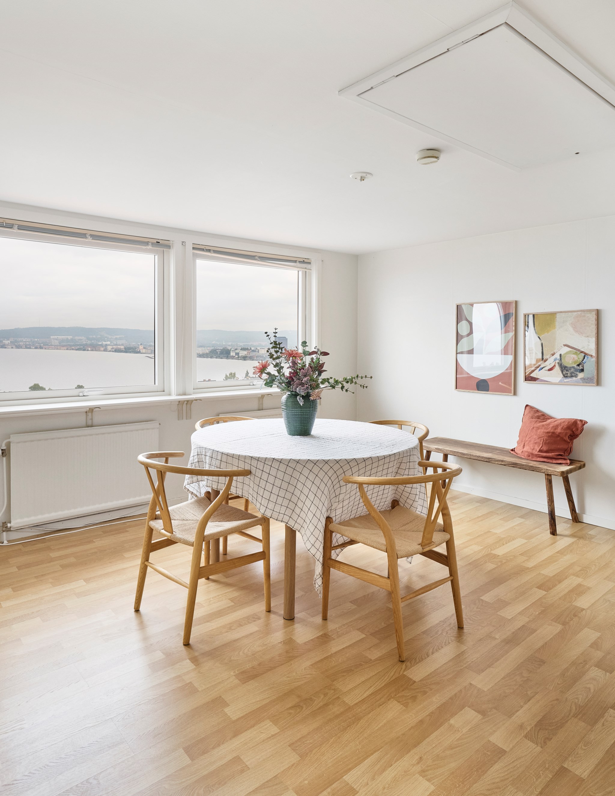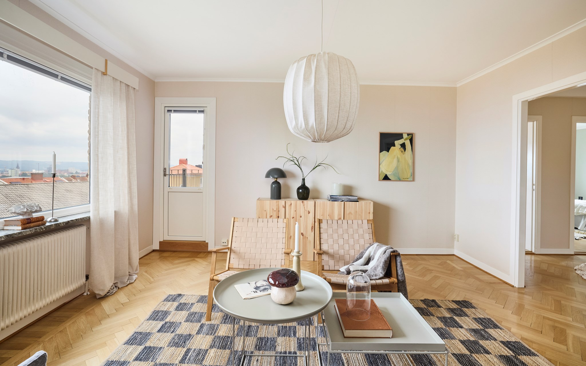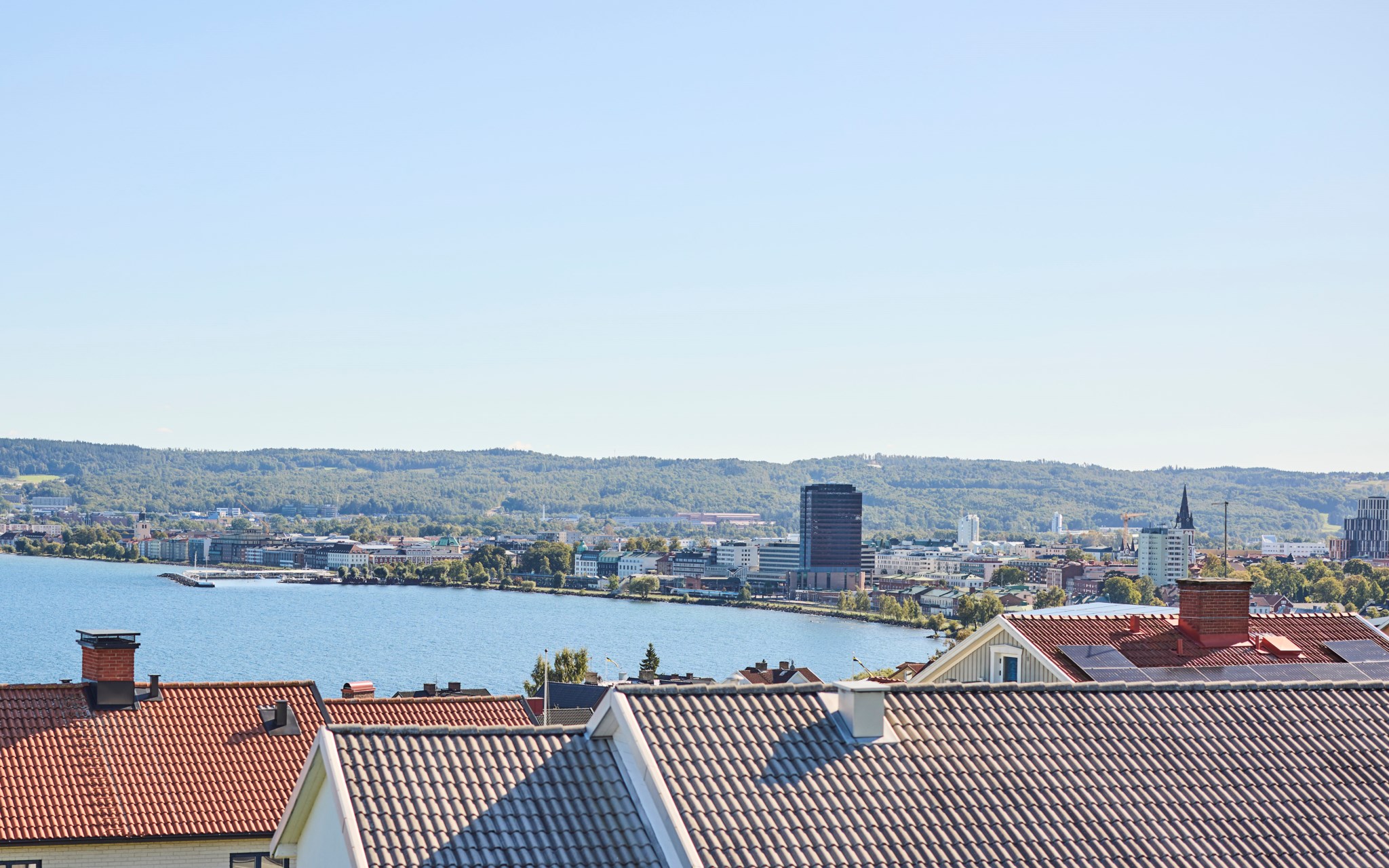 "Den stora lägenheten på plan två och tre omfattar totalt sex rum om totalt cirka 160 kvadratmeter. Utsikten härifrån är helt fenomenal."
