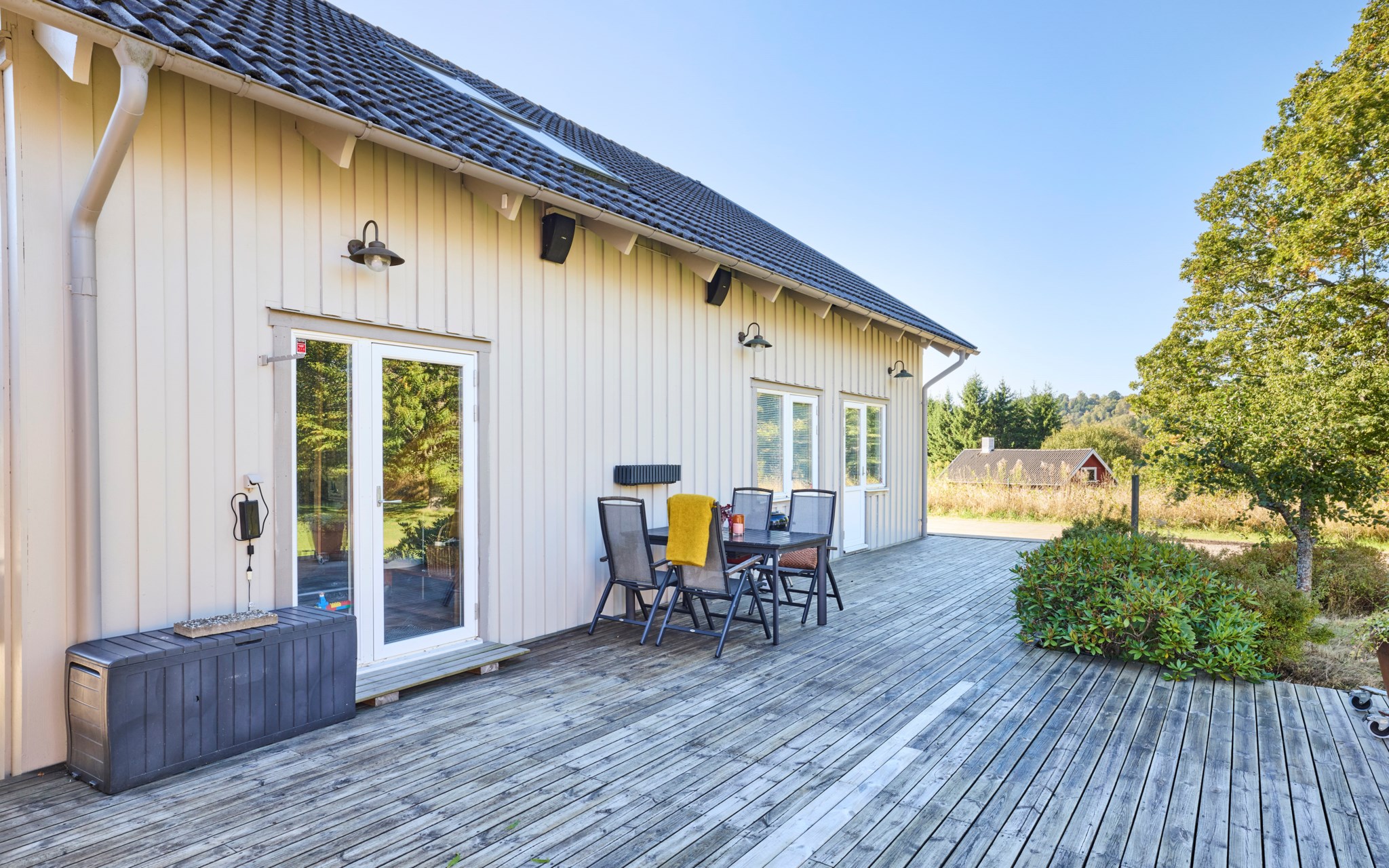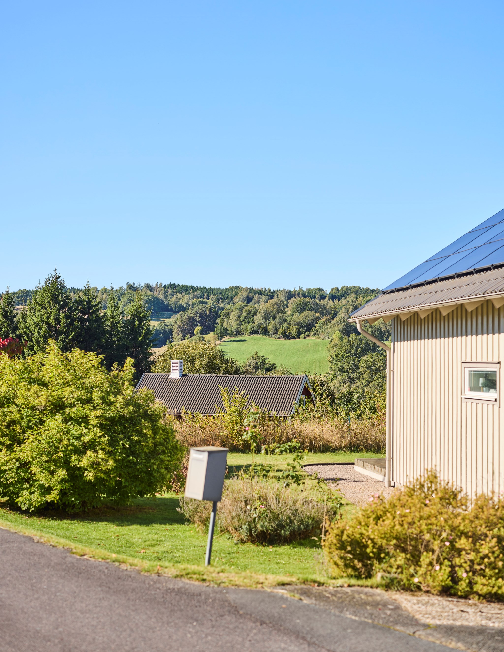 Ett robust och klokt hus som väntar på sin andra ägare som får alla möjligheter att sätta sin personliga prägel här. Ett överraskande stort vardagsrum väntar en trappa upp. Utsikten överraskar lika mycket.