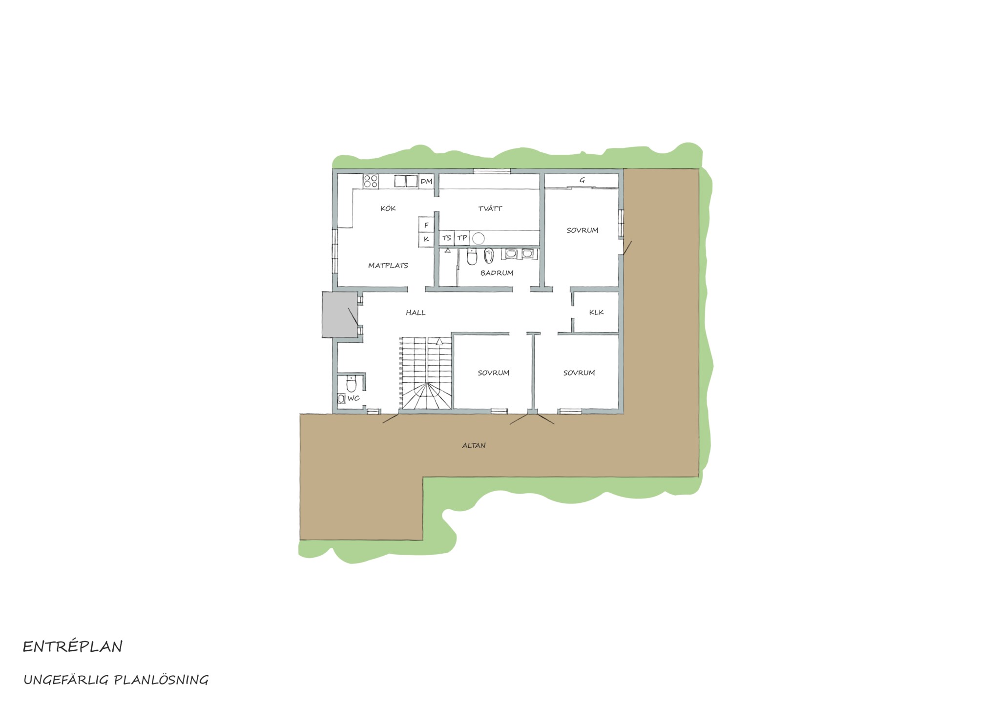 Huset är löpande renoverat genom åren av enda ägaren som lät bygga huset i mittan av 1970-talet. Fönstren bytta, taket omlagt och plattan försedd med vattenburen golvvärme. På taket dessutom ett 35 solpaneler som alstrar din egen el. Tre sovrum på entréplanet men det vore en ganska enkelt snickerioperation att skapa ett eller två till en våning upp. Alla sovrummen med egen dörr ut på altanen. När det gäller ytskikten i huset så är det lite olika tidsåldrar du möter. Lilla toaletten är uppfräschat, det stora badrummet från ett helt annat decennium.