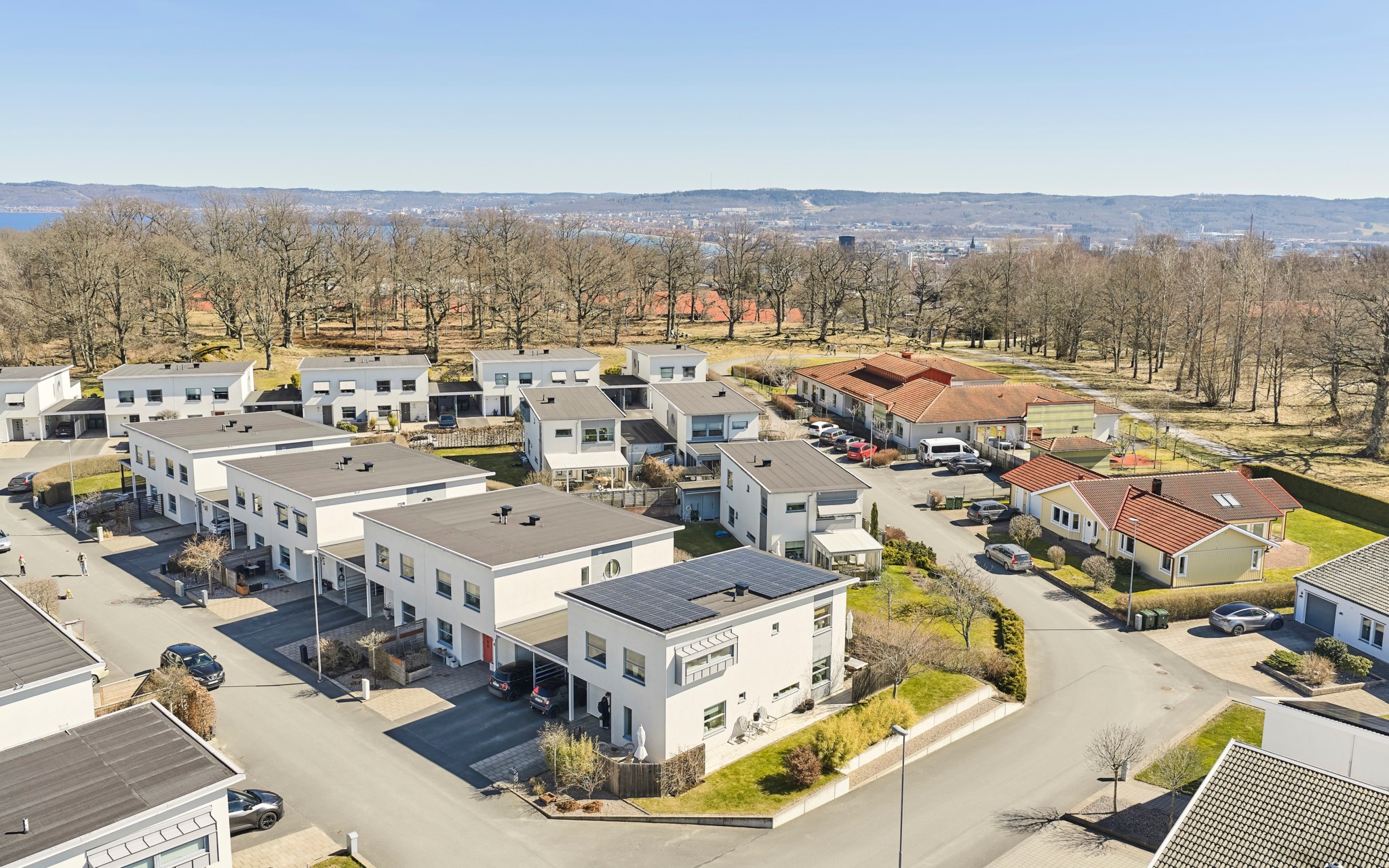 Om du vill vidga vyerna bortom Hisingstorp, tar du dig snabbt upp till Hallbystugan med miltals av slingor i skogen för löpning, cykling och skidor såklart. Skolor och dagis finns det på mycket nära håll – på Dalvik, Hisingsängen och även på Samset. Coop Dalvik har ett välsorterat sortiment, där du kan handla betydligt mer än bara nödtorften mjölk och bröd. Pizza och nyöppnat sushiställe finns också. Buss och cykelvägar går också i flera riktningar. Bussen med nummer två matar på så ofta dagtid att det knappt är lönt att starta bilen. Smidigast med cykeln är nog att köra ner mot Mariebo, så slipper du trampa uppför Dunkehallabackens brantaste del.