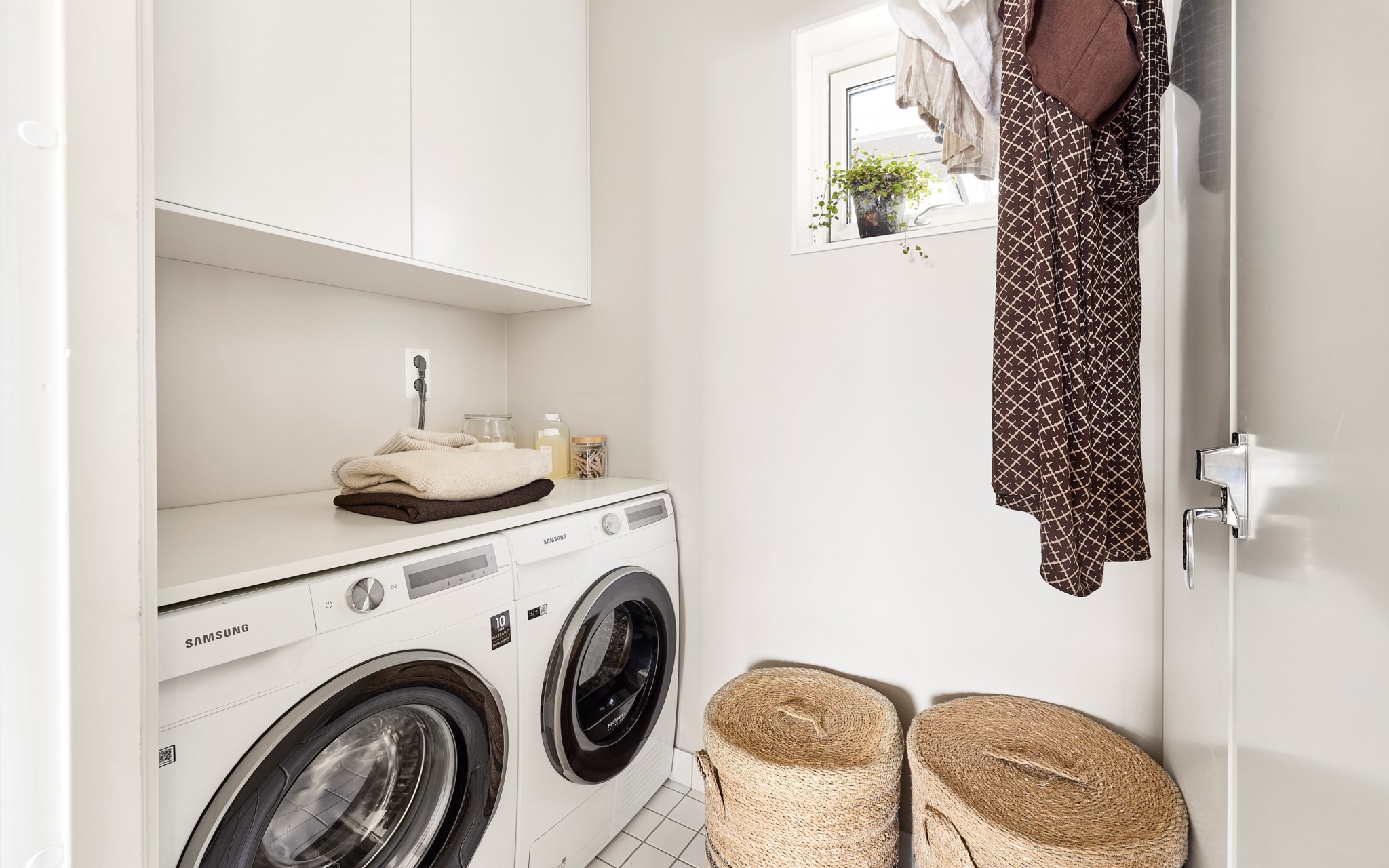 2022 - Renovering av tvättstuga med ny tvättmaskin och torktumlare (Samsung) och ny skåpsinredning.