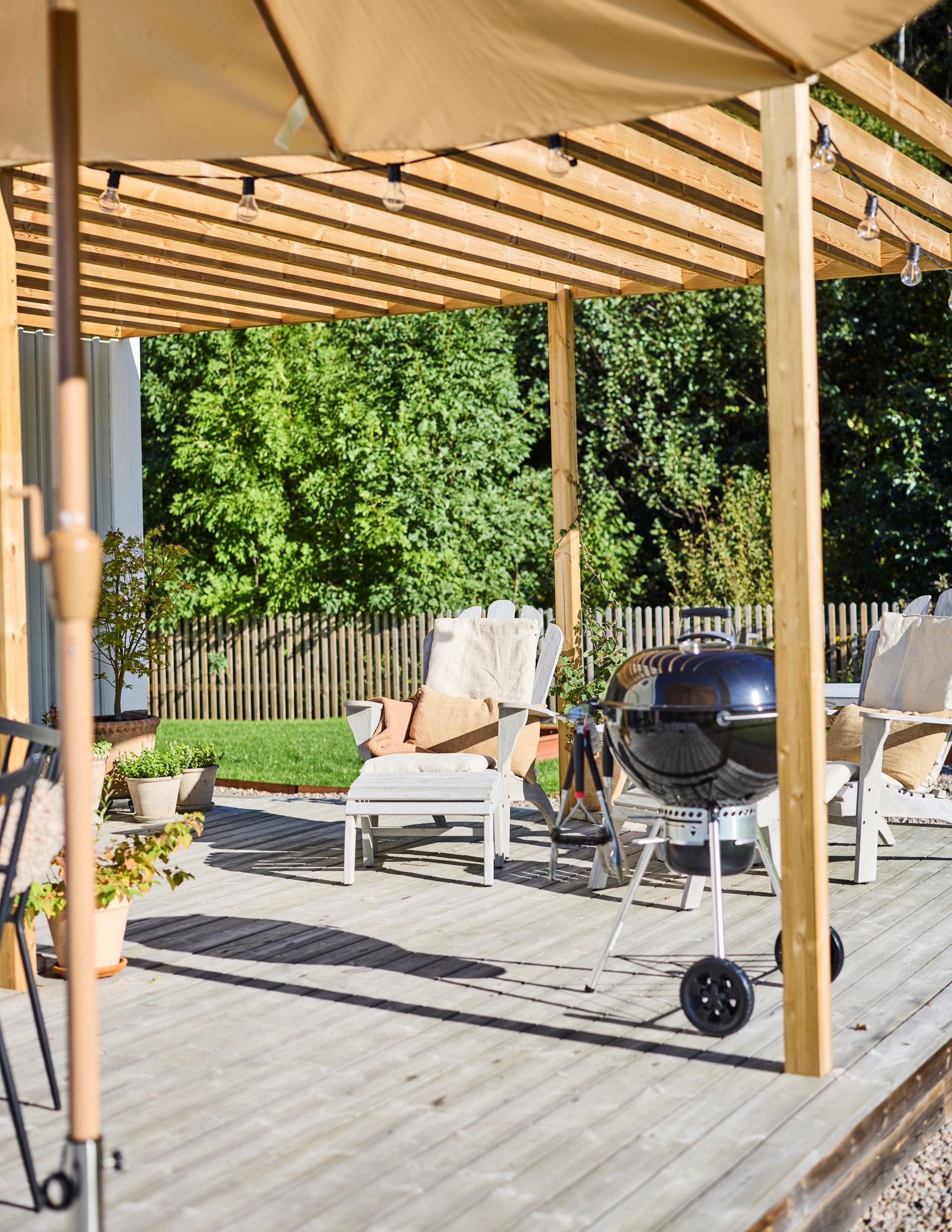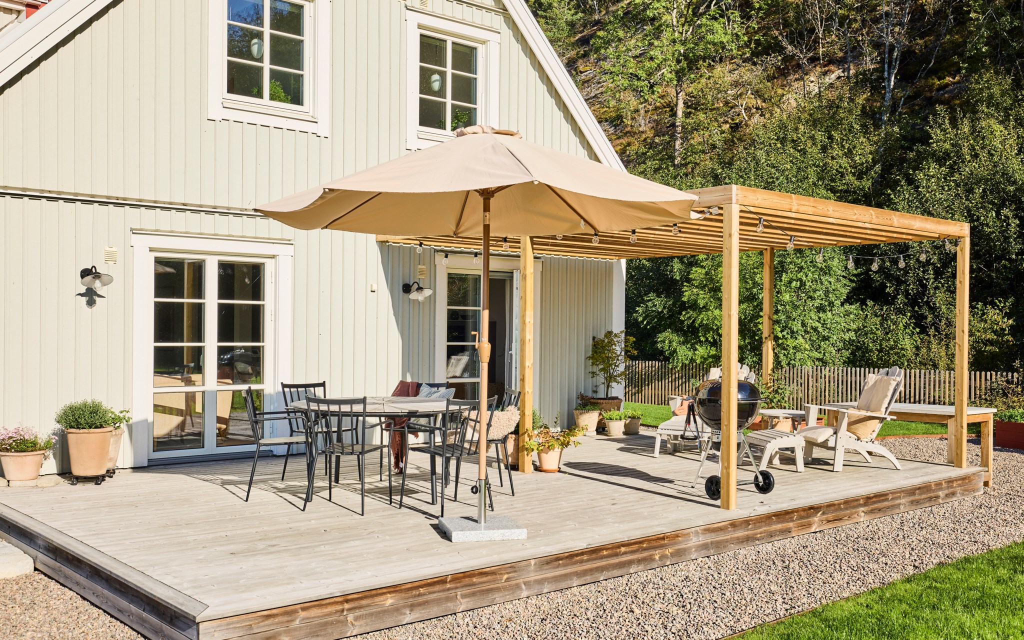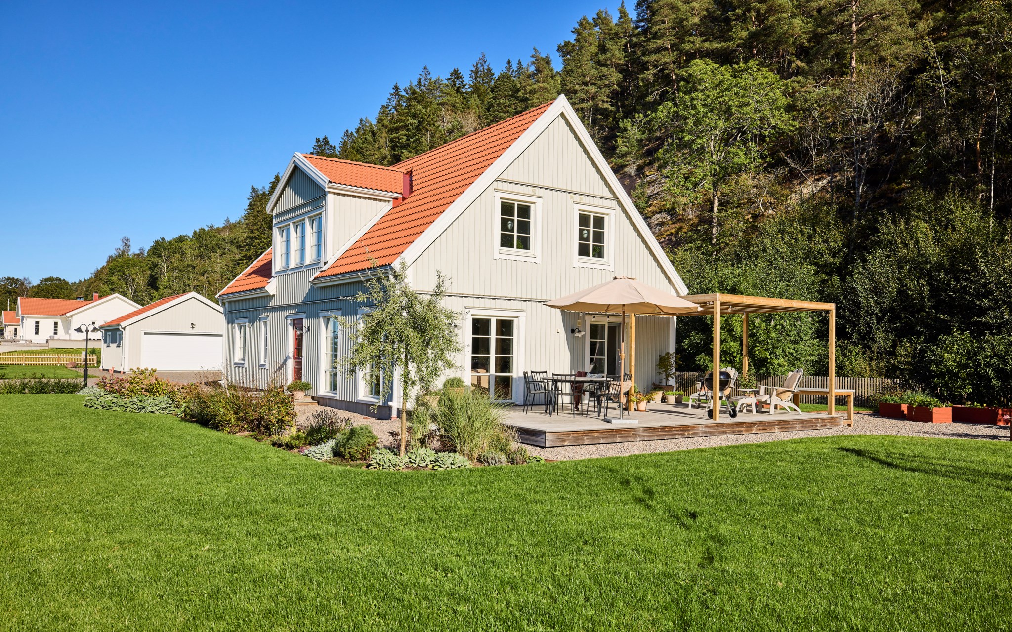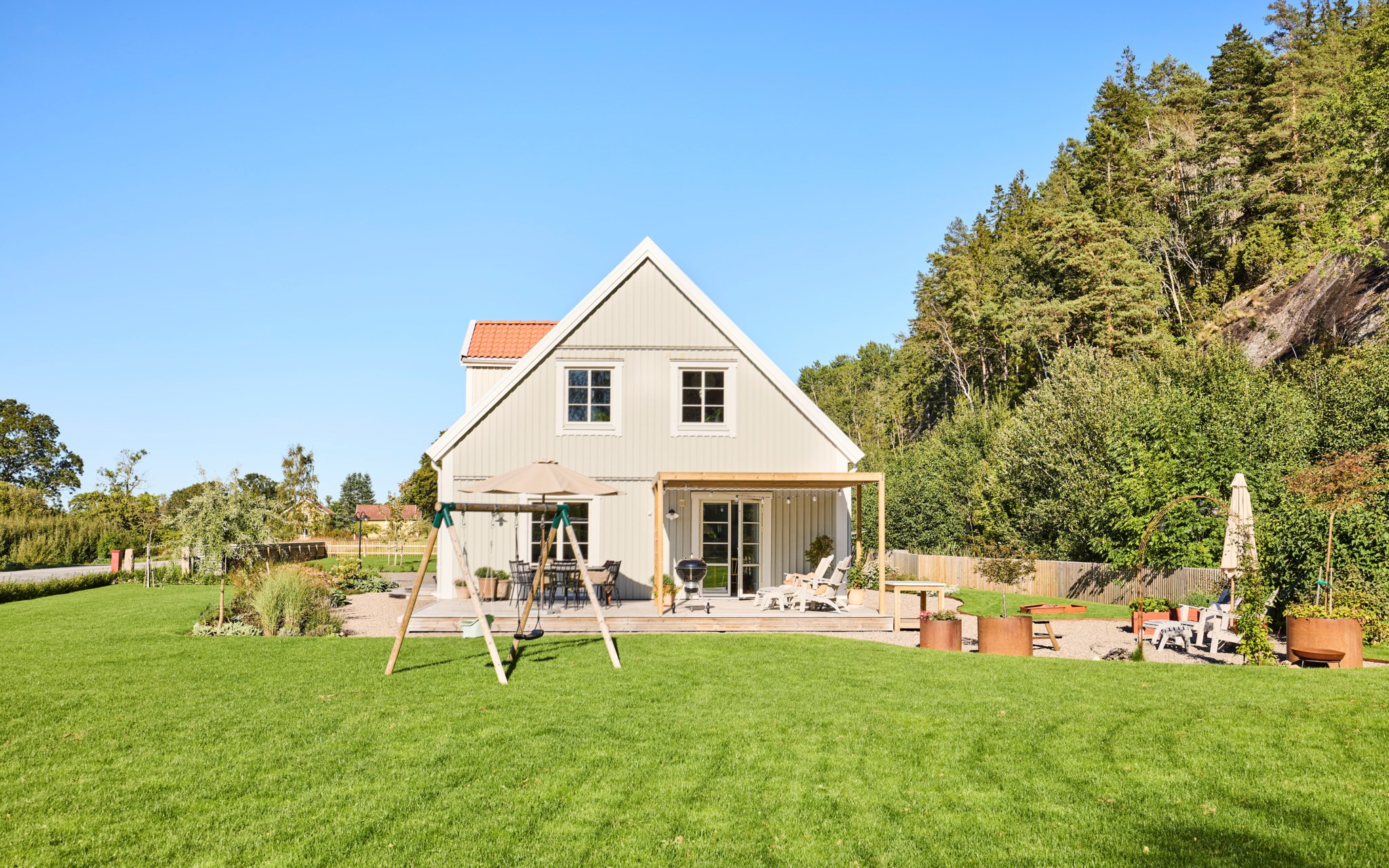 Garaget byggt 2023 på gjuten platta med träfasad och el indraget. Altanen byggdes direkt efter huset stod klart 2021 och fick en uppdatering i from av en pergola som installerades så sent som i år. Majoriteten av väggarna i huset är antingen målade eller tapetserade sedan 2020.