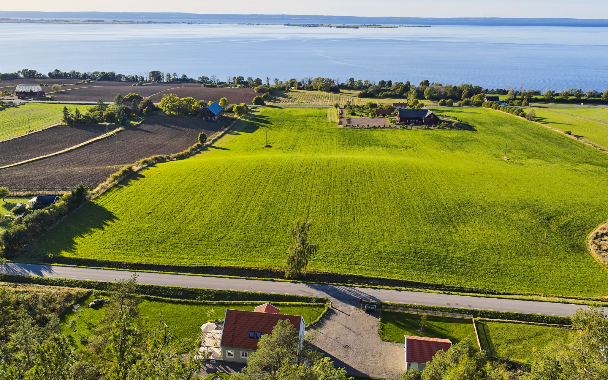 Huset ligger på en stor tomt som mäter hela 3000 kvadrat, med Brahehus på höjden en bit bort och de öppna fälten helt framför. Mesta delen av tomten är platt gräsmatta mot söder och väster, men även en liten dunge med lövträd som fick vara kvar när tomten styckades. Även en äppellund har rotat sig fint och ger redan en del frukt. Detta är en solsäker plats med ljumma temperaturer långt in på hösten. Nuvarande ägare har skapat många fina miljöer och planteringar både här och där med bland annat rosor, lavendel, hortensia, silverpäron och daggkåpor. Och i odlingslådorna är bland annat persilja och jordgubbar redo till våren. Kompost bakom garaget. Oändliga möjligheter att odla mer om du är hågad för det. Varför inte bikupor borta i dungen mot grannen.