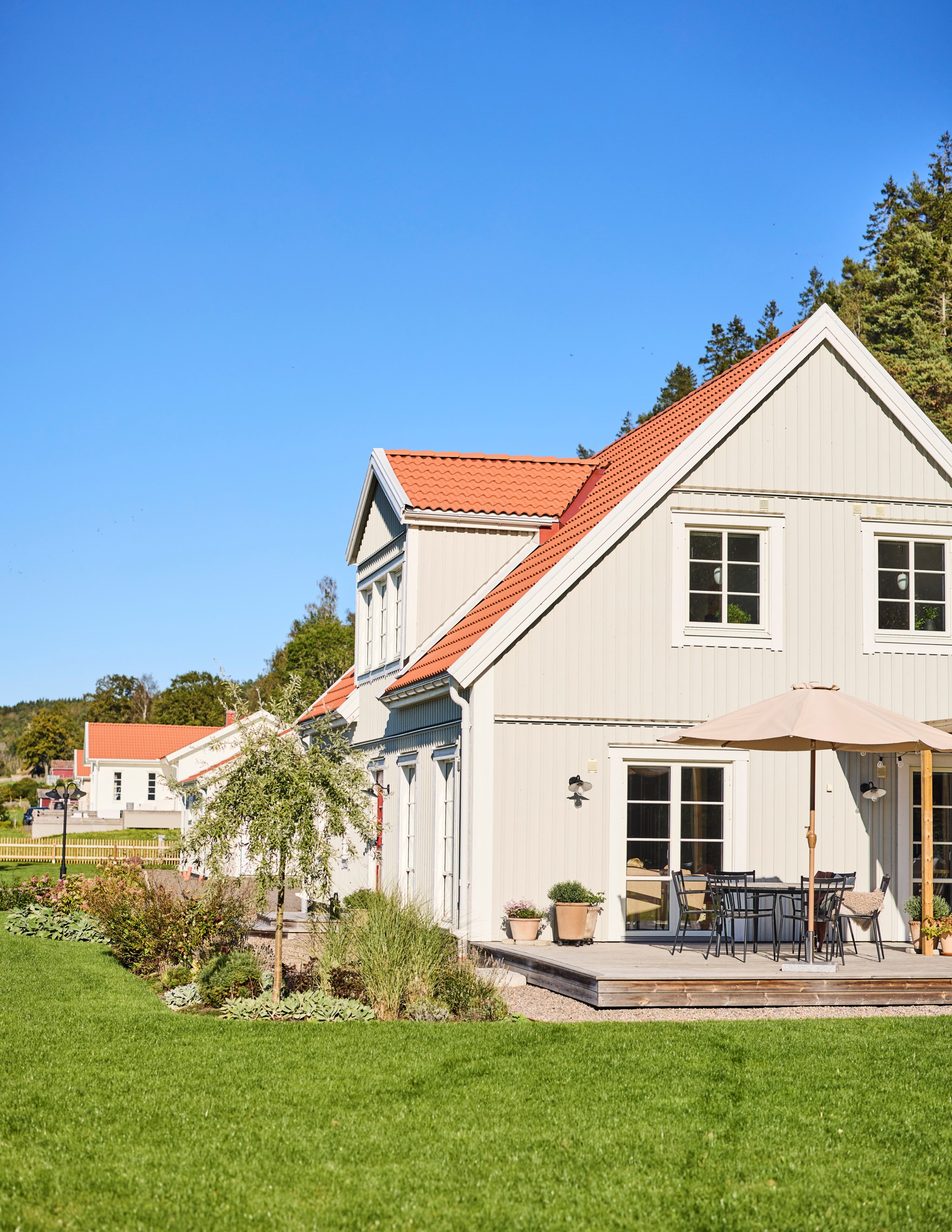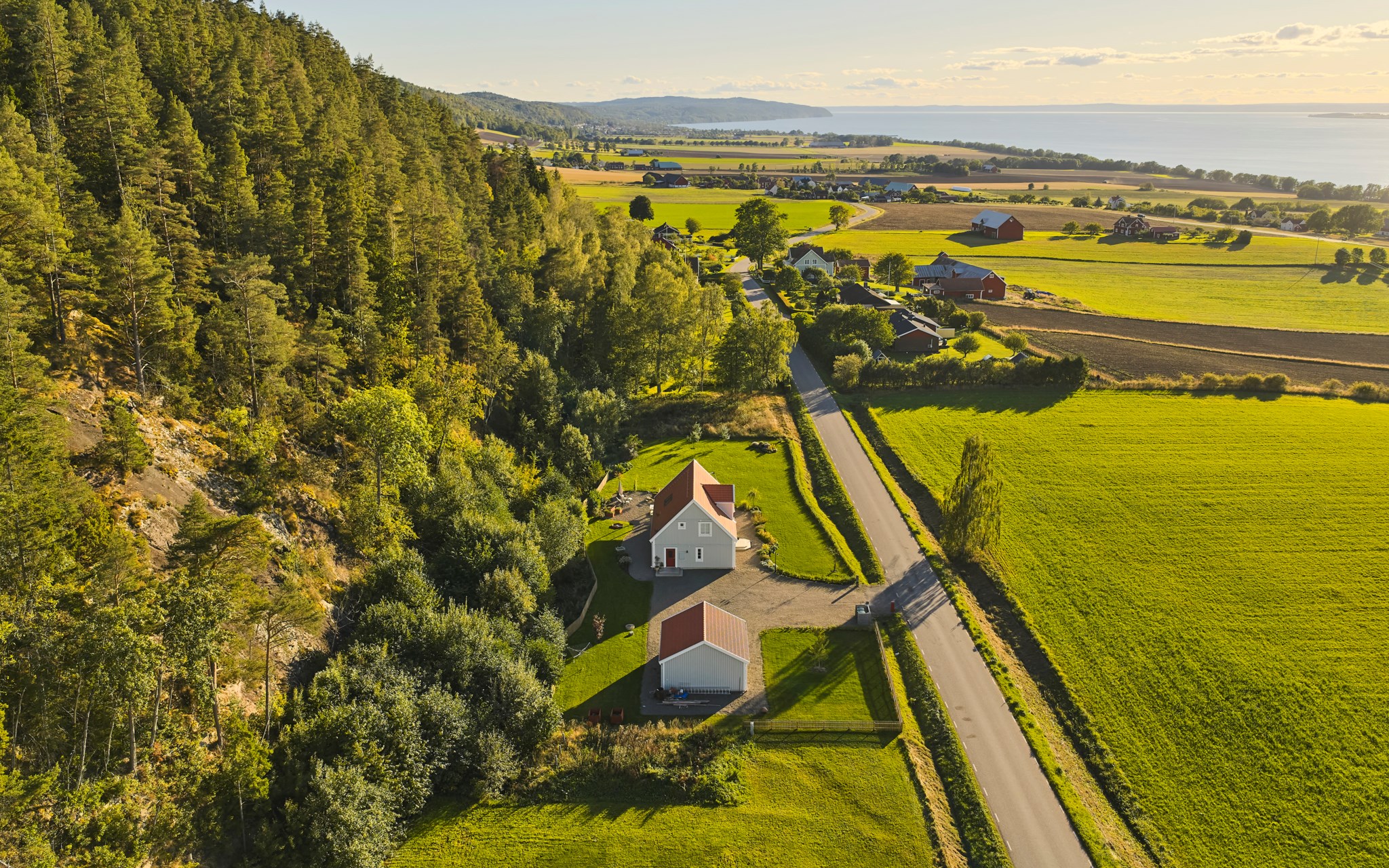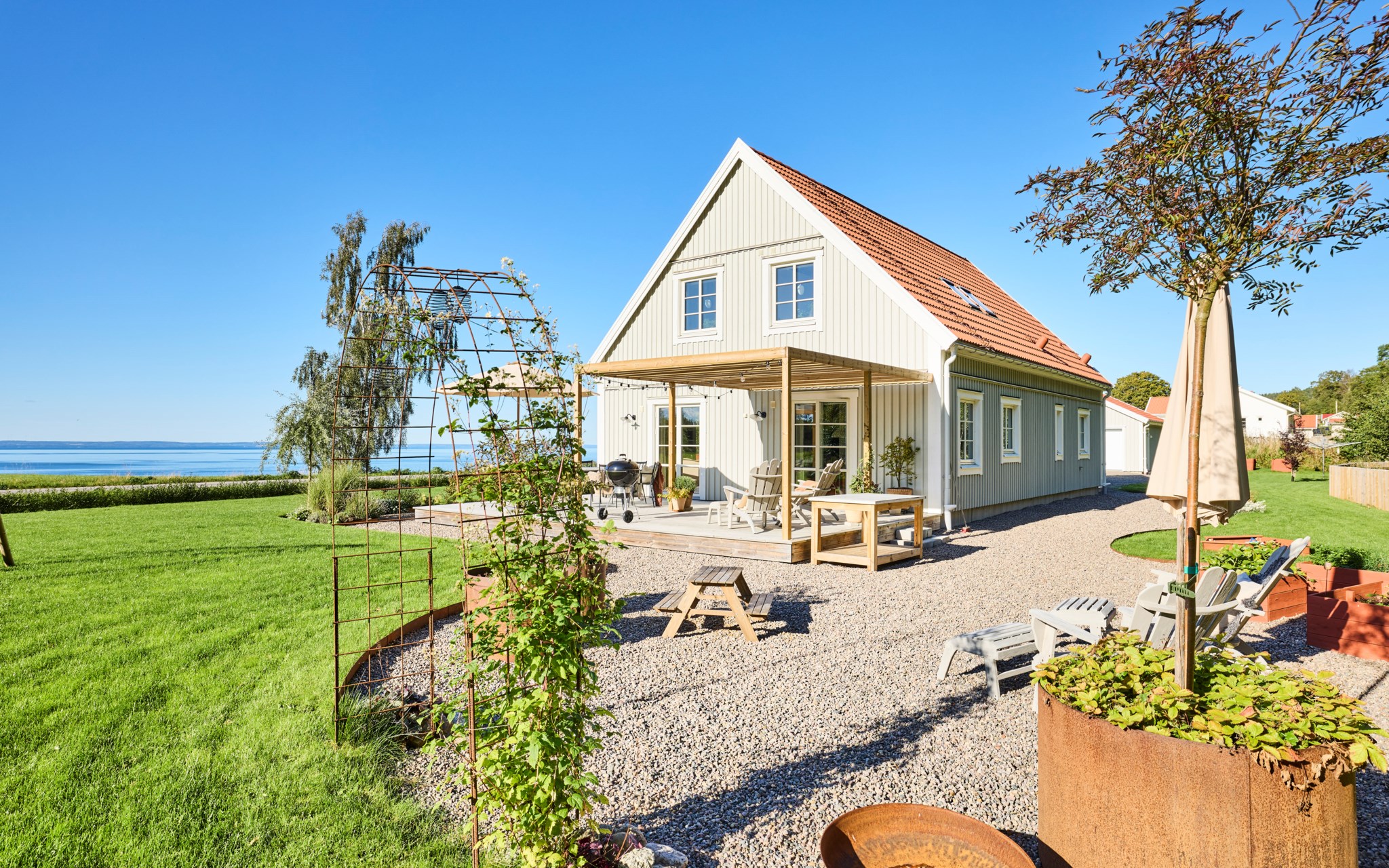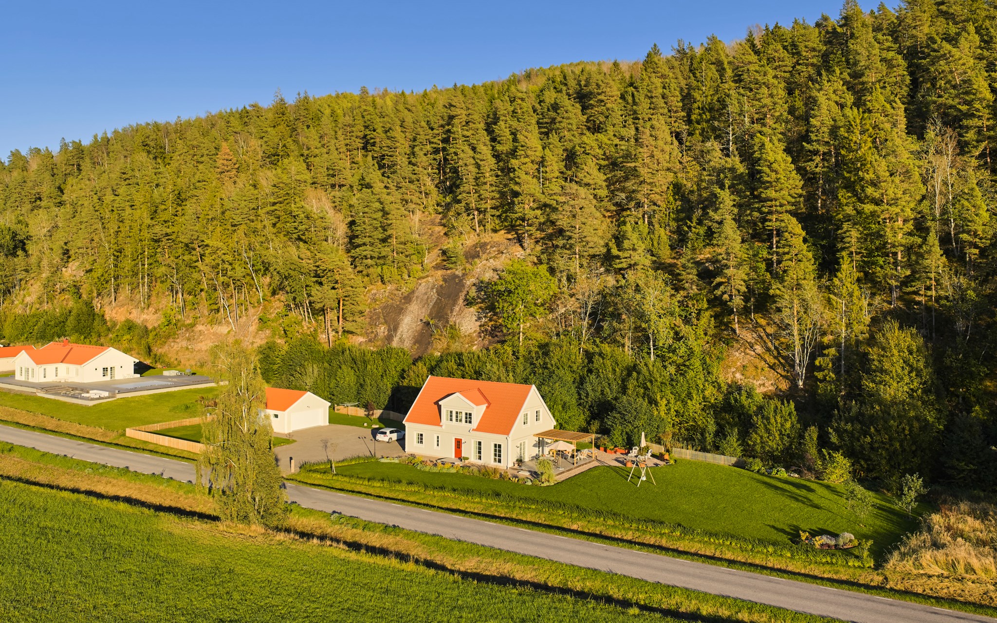 Villan stod klar på denna maffiga tomt så sent som 2020. Men inte bara utsikten som är maffig utan vi snackar om cirka 3000 kvadrat tomt dessutom. Huset byggt på gjuten platta med vattenburen golvvärme och med radiatorer en trappa upp. Huset byggt och levererat av Myresjöhus och modellen heter Smart. Nuvarande ägare har gjort en hel del förändringar i interiören utifrån grundplanen, bland annat en större samlad tvättstuga och groventré från norrsidan. Golven valda med omsorg – ljus kvistfri ek i alla rum, och samma klinker i såväl hall som våtutrymmen. Huset värms med luft-vattenvärmepump, och delar brunn och avlopp med grannhusen som är ungefär lika gamla.