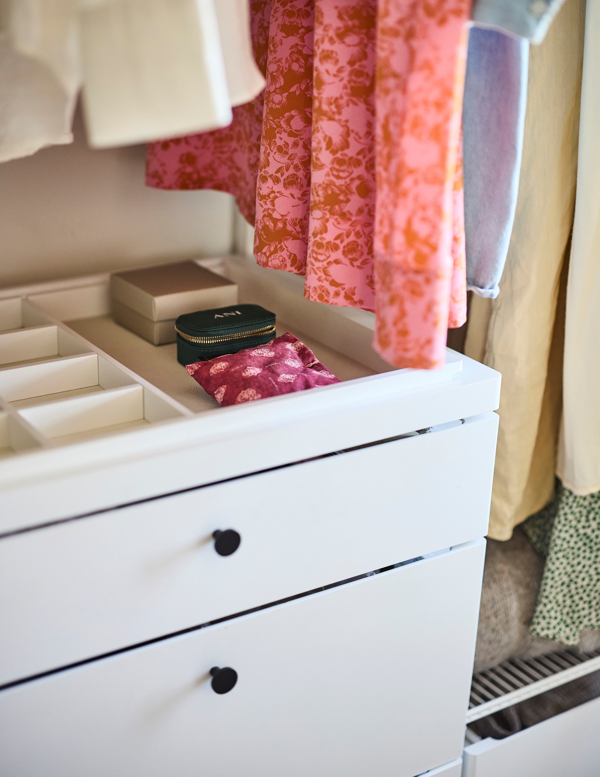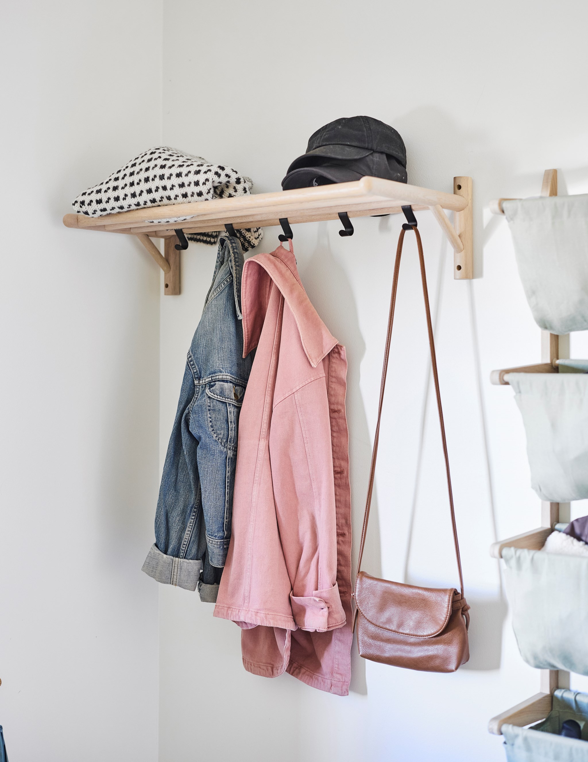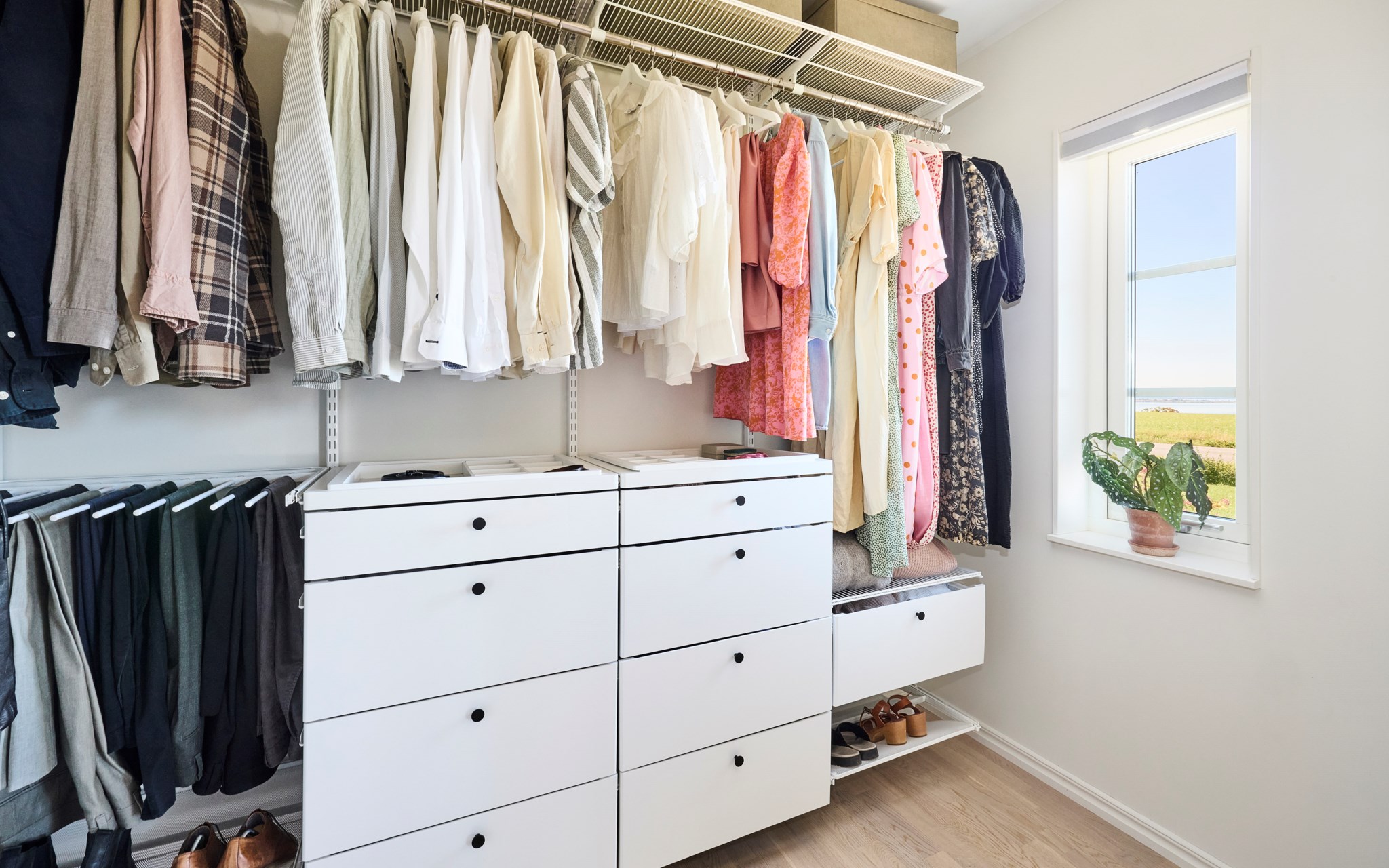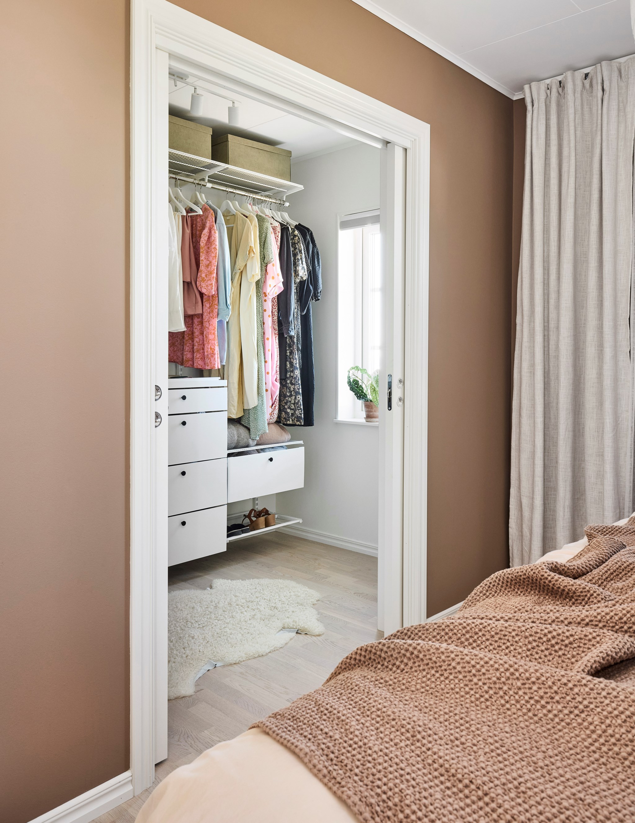 Garderobsystem i klädkammare på entréplanet planerar nuvarande ägare att ta med sig.