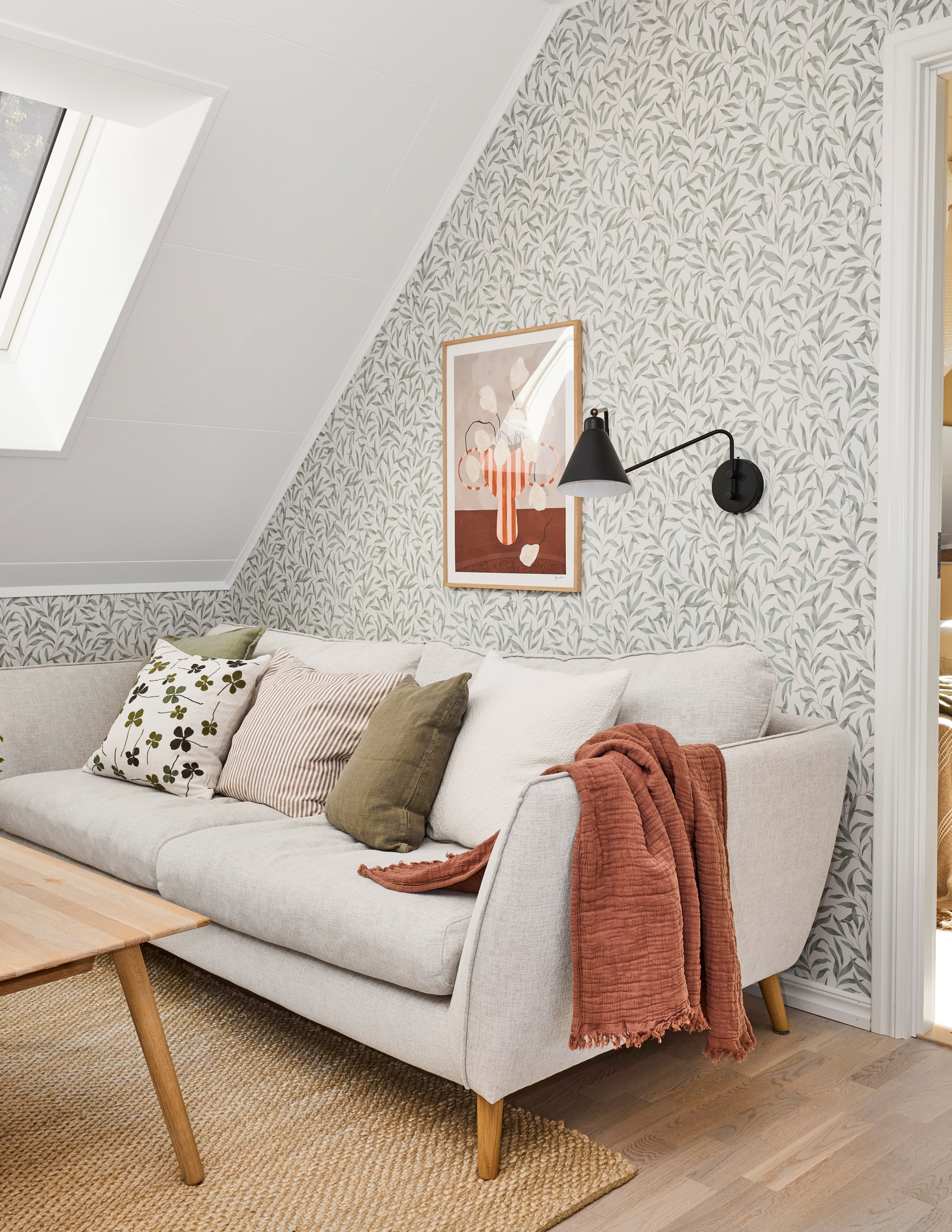 Behaglig vattenburen golvvärme finns i hela entréplanet och elburen golvvärme finns i badrummet på övre plan.