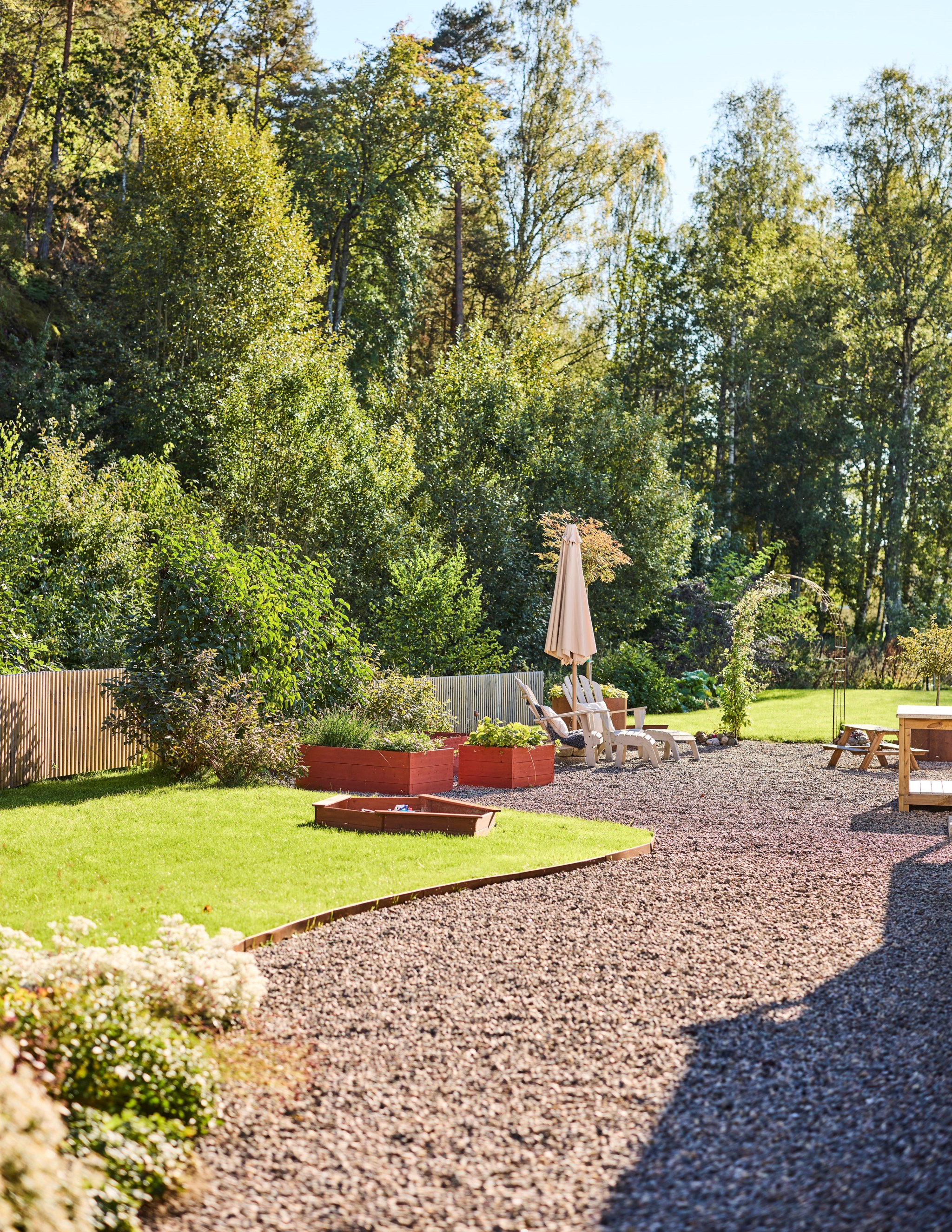 Väl tilltagen trädgård med stora möjligheter för dig med gröna fingrar. Nuvarande ägare har skapat många fina miljöer, odlingslådor och planteringar både här och där med bland annat rosor, lavendel, hortensia, silverpäron och daggkåpor. Tomten bjuder på mycket sol i eftertraktat söder- och västerläge.