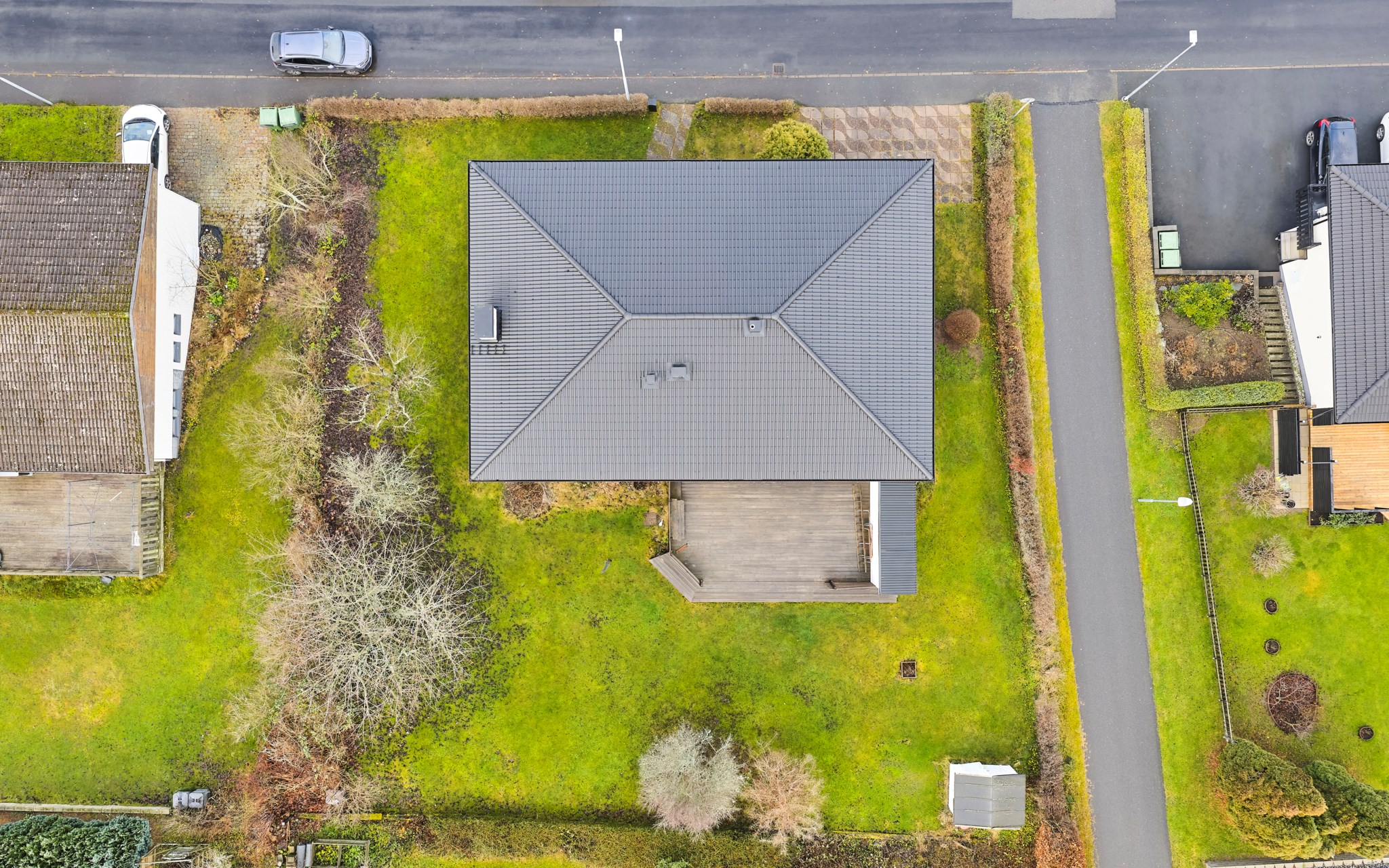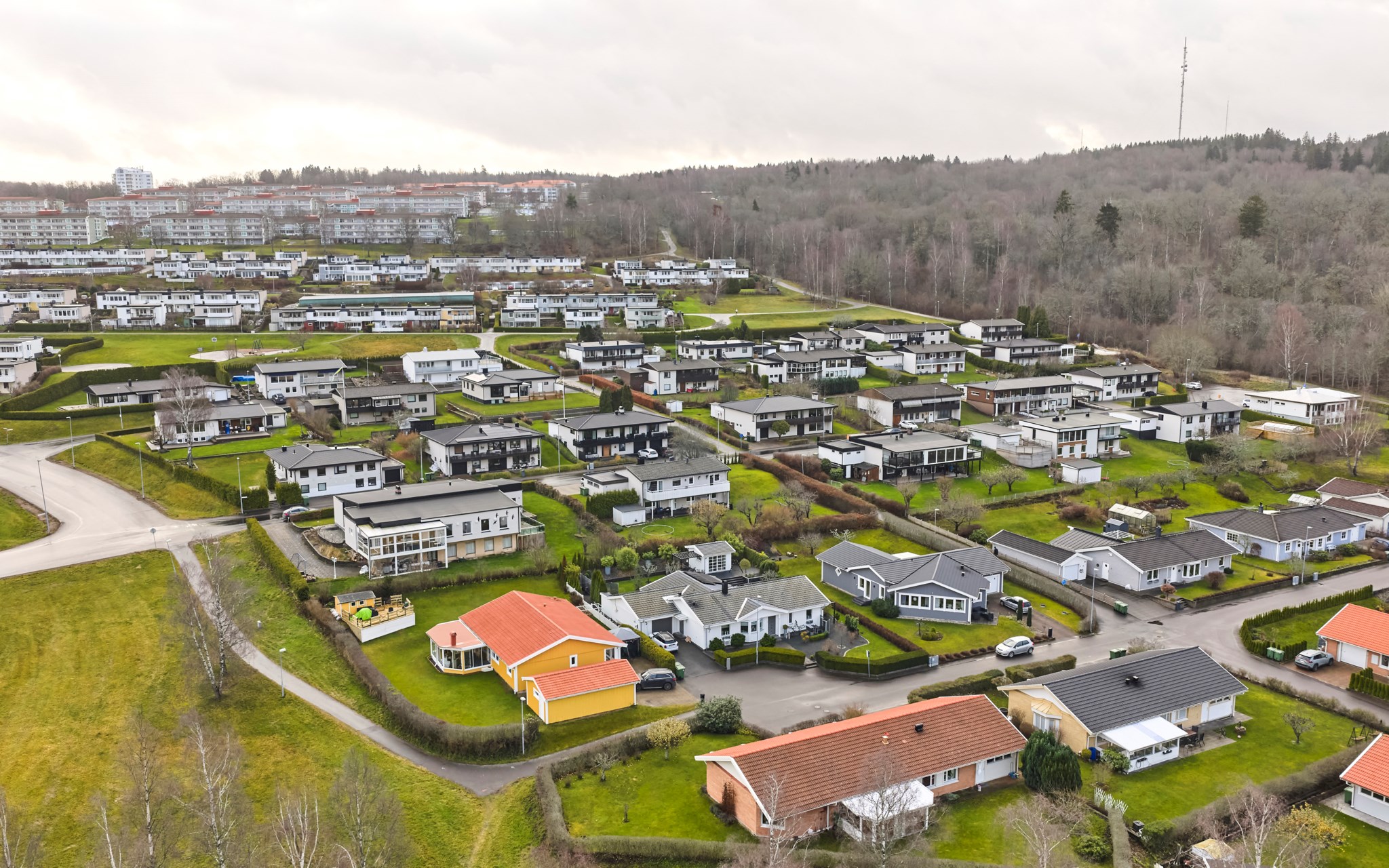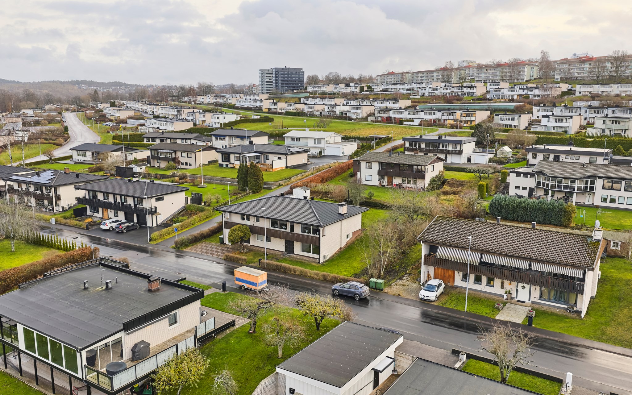 Ett Aneby-hus byggt 1975 i suterräng och i ganska tidstypisk stil. Mexitegel och långt utskjutande så kallat valmat tak, det vill säga takfall i alla väderstreck. Takfoten skyddar både fasad och fönster väl från regn och rusk. Huset mäter nästan 300 kvadrat varav 200 är boyta. De sociala ytorna väl tilltagna både uppe och nere, och känns nästan oändliga. Två pampiga öppna spisar drar ögat till sig. Kök och badrum väl i ordning, och fönstren bytta. Ett klassiskt hobbyrum som tål alla tänkbara upptåg, och säkert några otänkbara också. Huset värms med luftvärmepump och direktverkande el. Kamininsatsen nere kan bjussa på värme hela vägen upp, tack vare att trappan står mitt i huset.