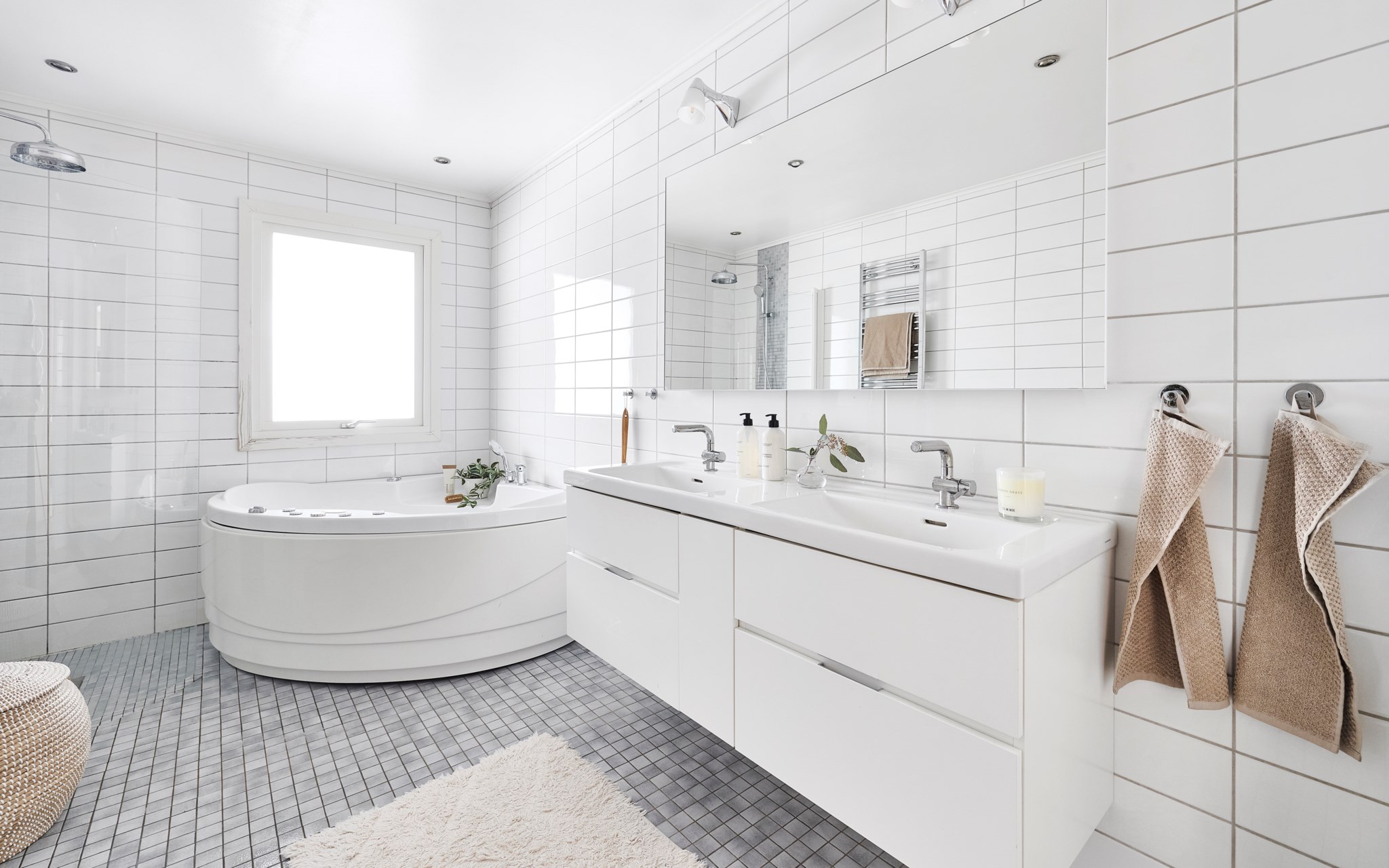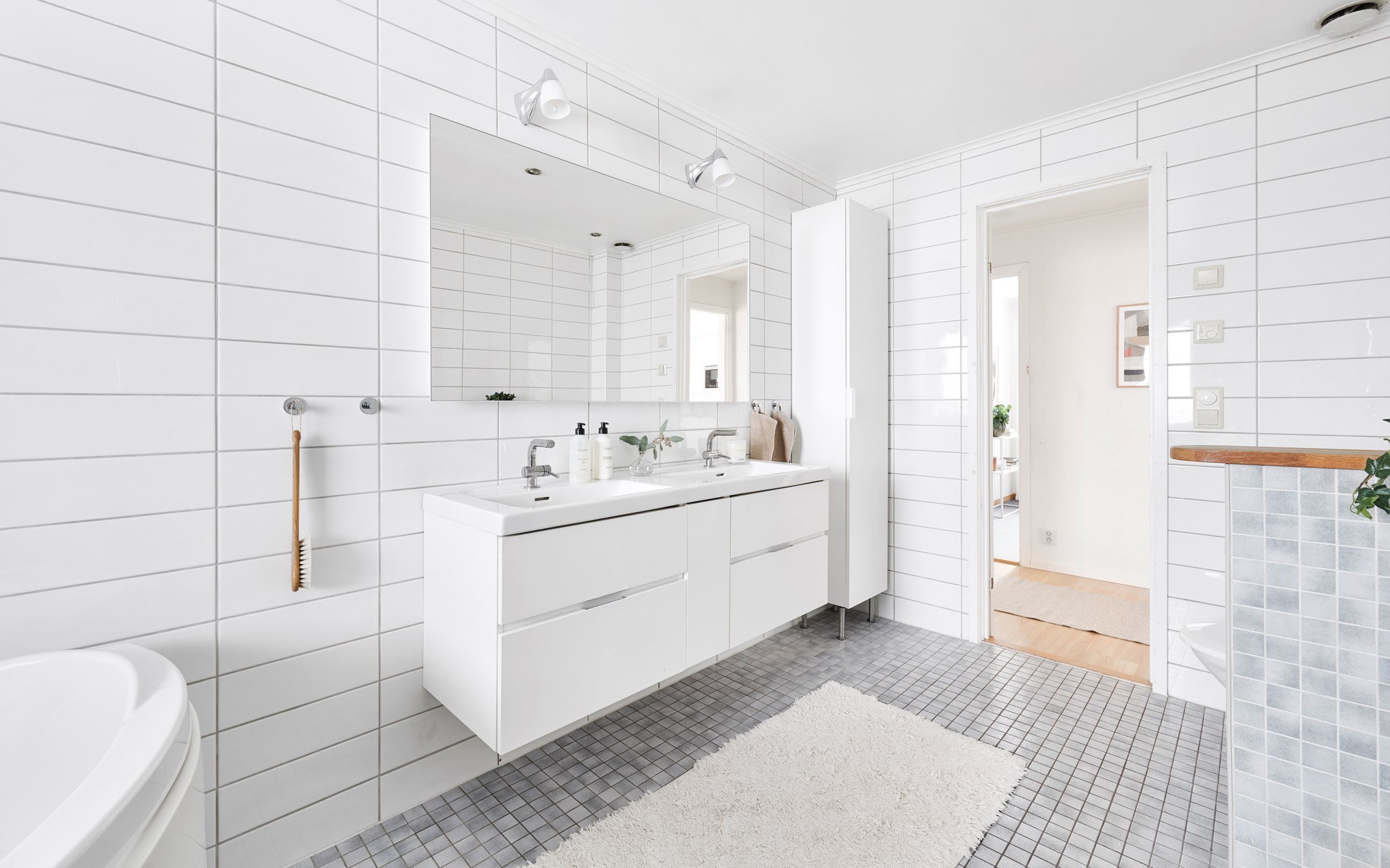2014 uppdaterades badrummet på övervåningen med ny dubbelkommod, spegel samt ny termostat till handdukstork.