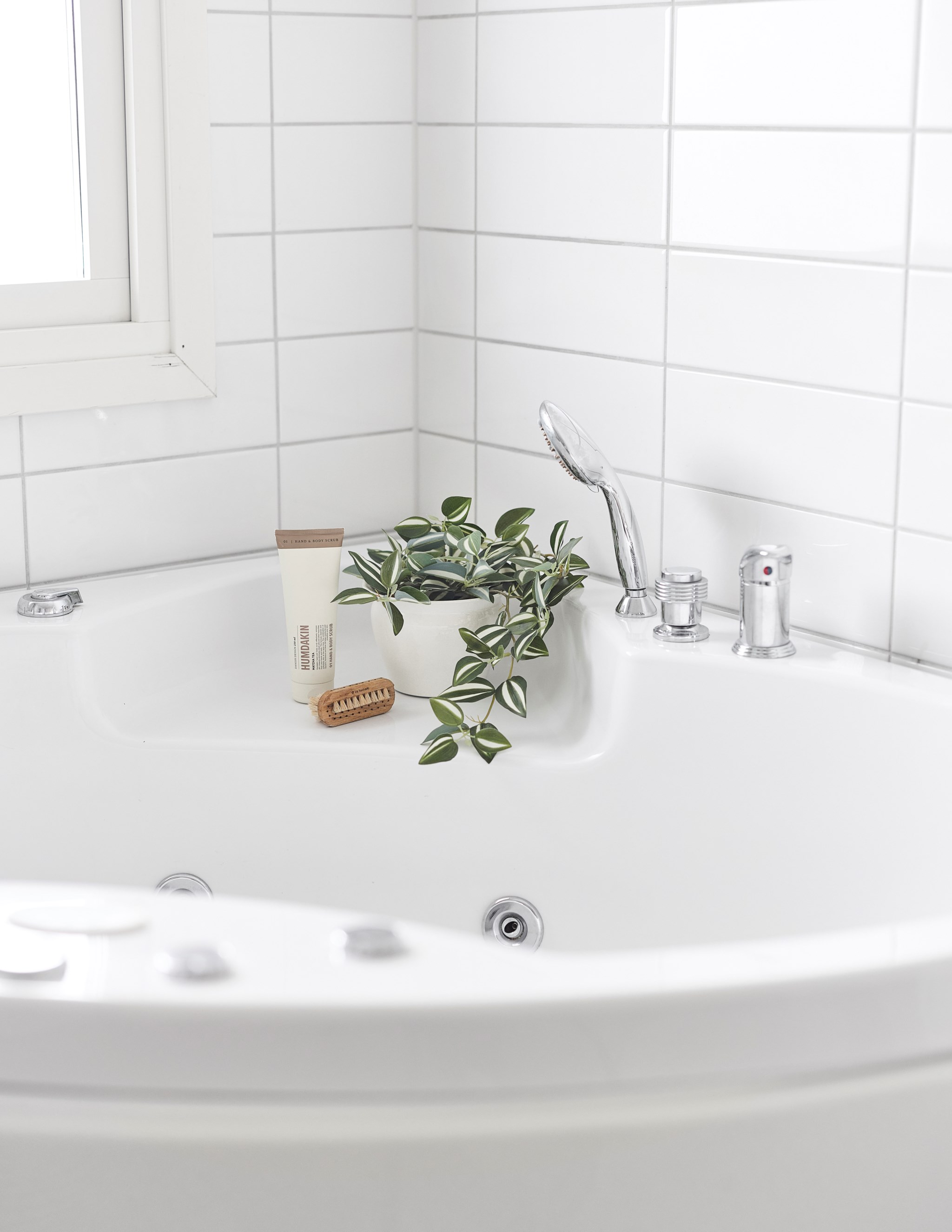 Stora badrummet klokt renoverat utan tidstypiska och daterande val av färger och material. Svårt alltså att avgöra om det var tio år sedan renovering eller ännu längre sedan. Men när vi frågade nuvarande ägare så uppger han att det skedde 2006. Och då kom badkaret på plats som fortfarande levererar bubblor till helgen om du vill. Även dusch så att du kvickt kan vara på väg till jobbet varje morgon. Helkaklat med golvvärme på husets betongbjälklag. Fönstret vetter mot norr, men ljuset ska nog räcka för att se om du är skäggsnygg. Och det finns belysning också. Gästtoaletten ligger där nere, och även den neutral i stil, färg och material så att renoveringssuget inte ska vakna än på många år.