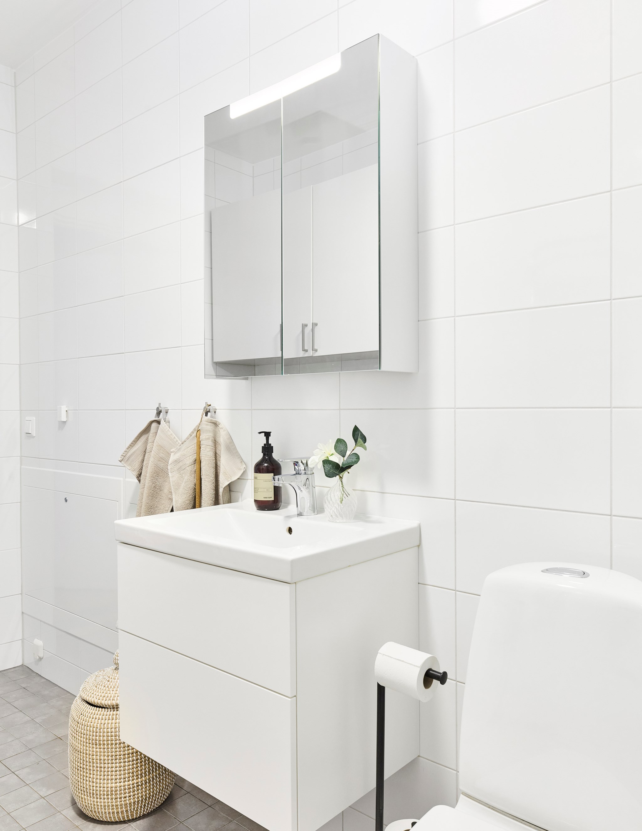Badrummets vitvaror är även de från Bosch. Tvättstället byttes under 2025 och är därmed så gott som nytt.