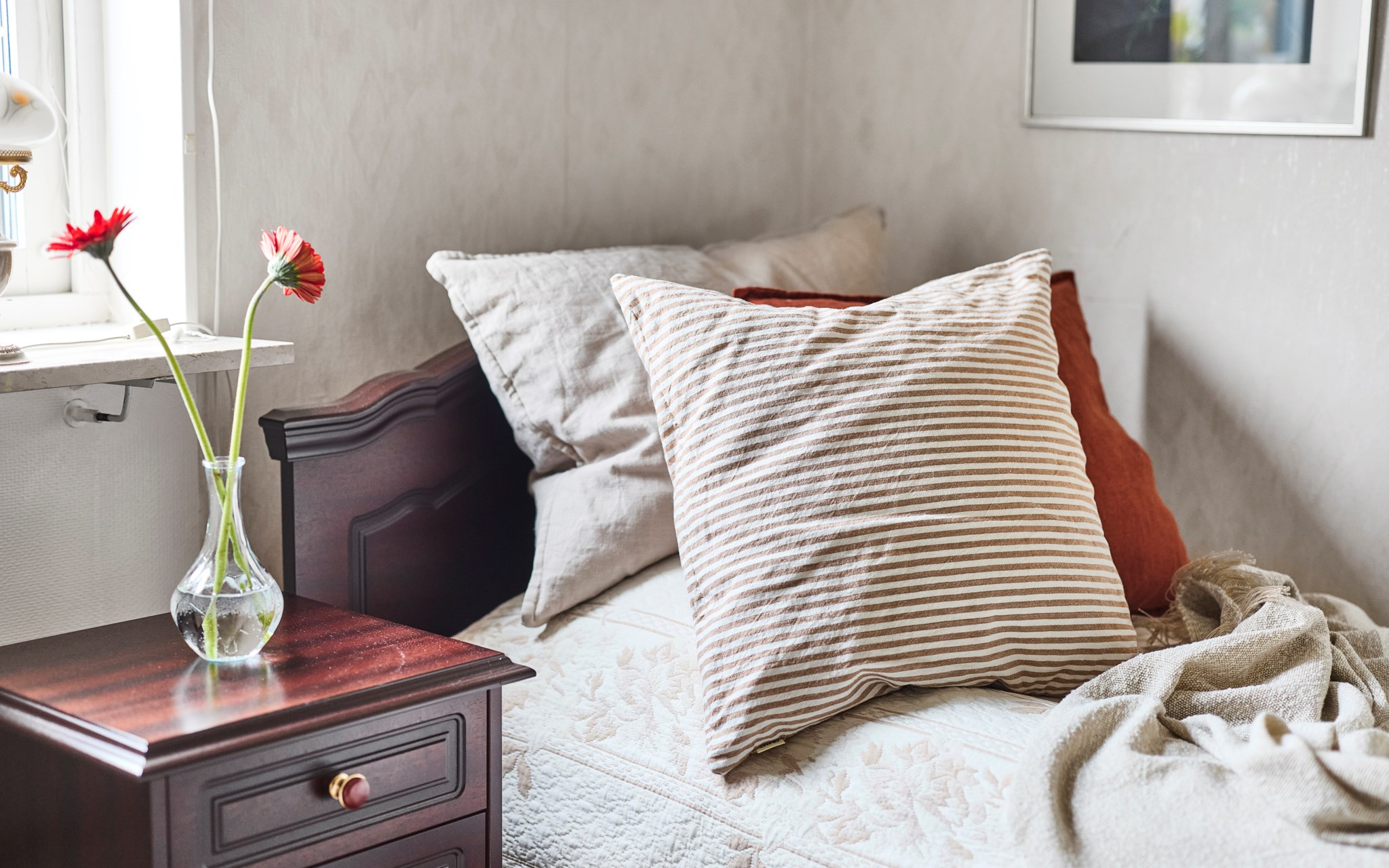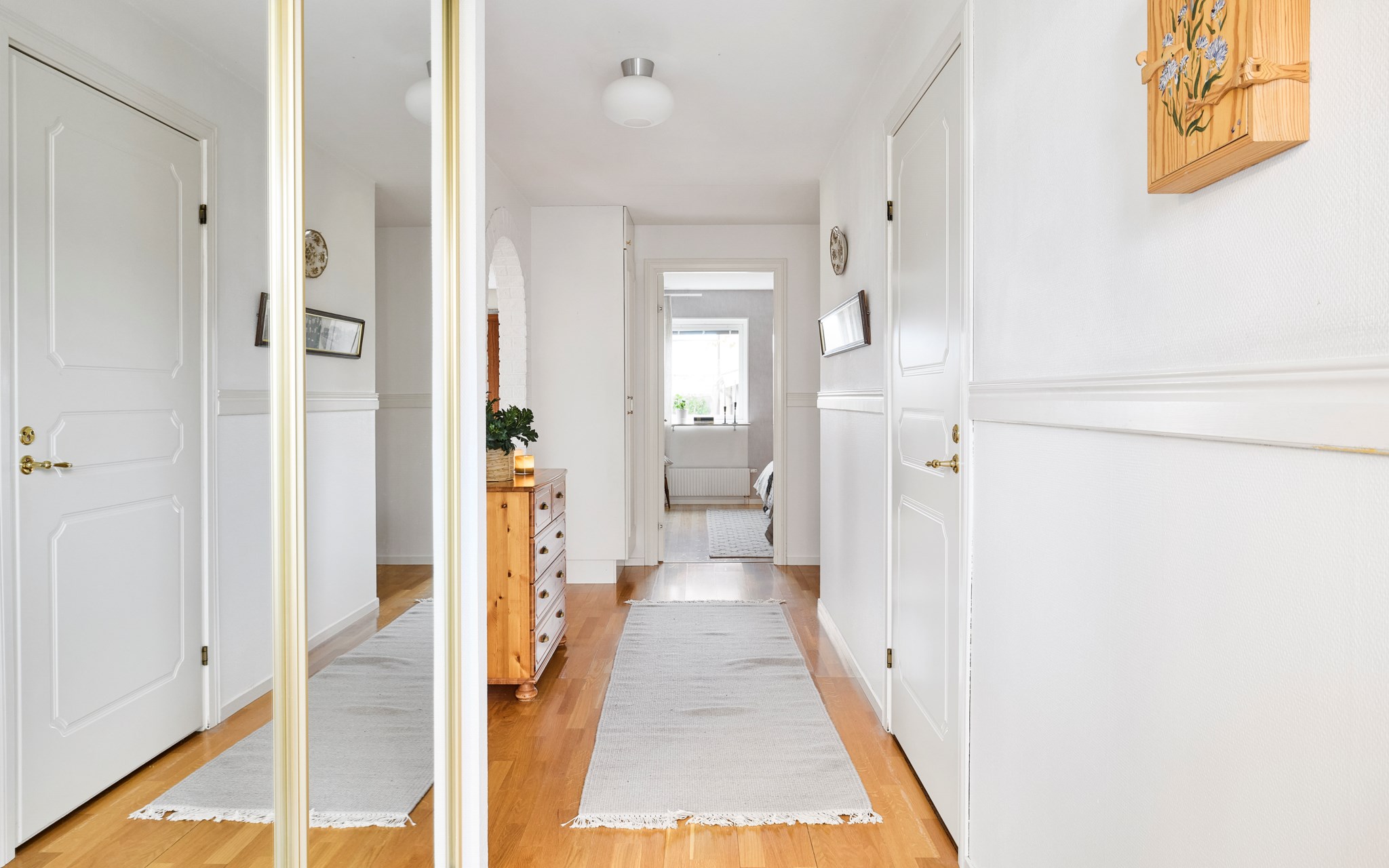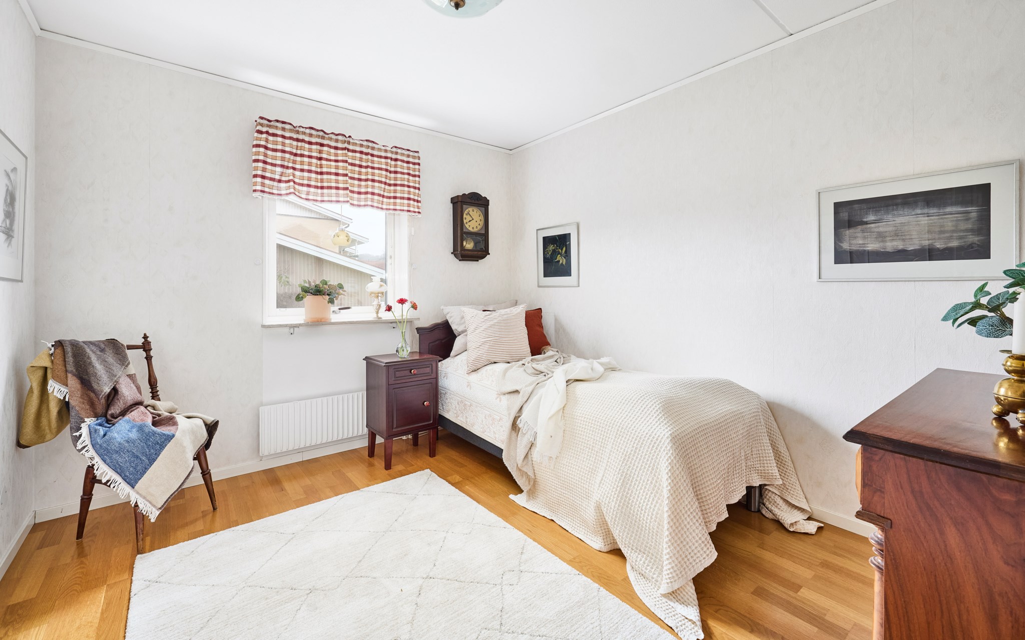 Båda sovrummen vetter mot den lugna baksidan, där grönskan hjälper till att skapa ett stilla och skönt morgonljus. Här finns goda möjligheter till förvaring, och strax utanför rummen ligger en praktisk klädkammare som gör det enkelt att hålla ordning på både vardagskläder och säsongsgrejer. Två rum som är lättanvända och flexibla – enkla att anpassa efter livets olika behov.