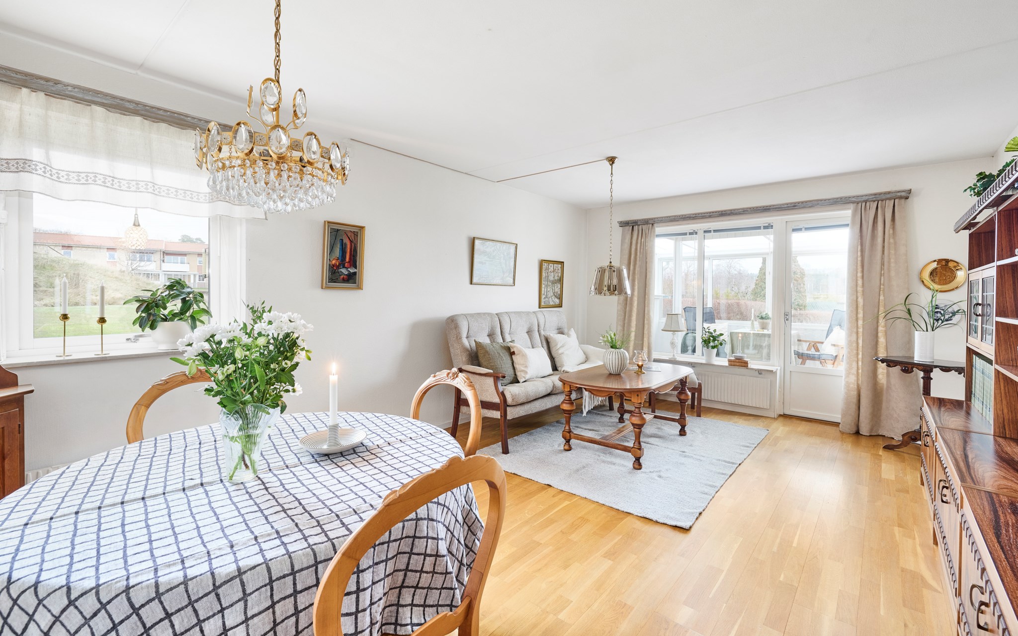 Och för dig som gillar öppnare ytor finns möjligheten att undersöka en mer öppen koppling mot köket, något som andra i föreningen gjort efter tillstånd. Men redan som det står är det här ett generöst nav med ett skönt flöde mellan inne och ute.