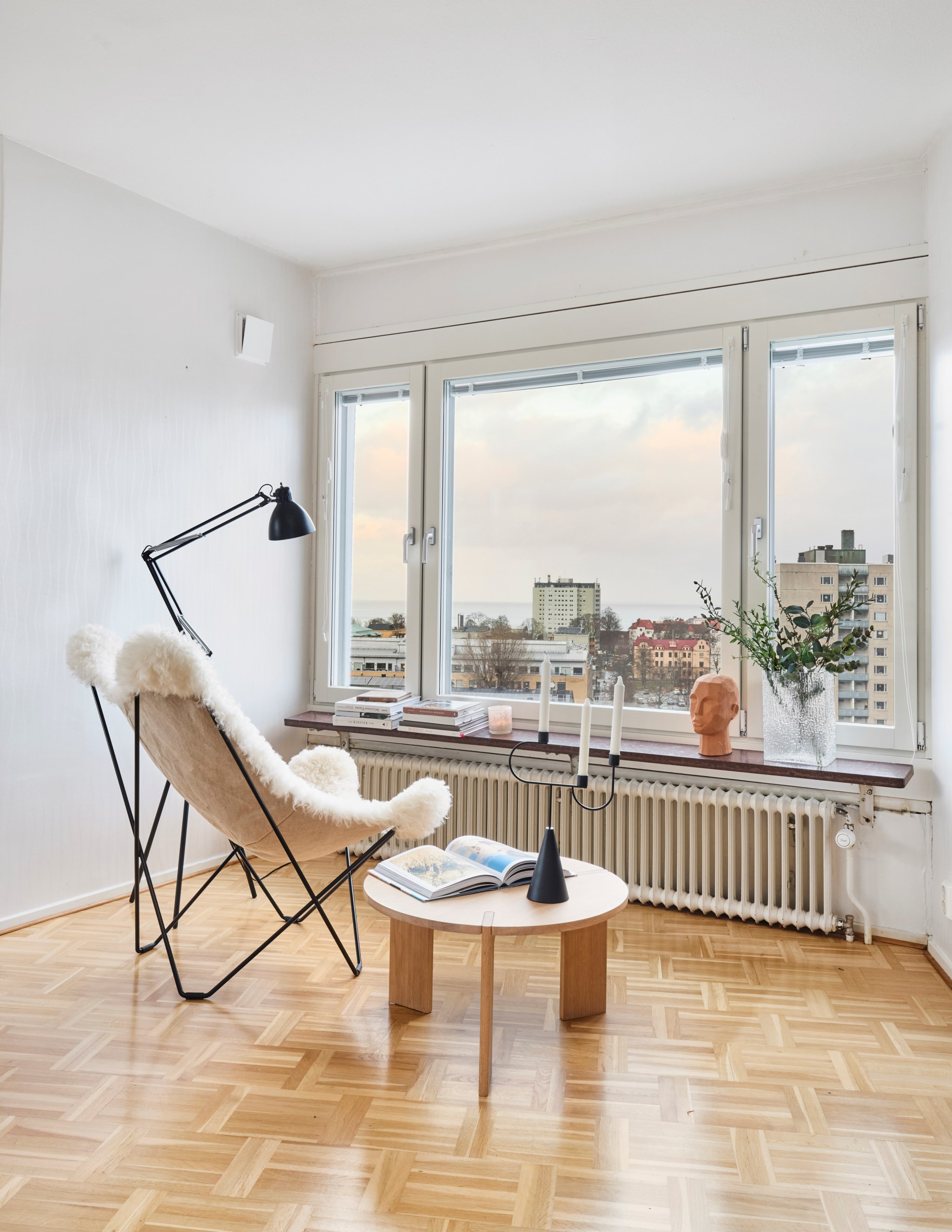 "En våning som ställer sig över det mesta i stan. Tionde våningen, insyn typ endast från Fågelmuseet i Stadsparken."