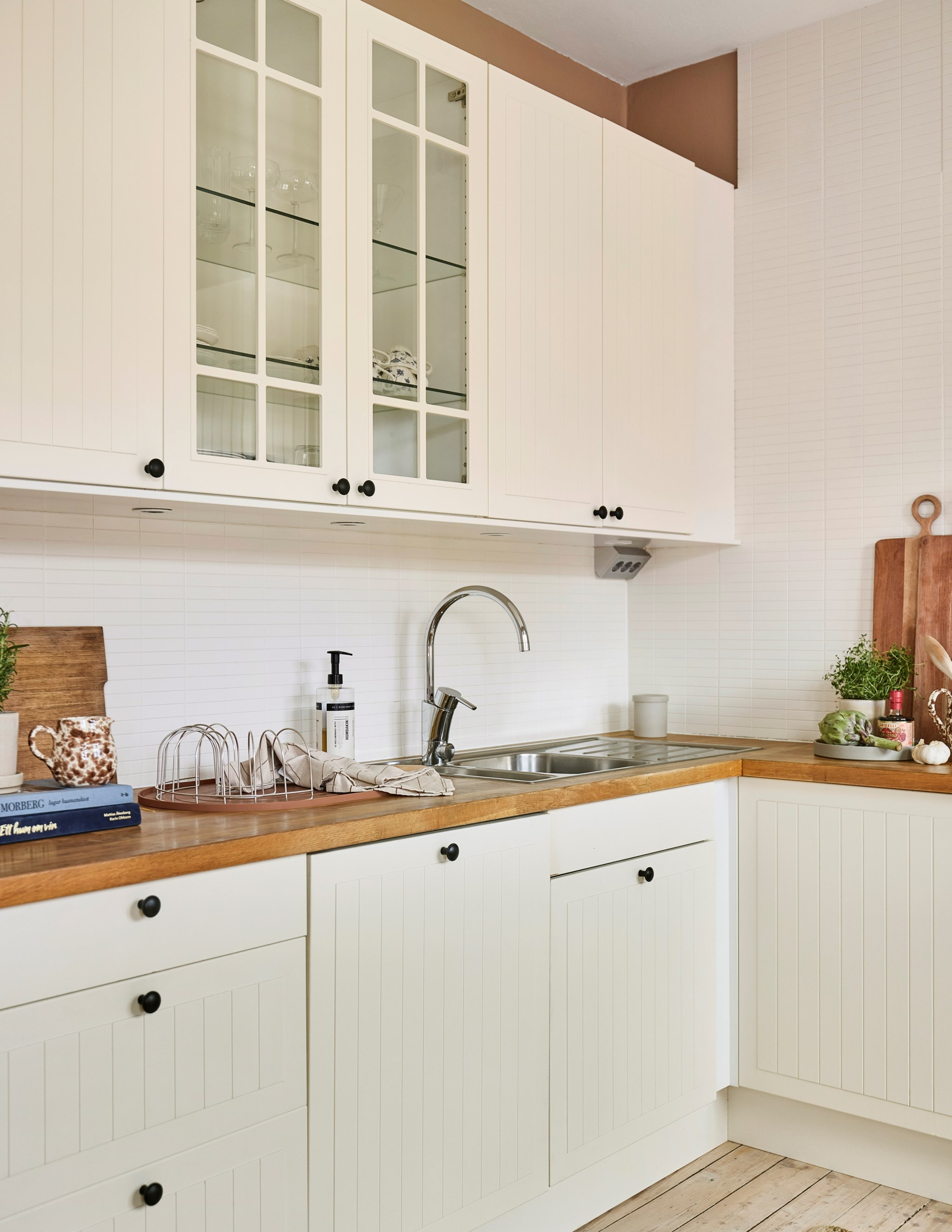 ”Jag gillar att köket är så stort. Här finns mycket bänkyta och samtidigt utrymme för stor matplats.”