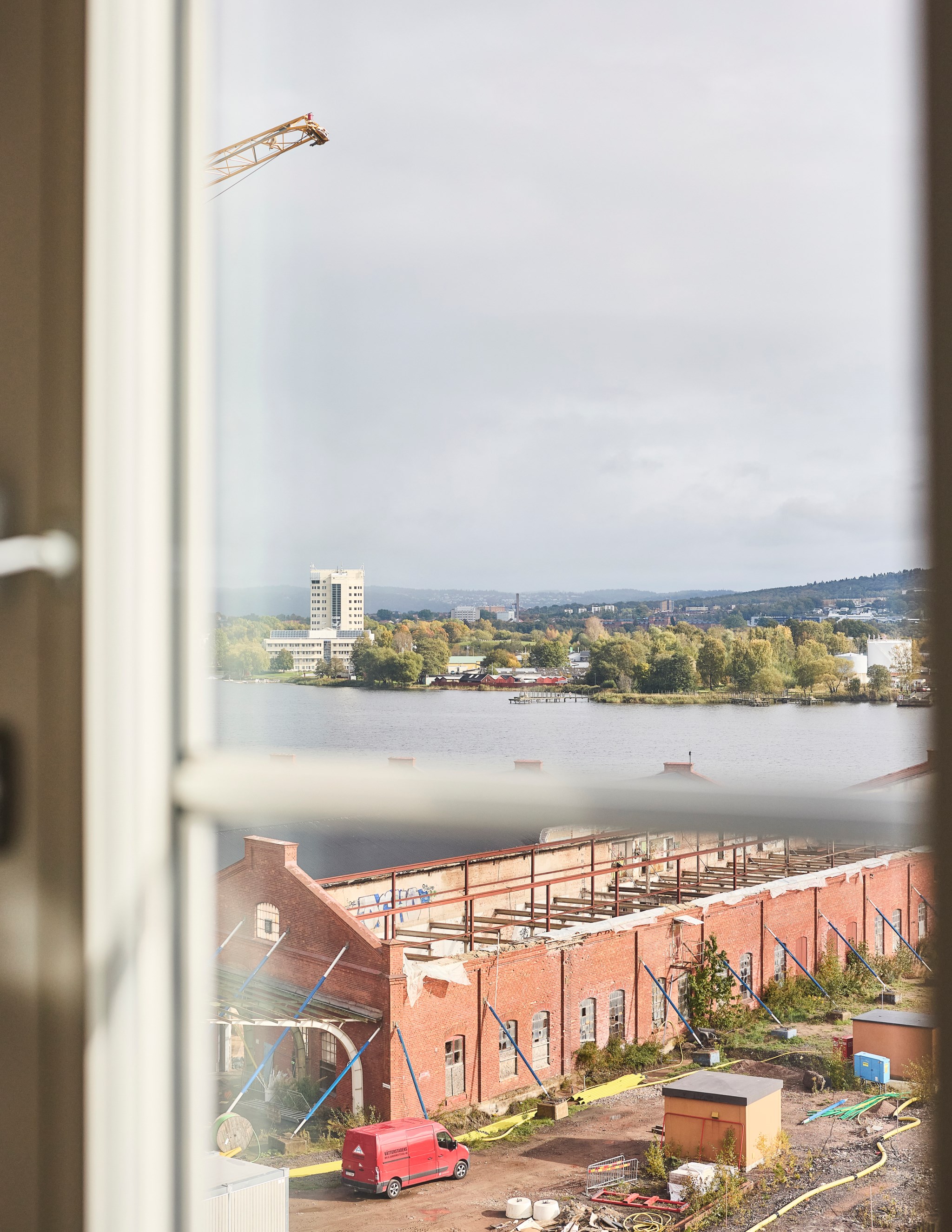 Kvarter 10 i Munksjöstaden sticker ut på många sätt i den nya stadsdelen. Här har arkitekterna knutit an till mer traditionella byggnadsideal. Fasad i brunt tegel med väldigt fint liv i varje enskild tegelsten. Fönster och balkongdörrar fångar upp de gamla metallfönstren på fabriken med sin smala spröjs. Ja, det är inte svårt att förstå var inspirationen kommer ifrån, om du tittar ner bland den gamla industribebyggelsen där pappershistoria har skrivits i snart 160 år. Och fortsätter så. Munksjö pappersbruk lever.
