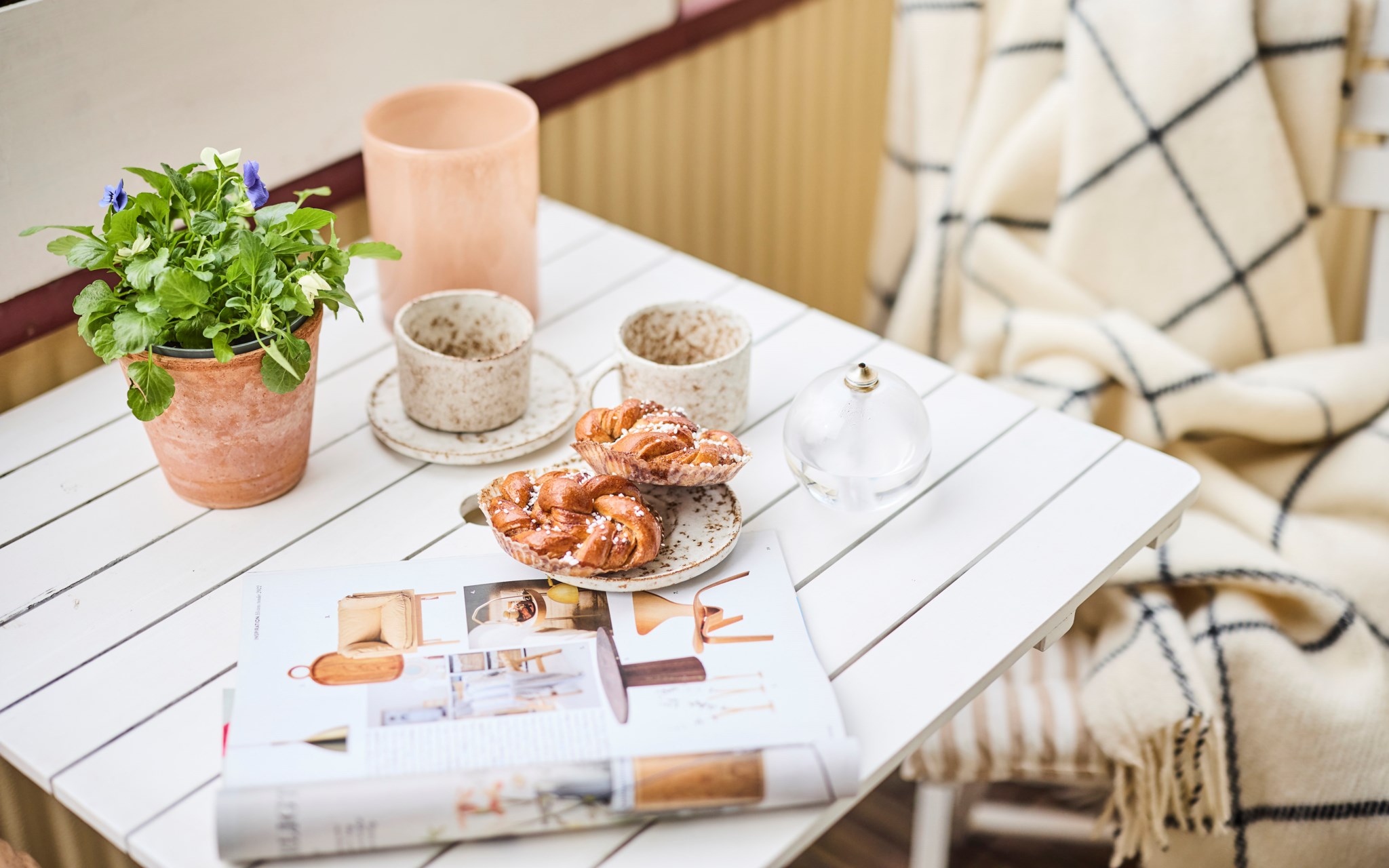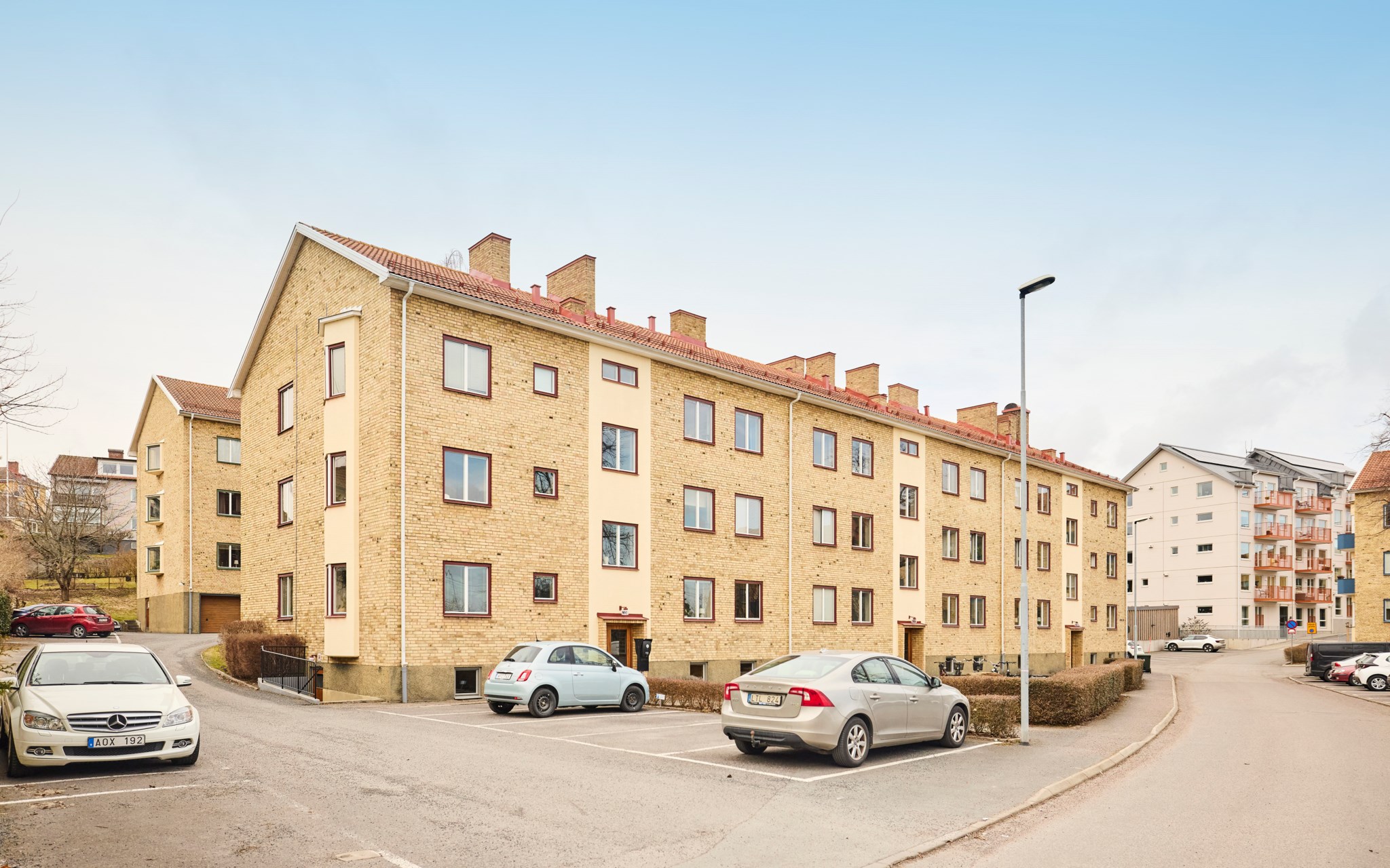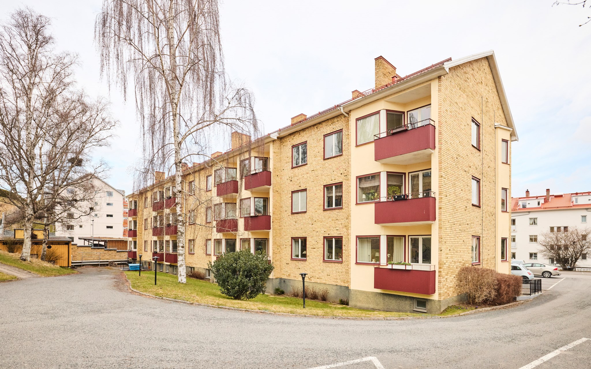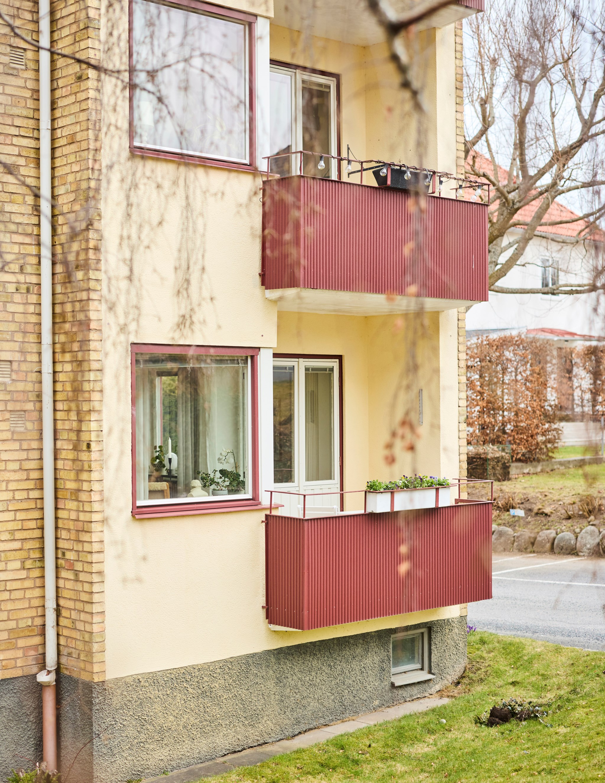 Från vardagsrummet kliver du rakt ut på balkongen. En liten, skyddad plats som ligger mot väster och fångar upp kvällsljuset när dagen börjar runda av. Här ryms ett litet bord och två stolar utan problem. Tillräckligt för frukost i lugn och ro en ledig dag, eller ett glas vin när solen sjunker bakom husen. Utsikten är enkel och grön, med gården och träden som närmaste sällskap. En balkong som inte tar över, men som gör precis det man vill att den ska göra.