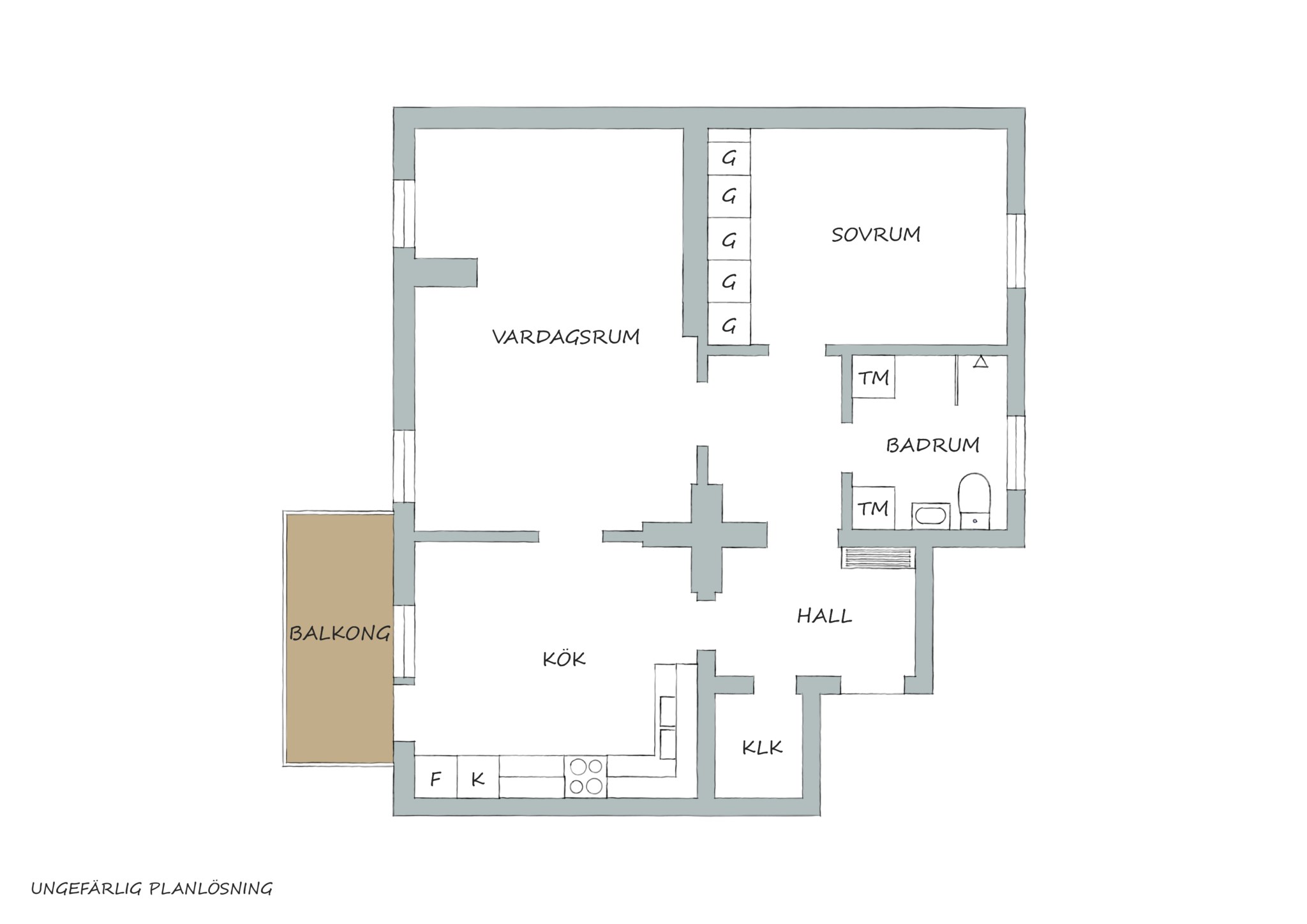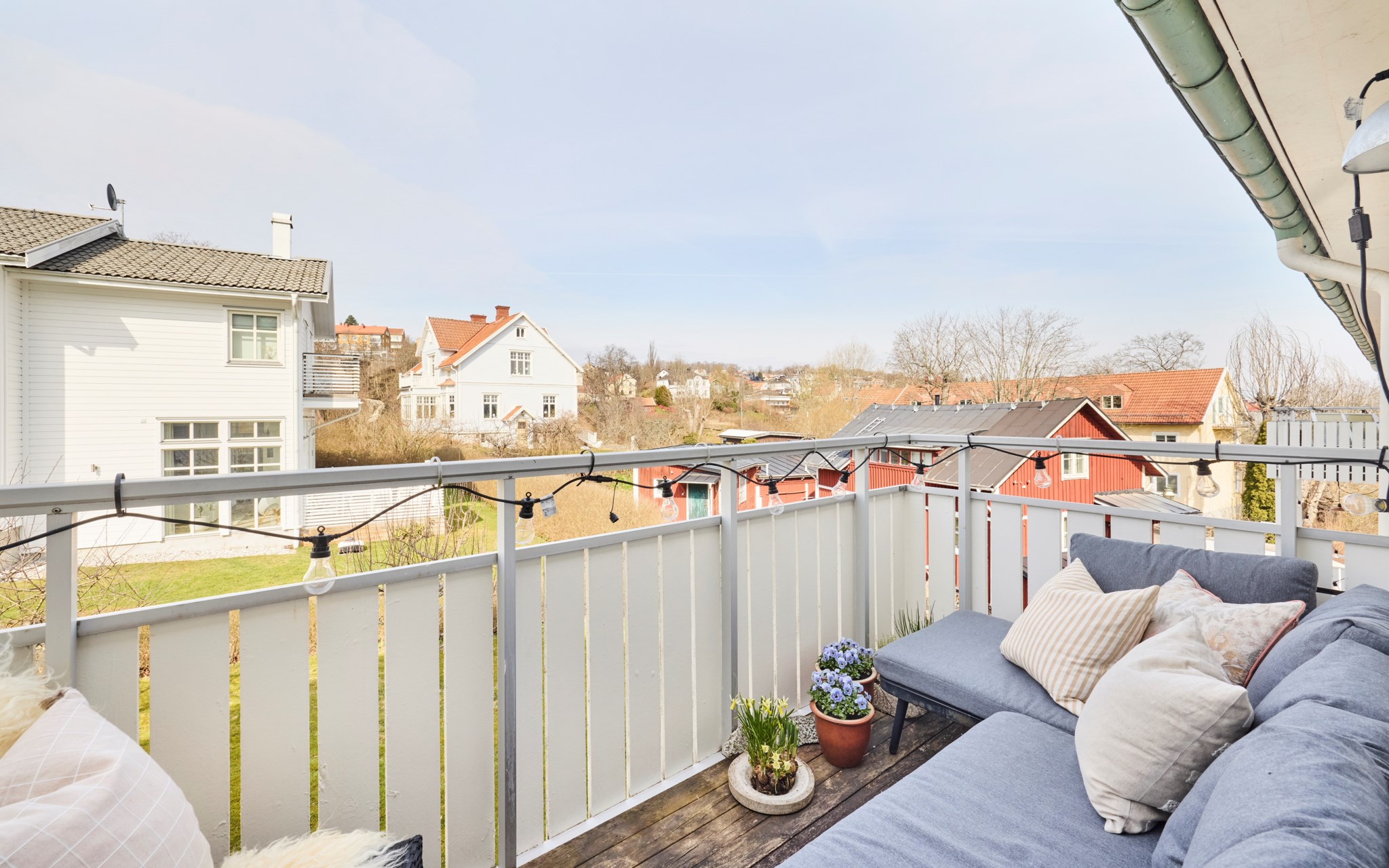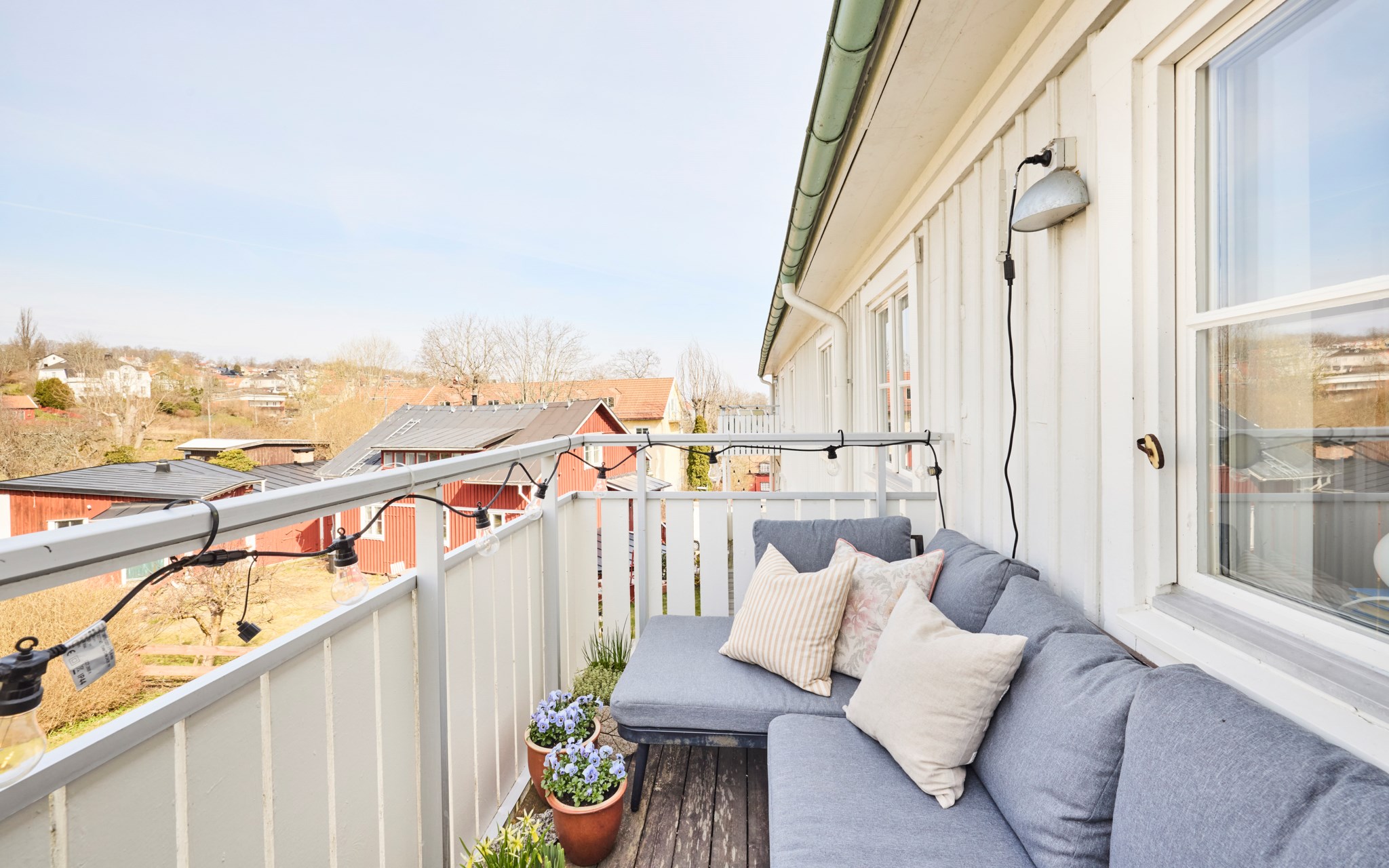 Balkongen som har utgång från köket har ett härligt solläge mellan cirka klockan 13 och 20 under sommartid.