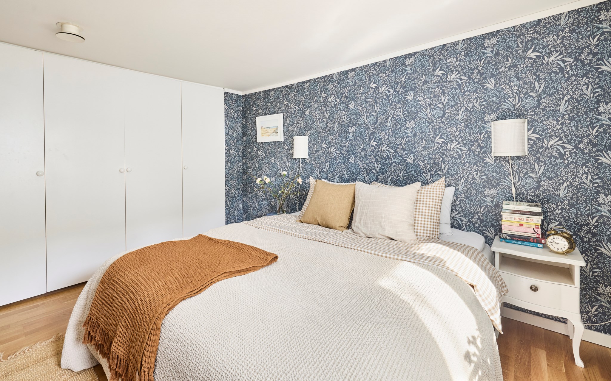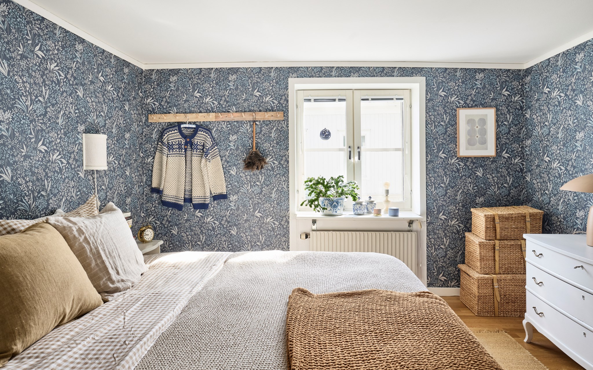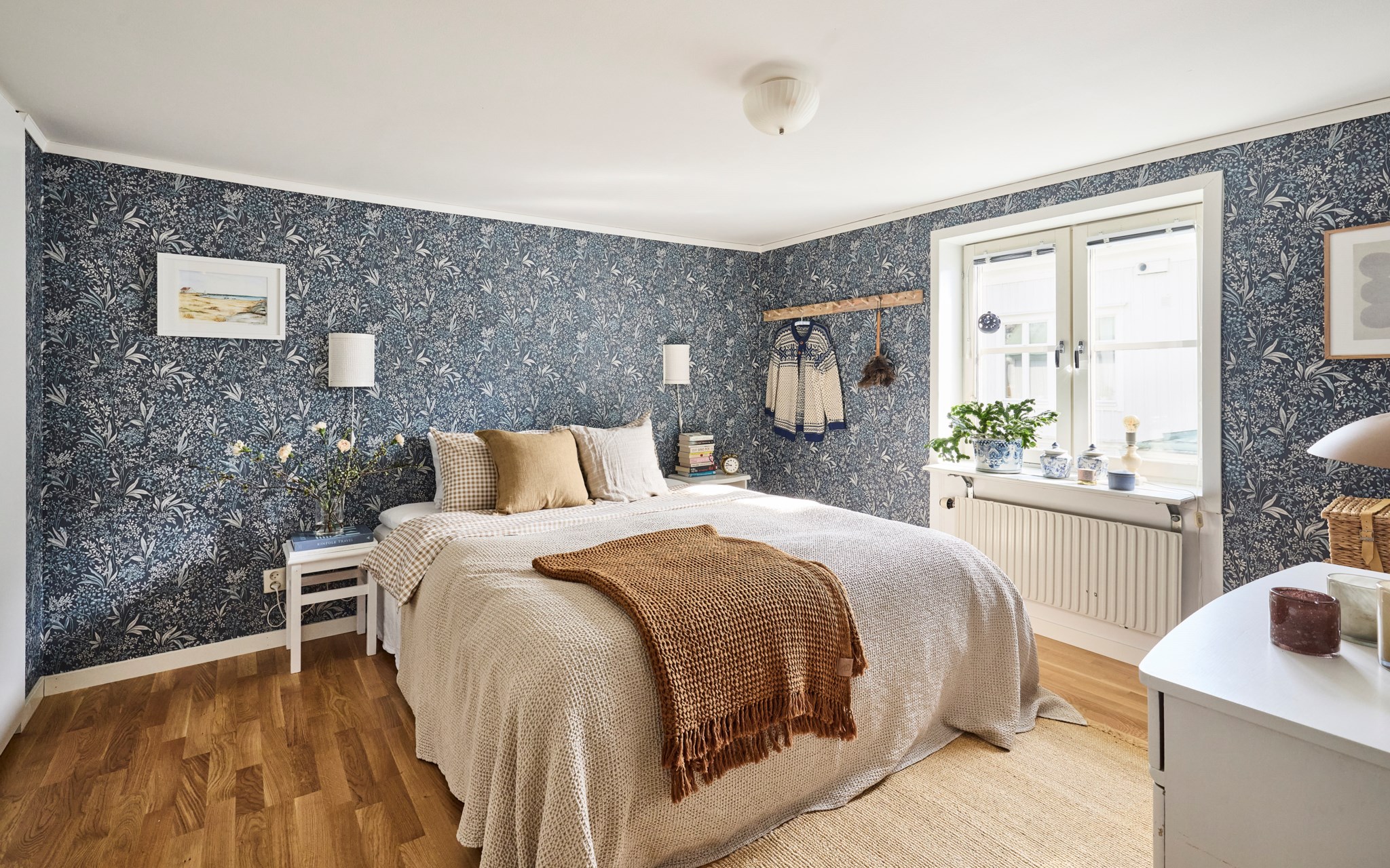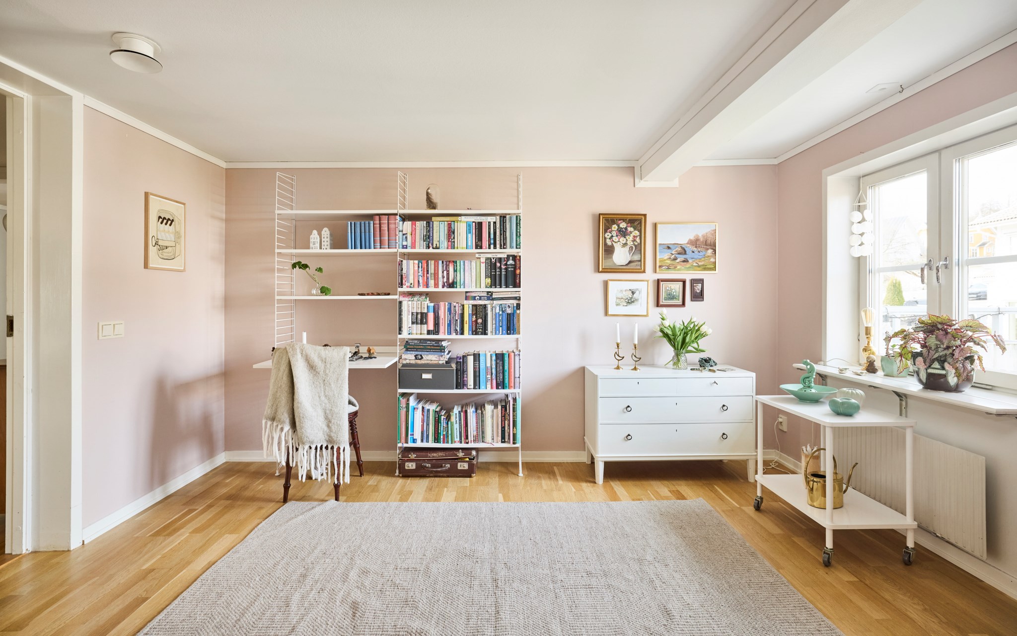Här har du fönstret mot öster och gården, det innebär också en hel del grönska när träden runt kyrkogården åter klär i grönt, och minsann – du ser faktiskt också en flik av Vätterns blåa våg. Här är takhöjden lite lägre och golvet ligger en nivå upp från hallen utanför. Men du ska vara bra lång om det ska kännas nätt, till sängs blir det en mysfaktor som gör lägenhet unik. Att huset är lite olika här och var, har såklart med husets historia att göra, och något du kan grotta ner dig framöver. Hör med museet, kanske kan man hitta gamla bilder från förr som förklarar hur huset såg ute en gång i tiden.