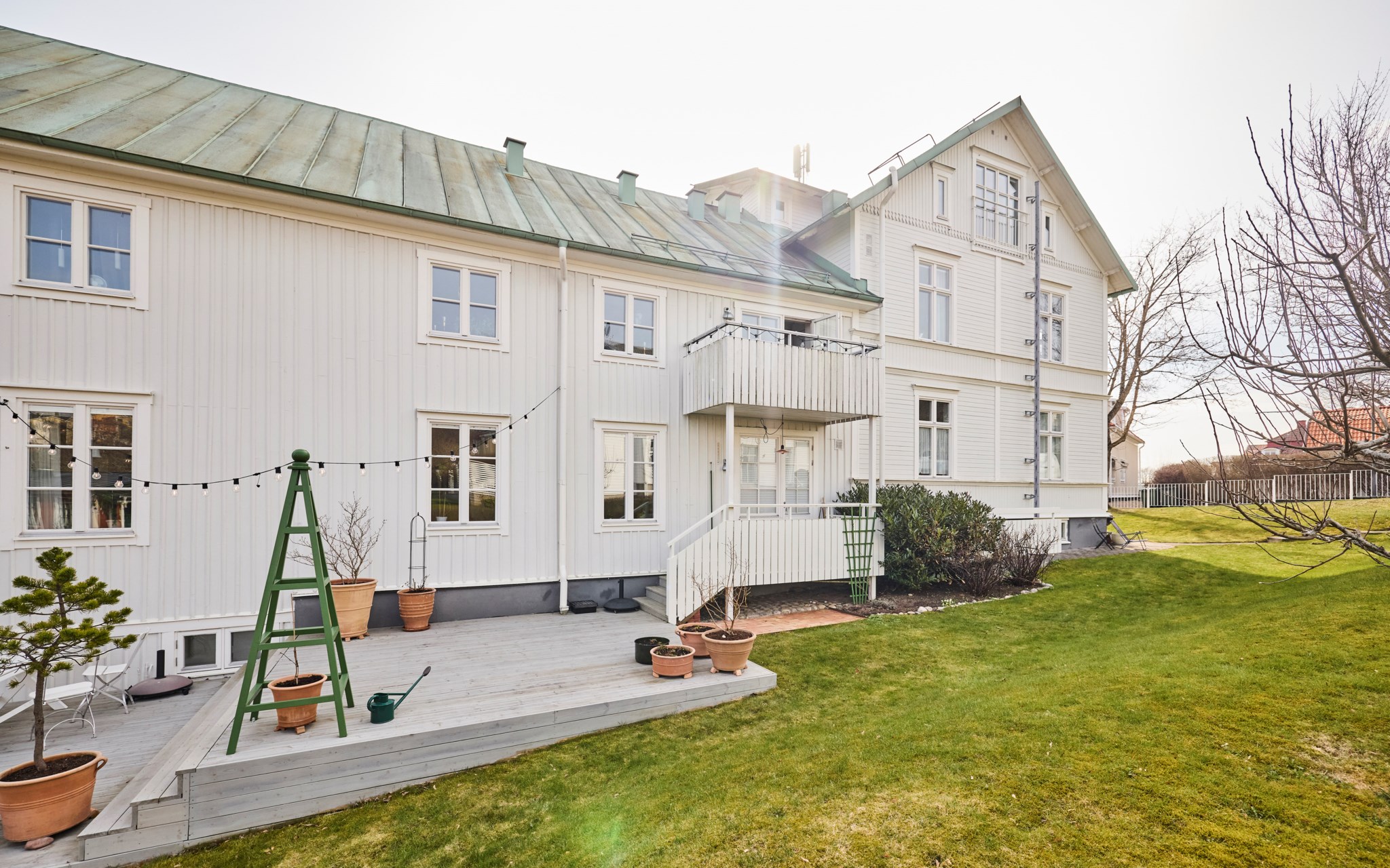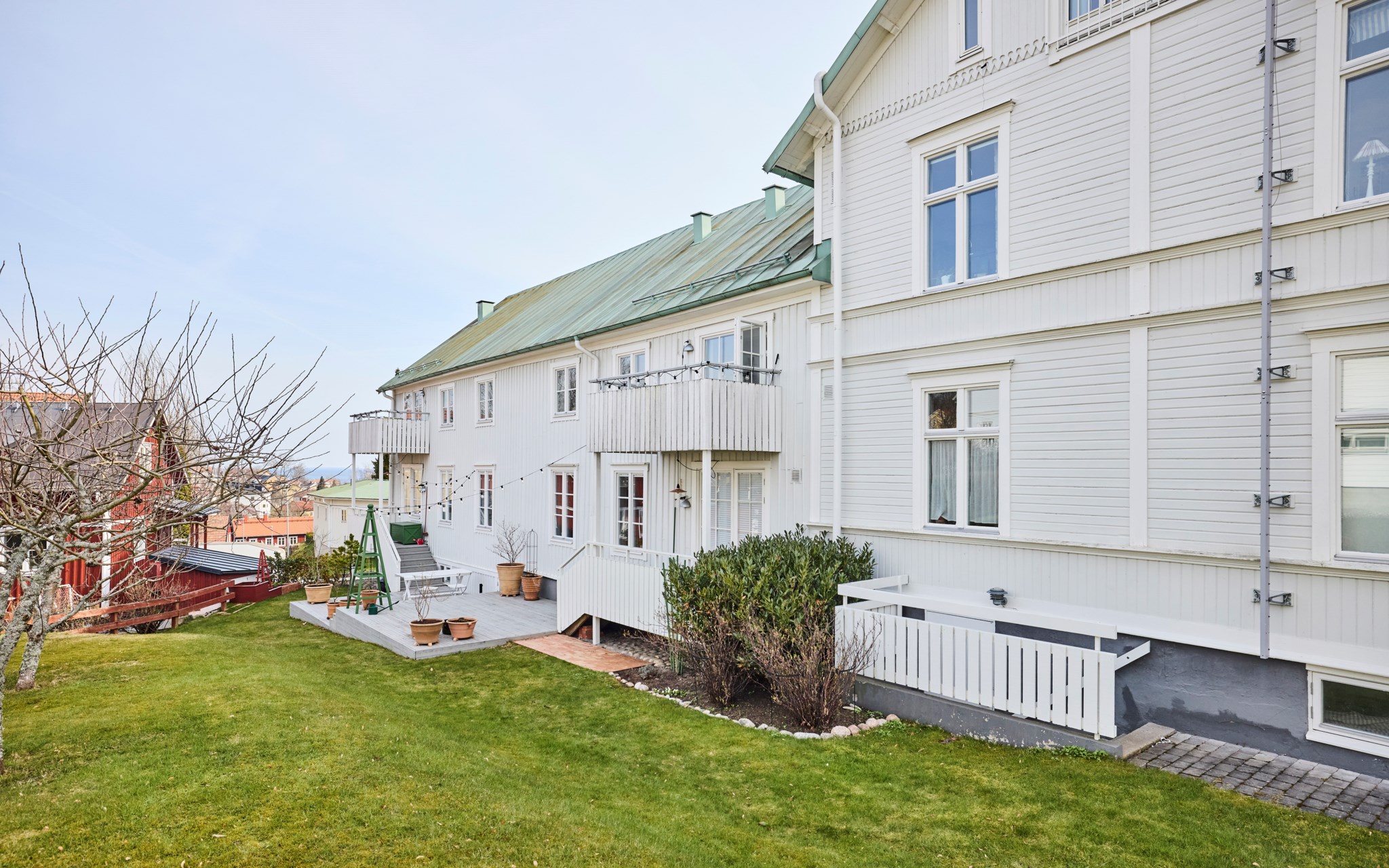 Denna charmiga "träkåk" är byggd kring det förra sekelskiftet och genomgick en genomgripande renovering 1991. Totalt finns det runt den fina gården 10 lägenheter i varierande storlekar. Allt mycket väl genomfört och renoverat, från källare till vind. Gård och trädgård trevlig, med planteringar, träd och stensättningar, men trädgården på utsidan av huset är betydligt solsäkrare, för att inte tala om din balkong. Några fruktträd finns också, som tydligen levererar framåt sensommaren. Trädgården gemensam och fritt fram att ta med sig solstol och filt ner. I källaren hittar du såklart en hel del användbart för vardagslogistiken: tvättstuga, lägenhetsförråd, cykelförråd, men också en del allmänna utrymmen som kommer väl till pass för trädgårdsmöbler exempelvis.
