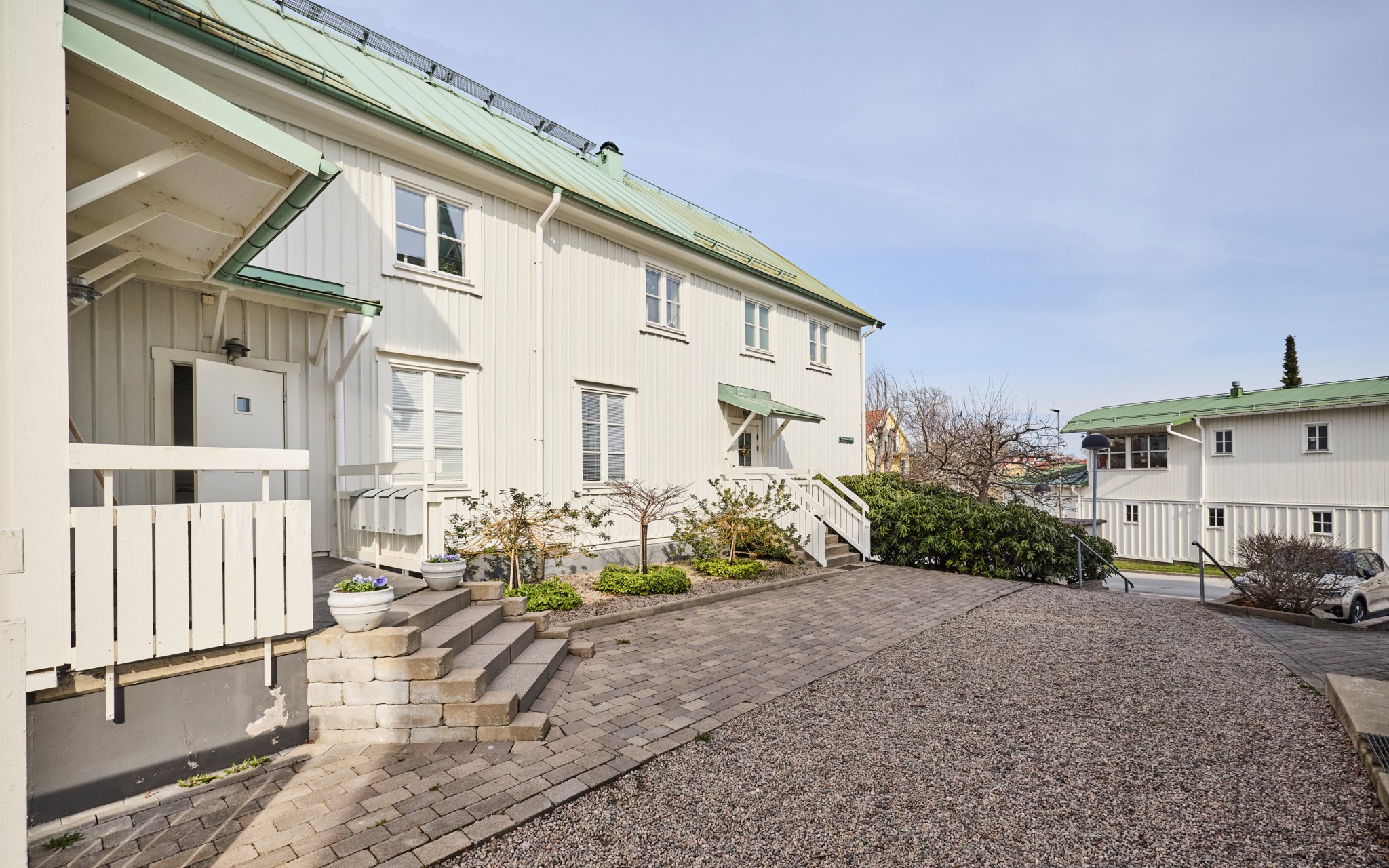 Att bo just här innebär lite beslutsvånda när det är dags för promenad och löptur. Antingen sneddar du över Dunkehallabacken ett kvarter bort och in i Stadsparken eller så släntrar du ner i Dunkehallaravinen, och då har du två äventyrliga val att göra – upp eller ner för den brusande forsen och leden som går från Vättern och ända upp till Hallbystugan om du har villiga ben. Om du går ner till Vättern har du i och för sig också två håll att välja på, men strandpromenaden är lika avslappnande oavsett vilket håll du väljer – mot stan eller upp mot Kaptensbo och Trånghalla. Det enda du inte behöver tveka på, är avståndet ner till stan, antingen du tar bussen, cykeln eller går. Sälj bilen!