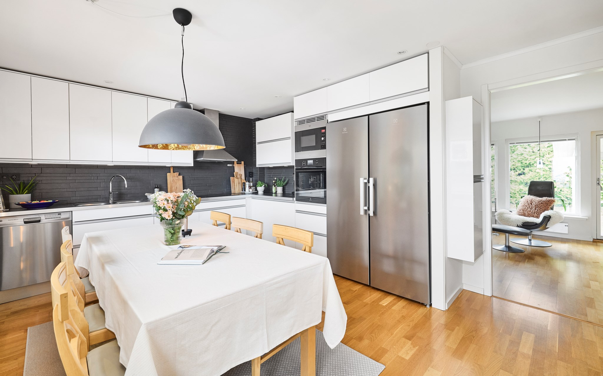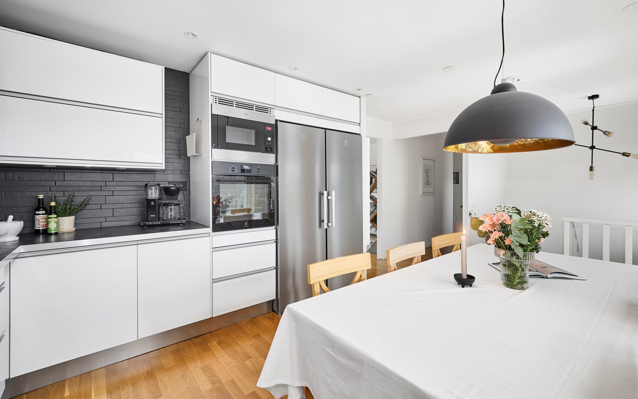 Köket, som senast renoverades 2011 av tidigare ägare har följande maskinell utrustning: induktionshäll (Electrolux), inbyggnadsugn (Electrolux), spisfläkt (Franke), diskmaskin (Electrolux), kyl (Electrolux) och frys (Electrolux). Ugnen, samt kylen och frysen är utbytta 2025, med övriga vitvaror installerades 2011.